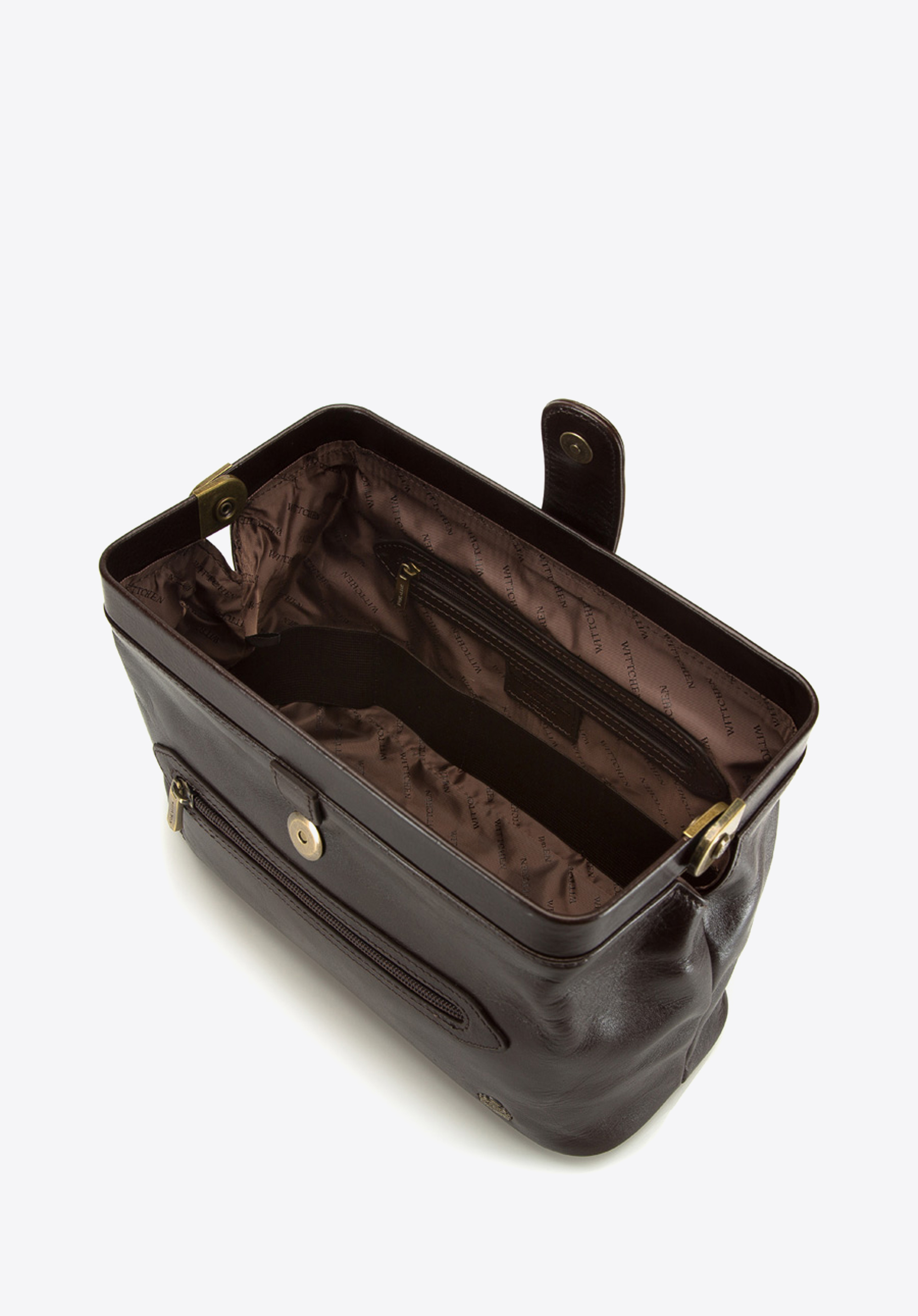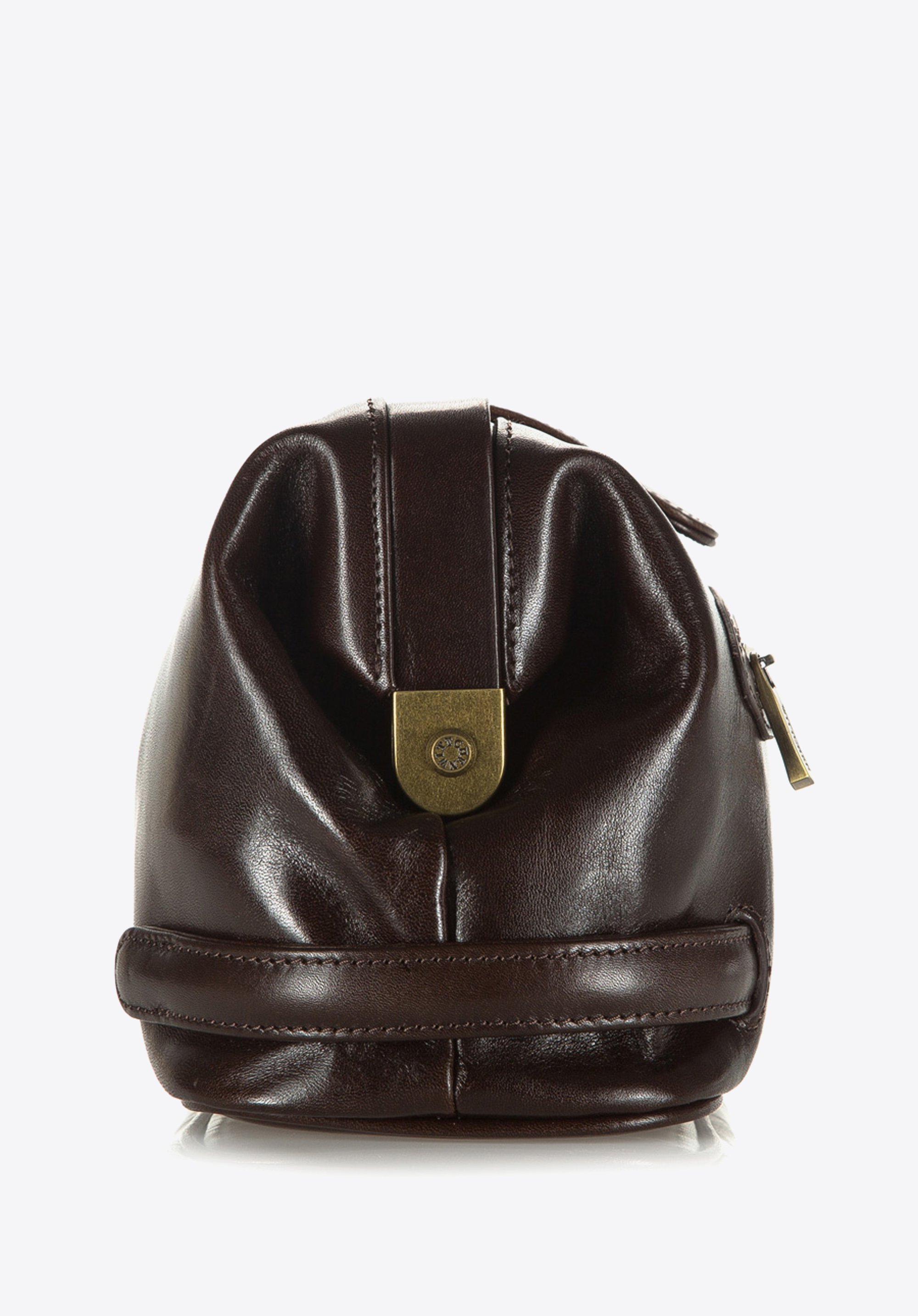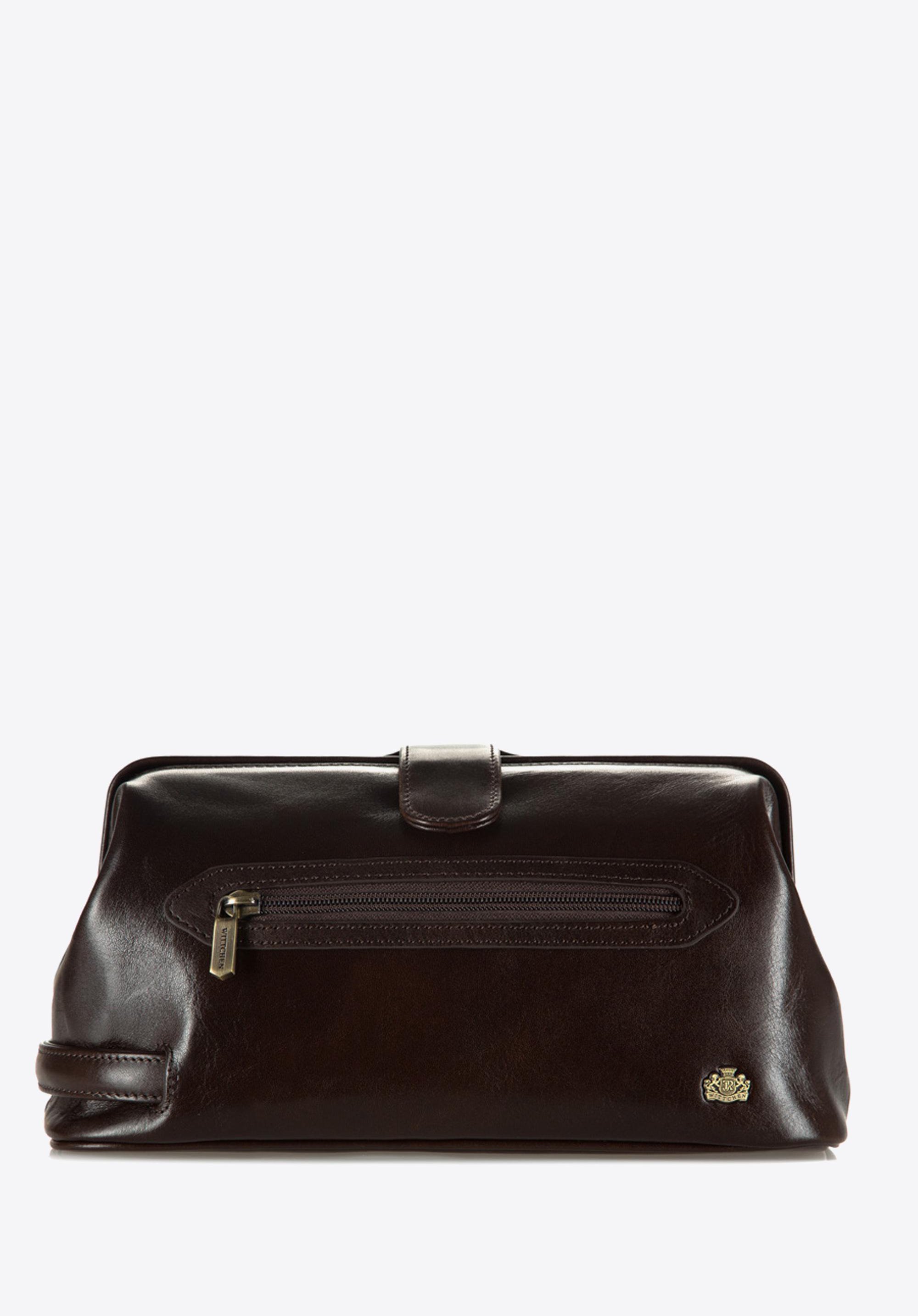 Štýlová kožená kozmetická taštička je doplnok, ktorý nikdy nevyjde z módy. Ručne vyrobená s veľkou precíznosťou, zdobená logom - kovovým štítkom s erbom WITTCHEN v zlatej farbe. Elegantný organizér, do ktorého sa zmestí veľa kozmetiky a doplnkov.