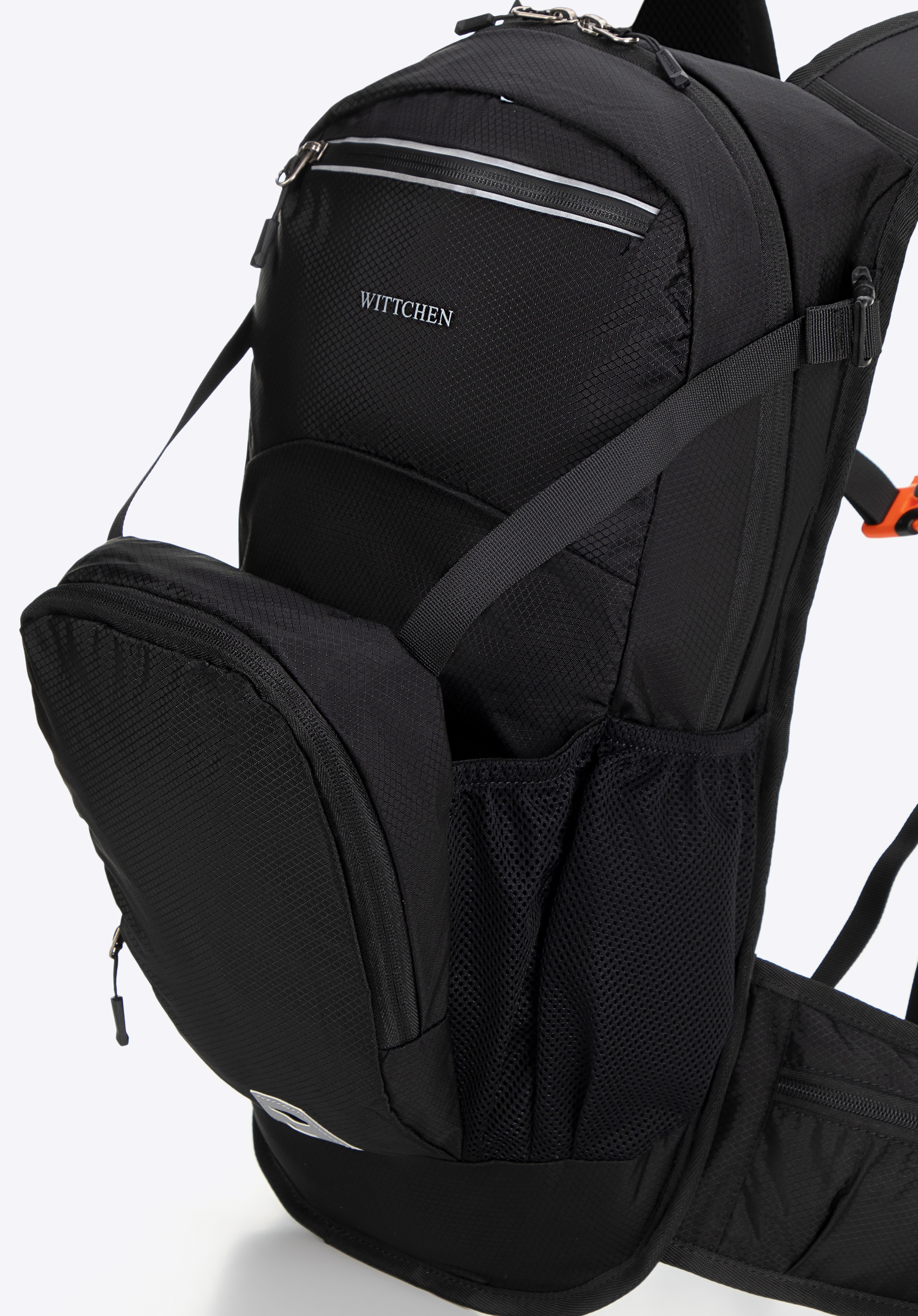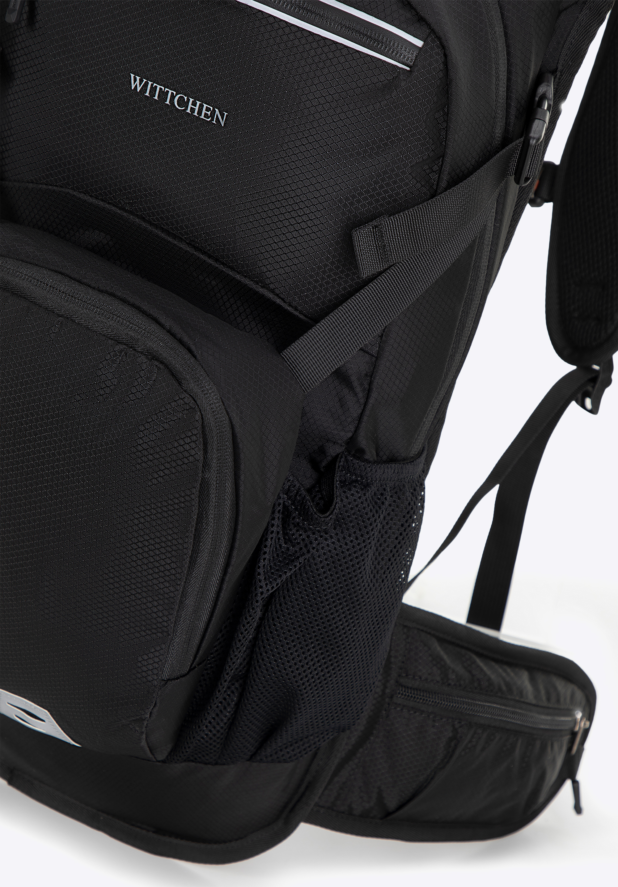 - Ďalšie vrecká: Dve sieťované vrecká na bokoch sú ideálne na fľašu s vodou alebo dáždnik. Dve vrecká na zips na prednej strane poskytujú rýchly prístup ku kľúčom, telefónu a iným drobnostiam.