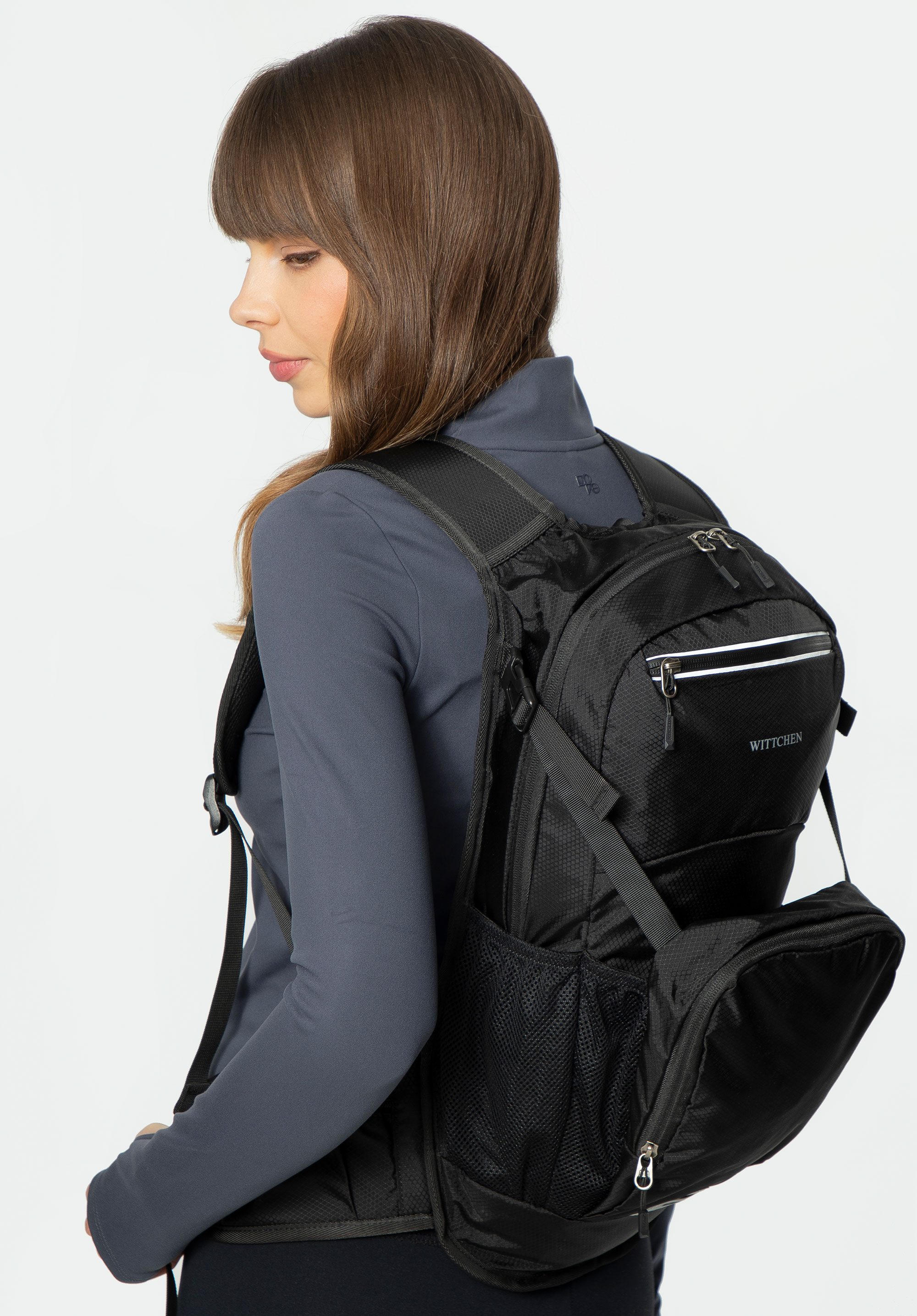 Náš tip: Doplnok môžete pohodlne nosiť na chrbte tak, že si popruhy nastavíte podľa svojich potrieb. Nastaviteľné prvky zaisťujú dokonalé prispôsobenie sa telu.