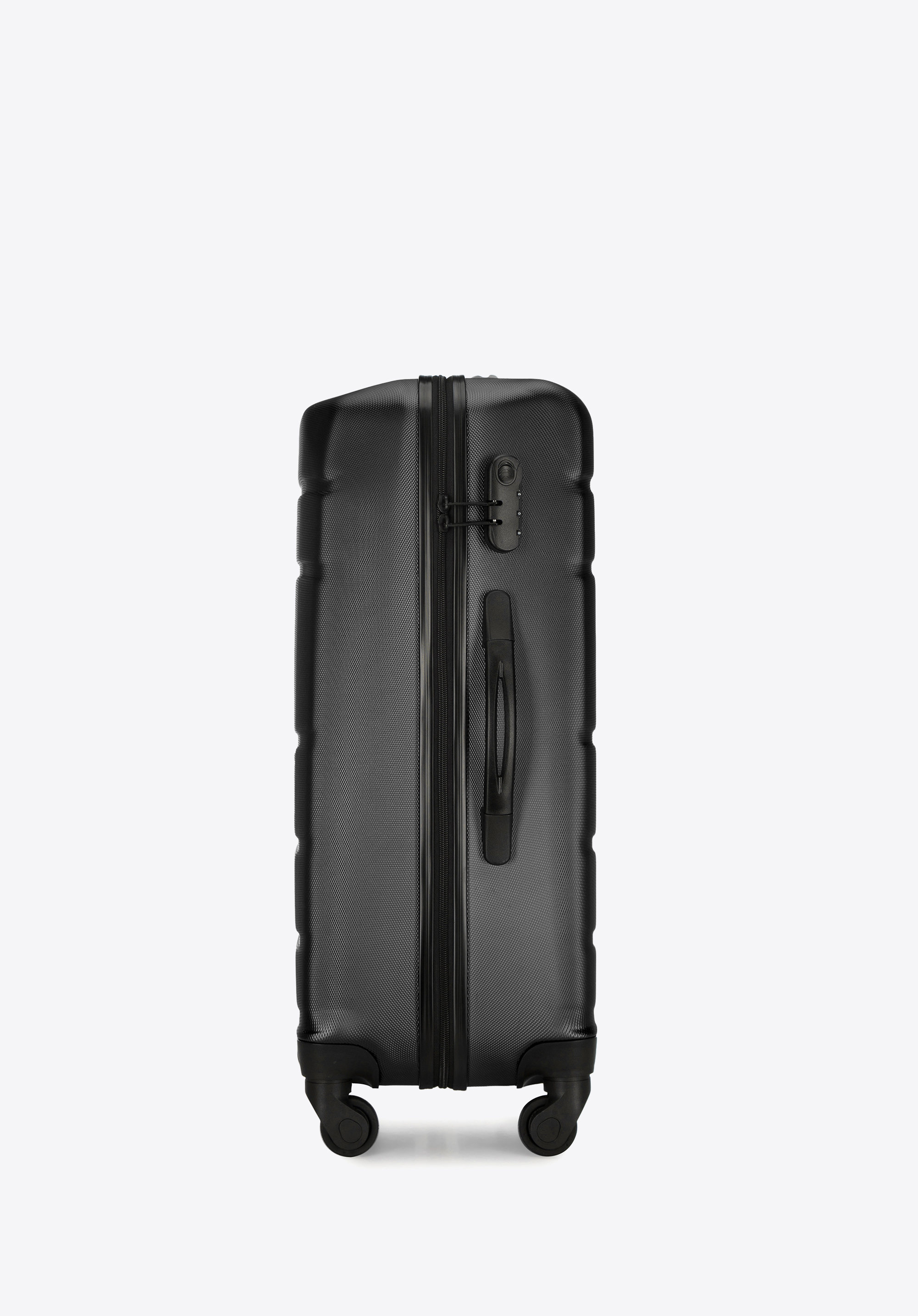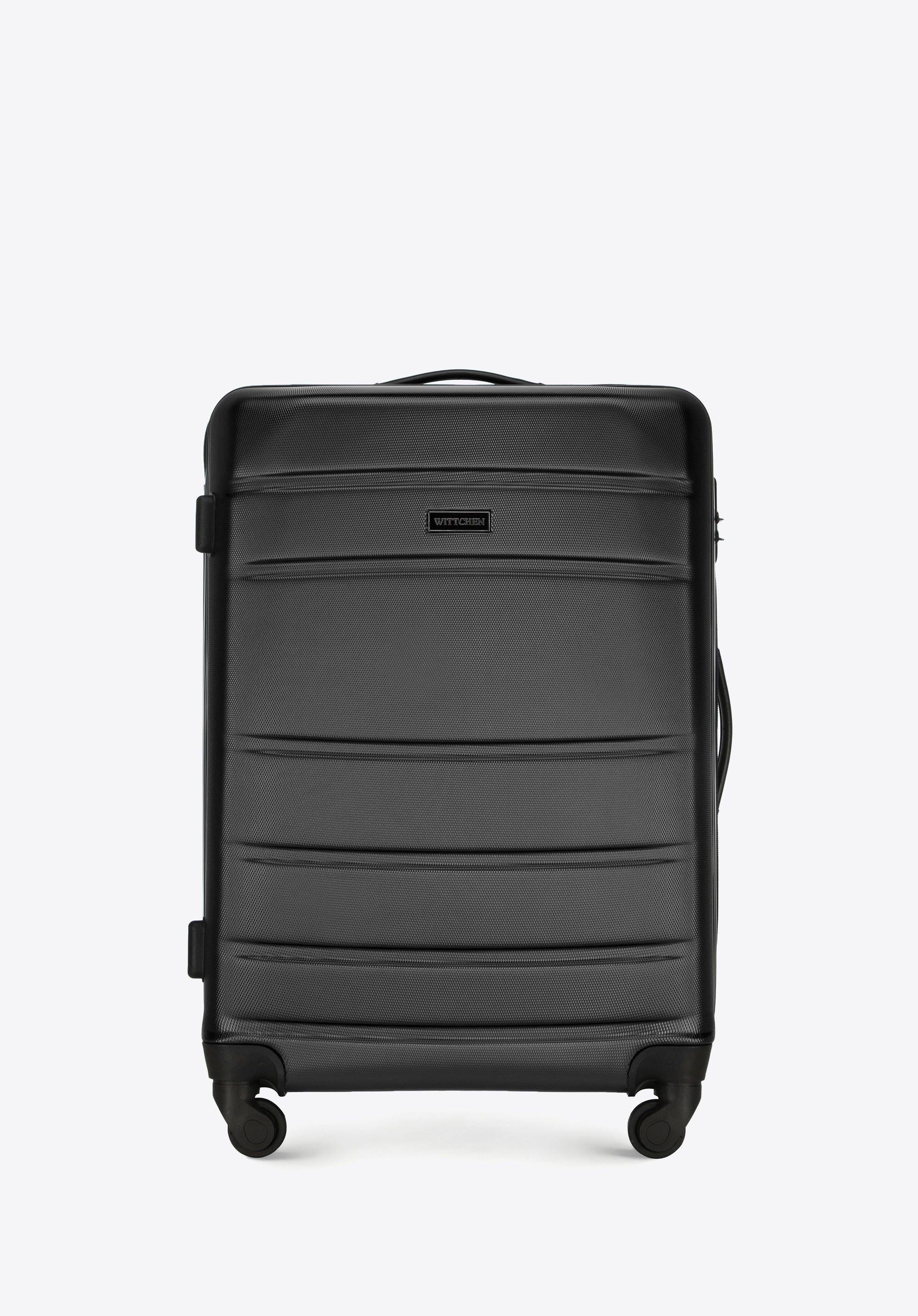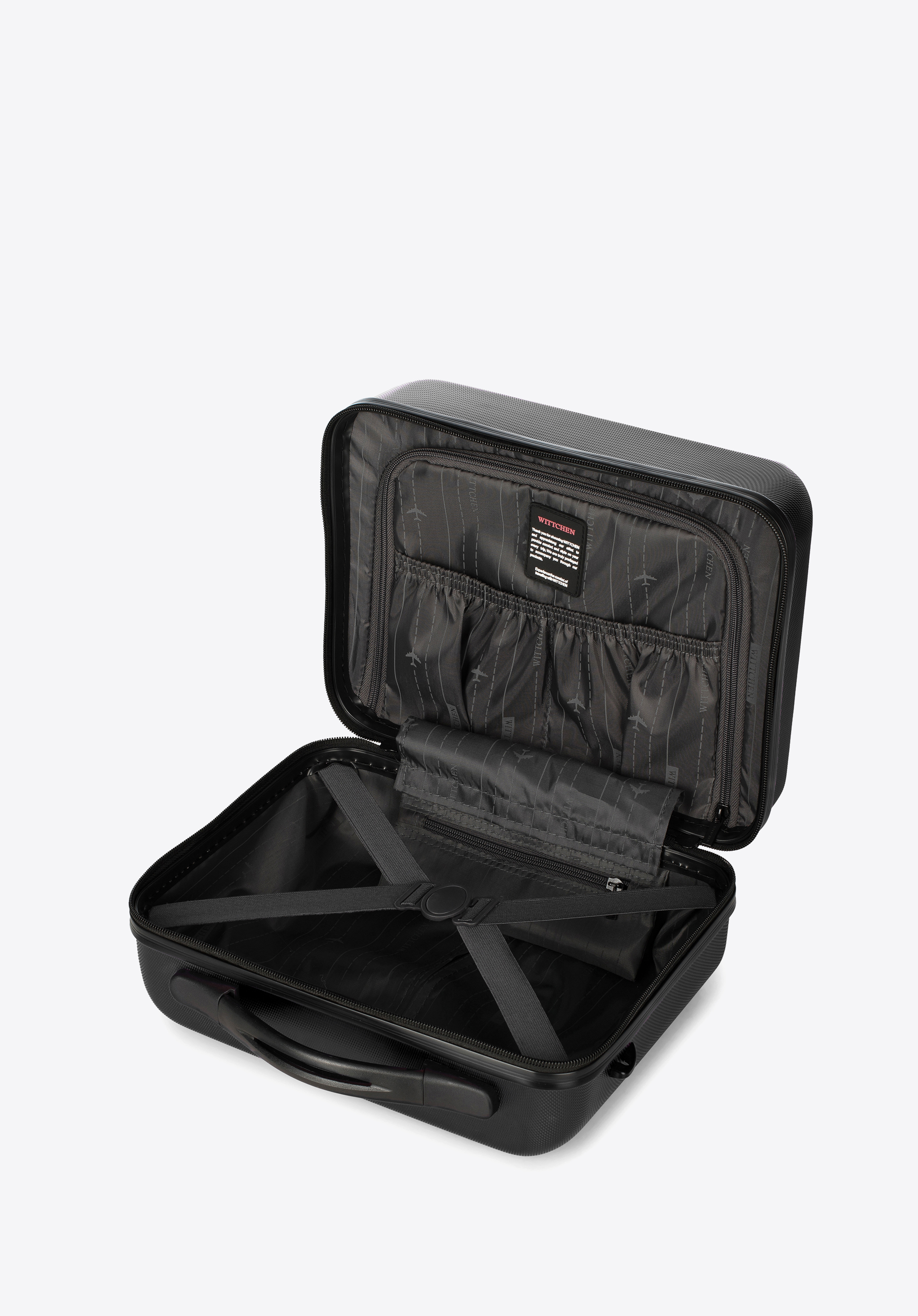 Stredne veľký kufor a kozmetická taška z textúrovaného ABS plastu Farba: čierna