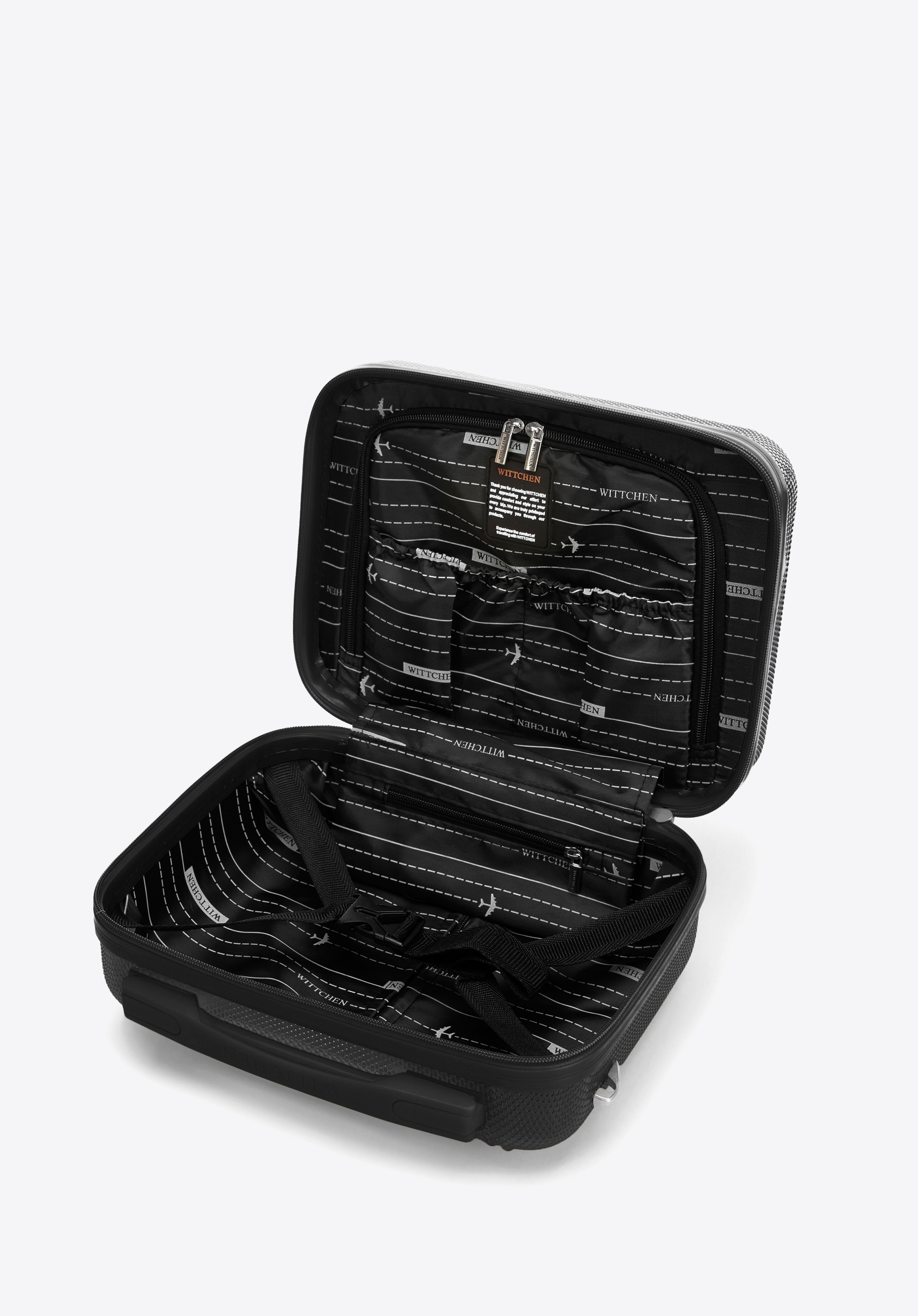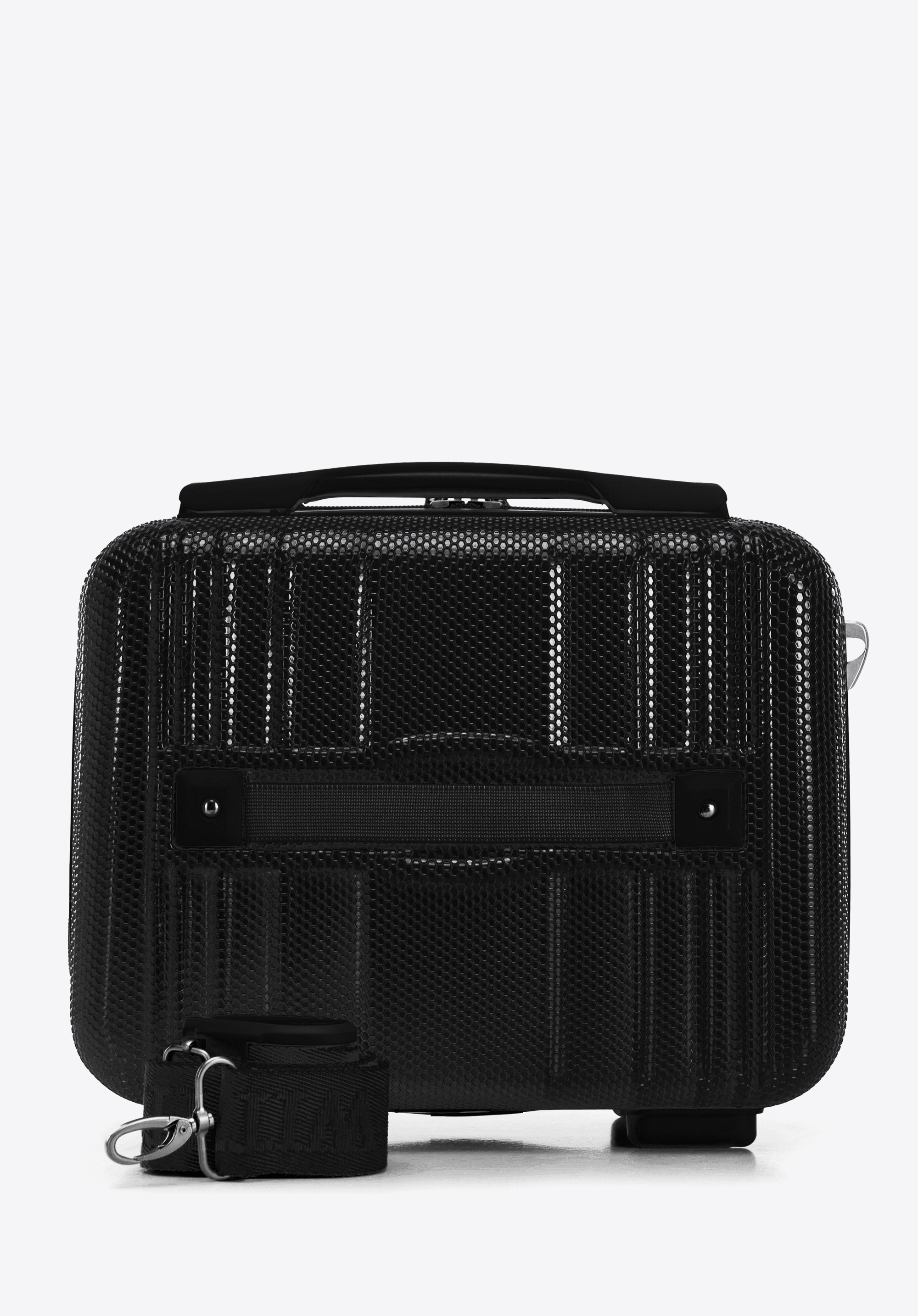 - Kozmetický kufrík: Má hornú rukoväť, popruh na pripevnenie na rukoväť kufra a odnímateľný, nastaviteľný ramenný popruh pre všestranné použitie.