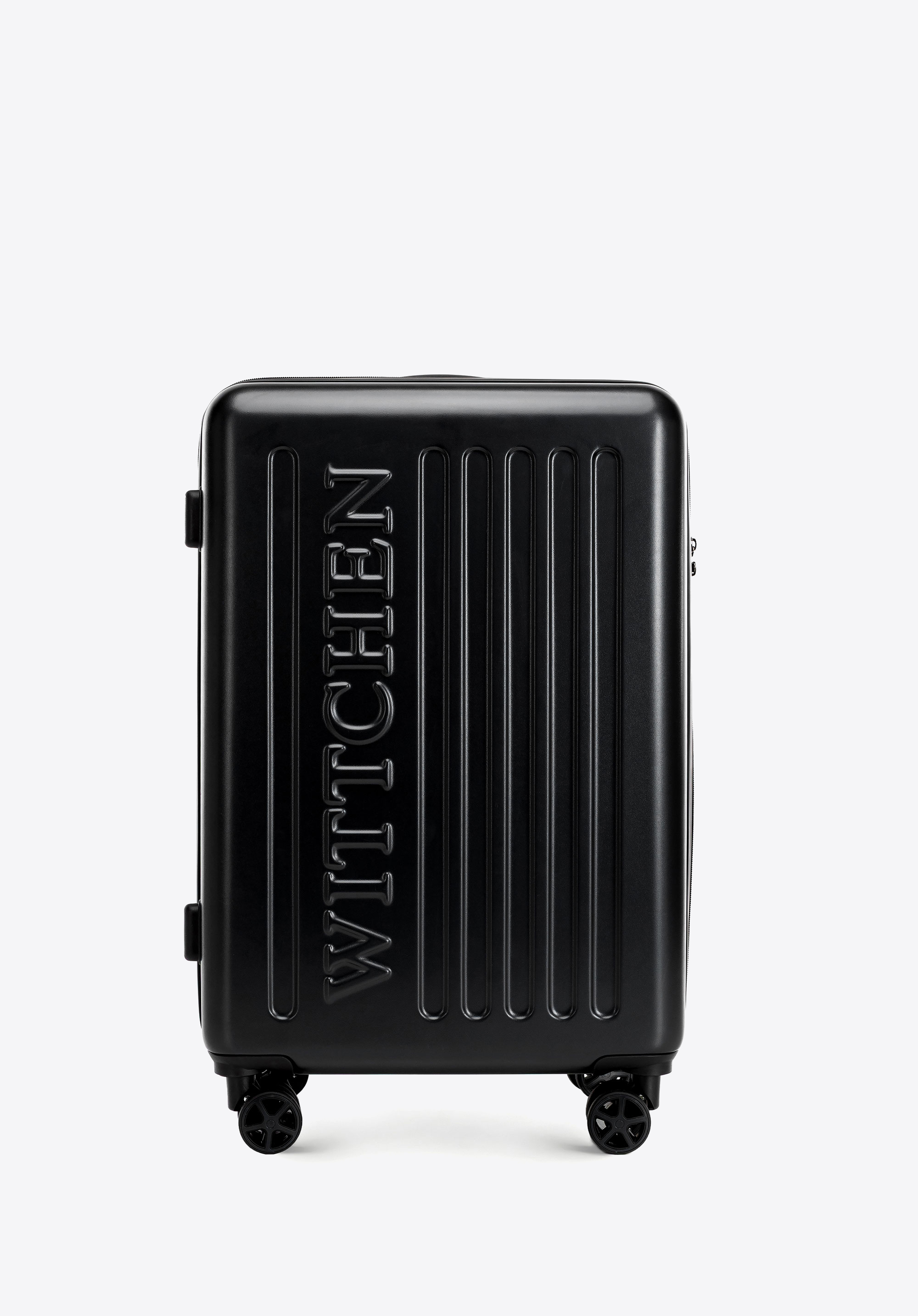 Stredne veľký kufor s vyrazeným logom Farba: čierna