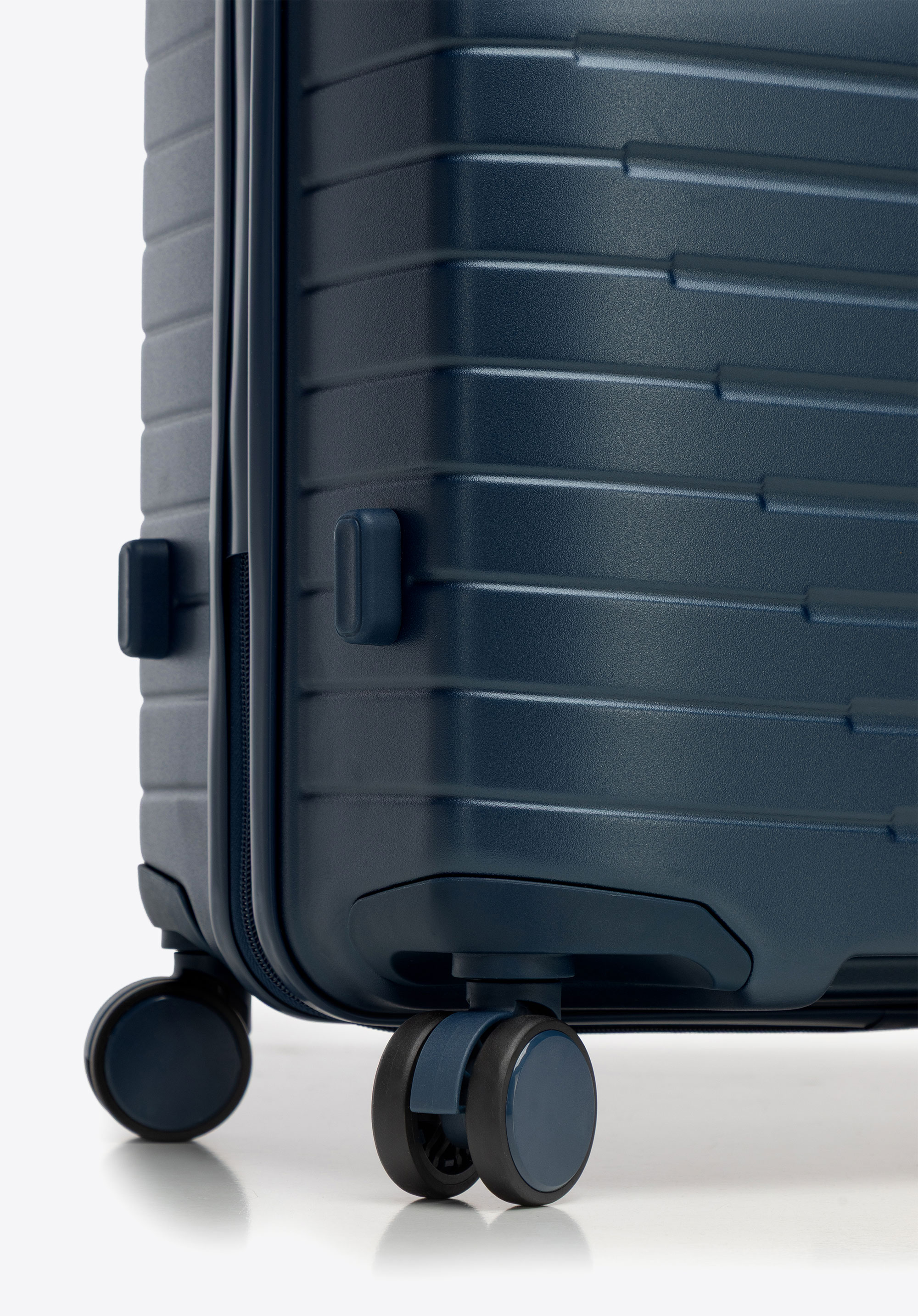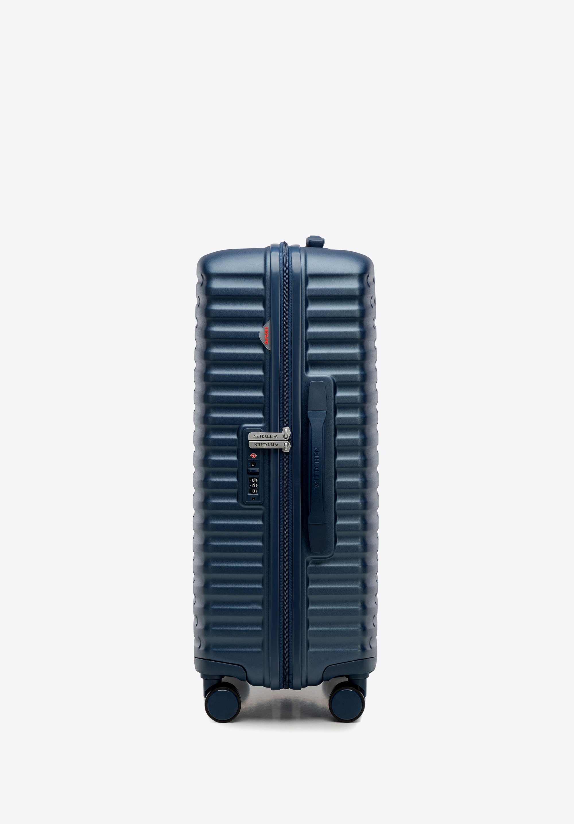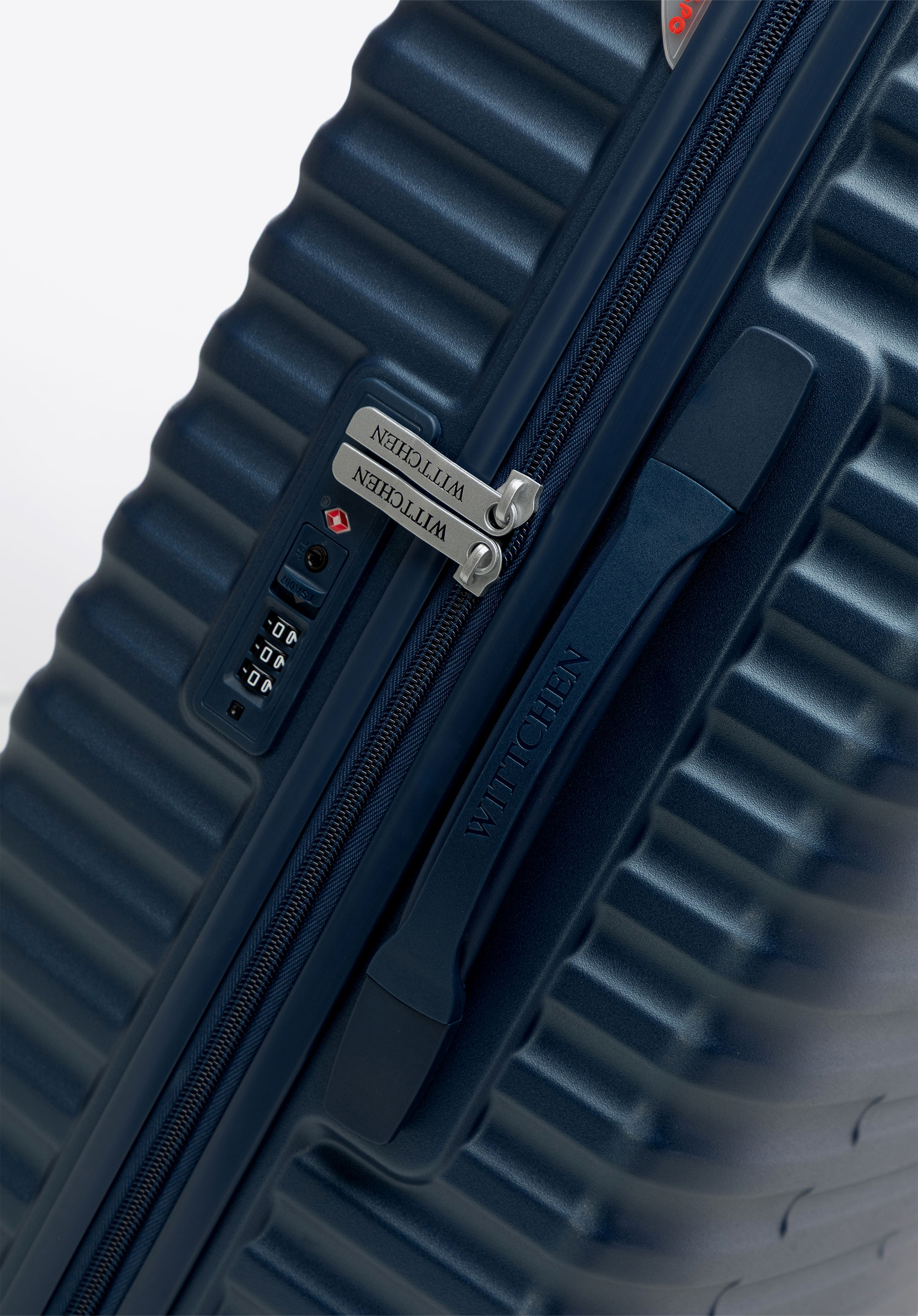 - Dizajn: Moderná silueta s horizontálnymi drážkami , ktoré umocňujú elegantný vzhľad kufra a zároveň posilňujú jeho štruktúru.