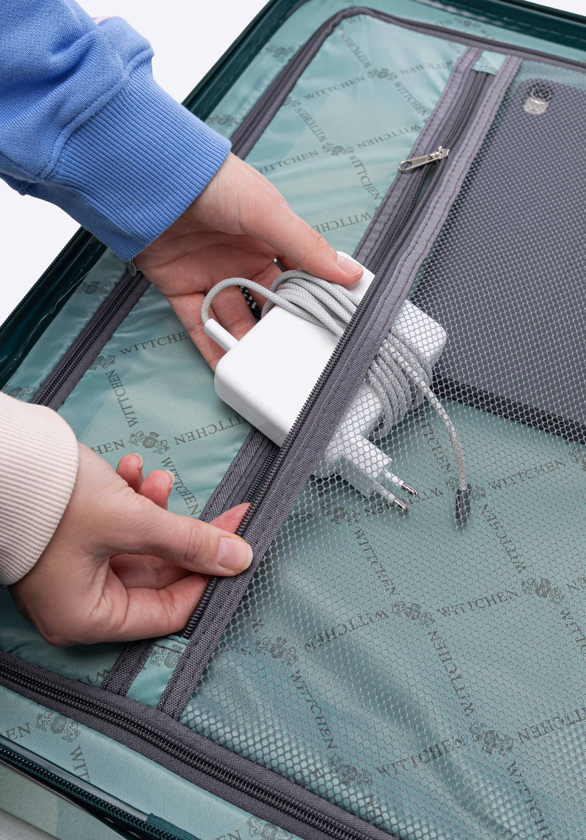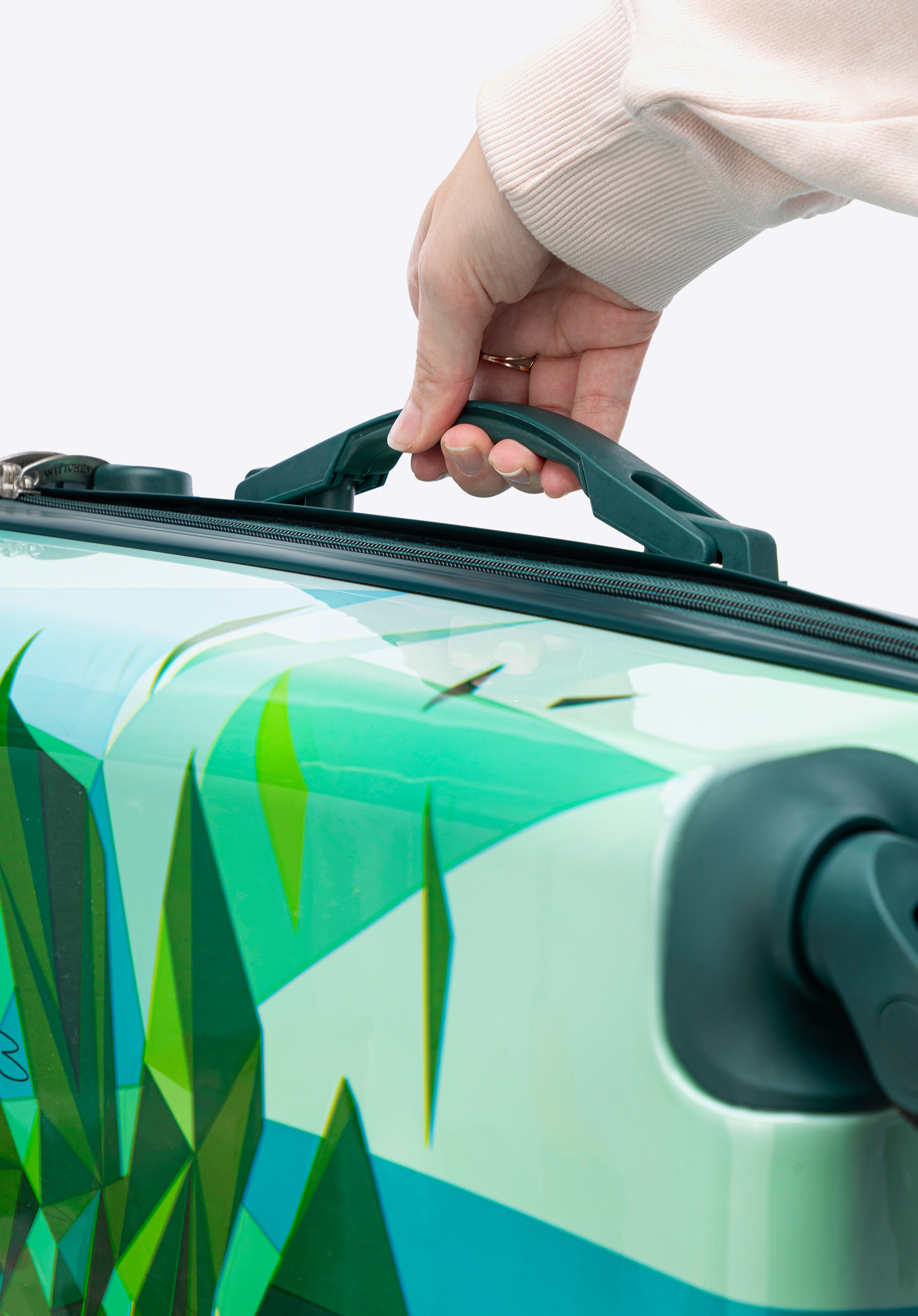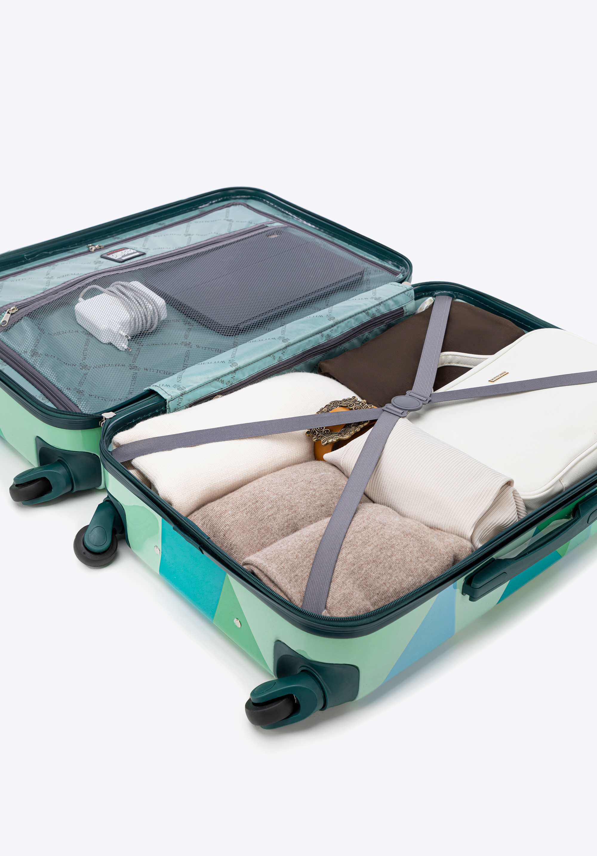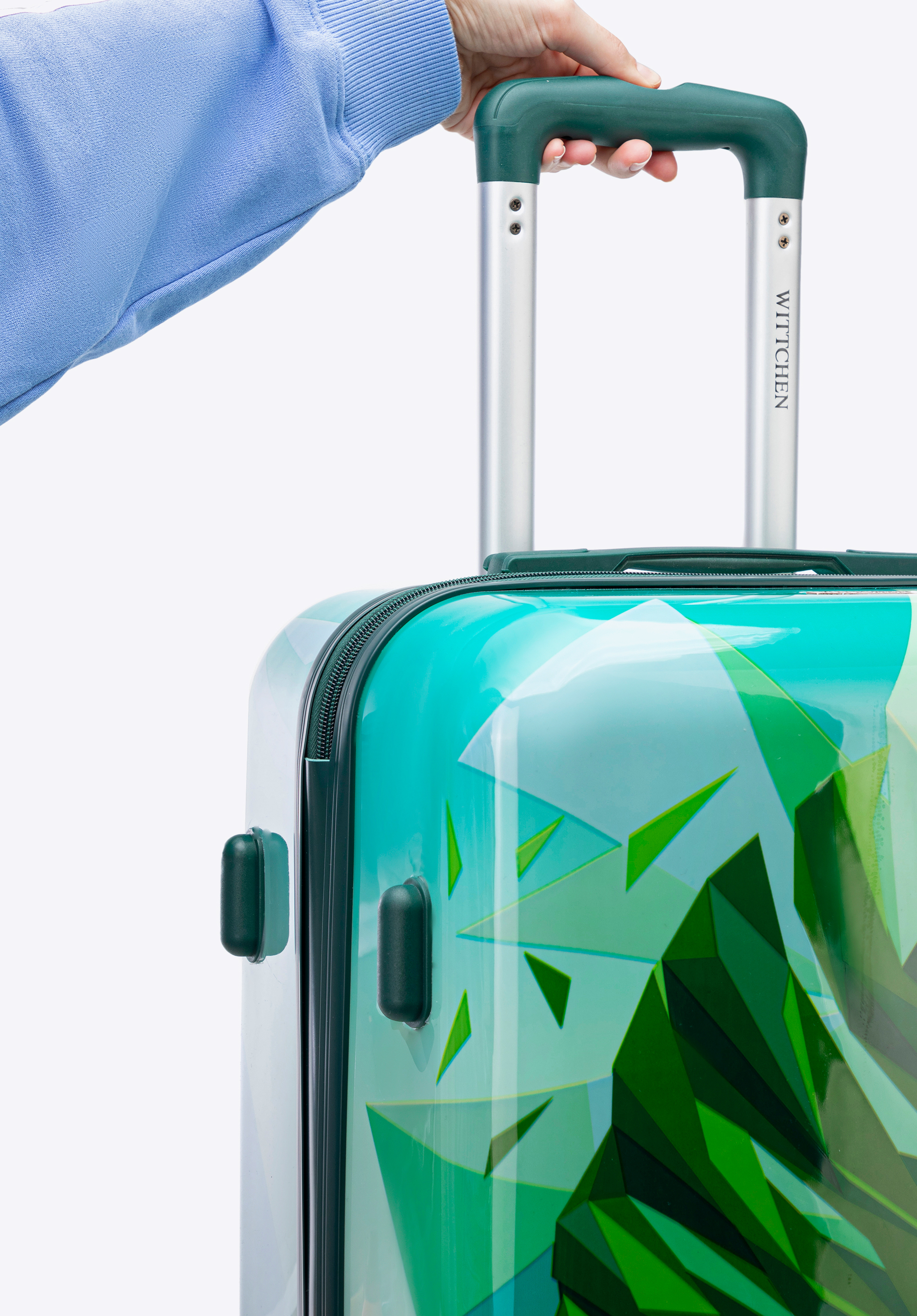 Stredný kufor z ABS s potlačou zeleno-modrý
