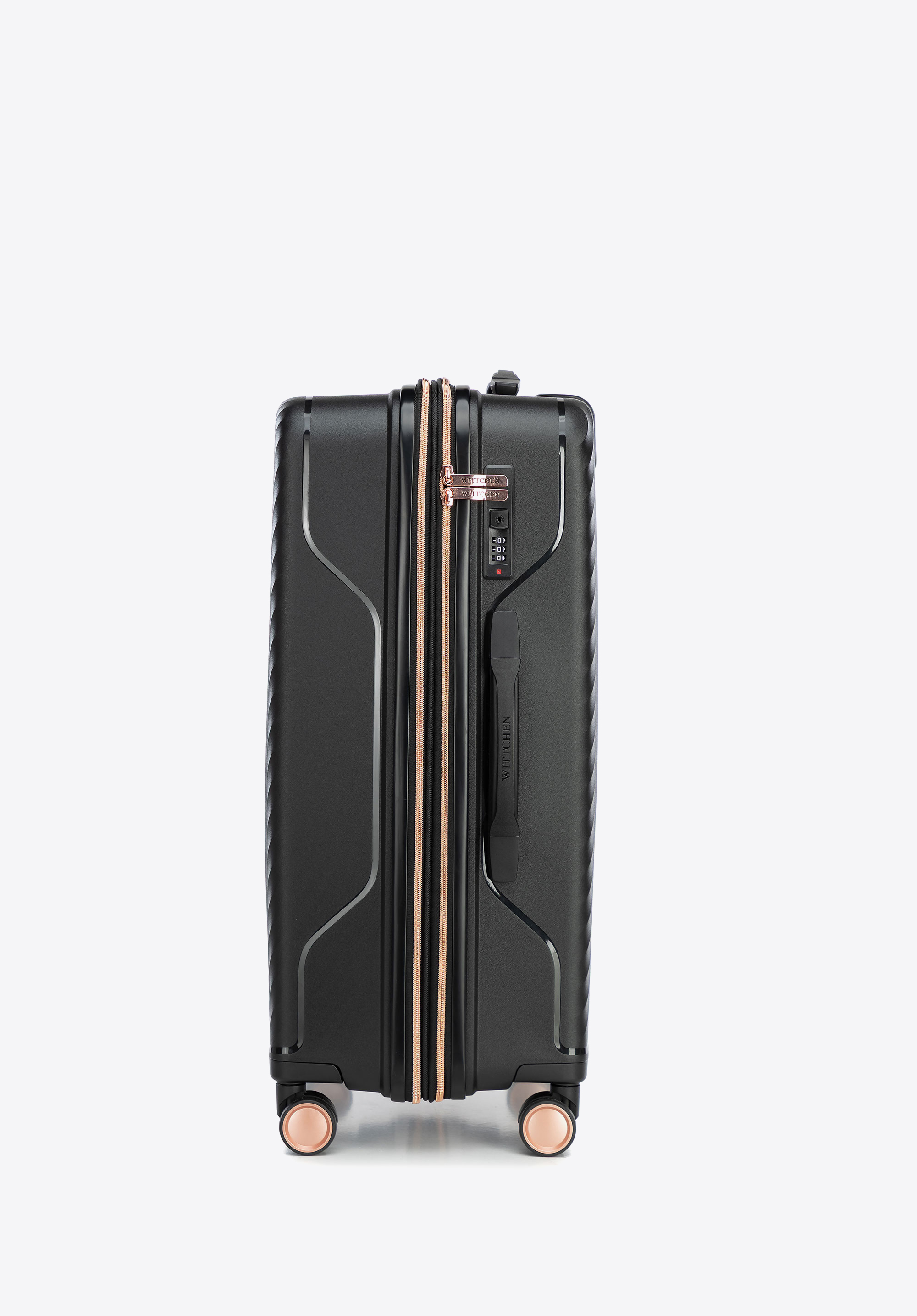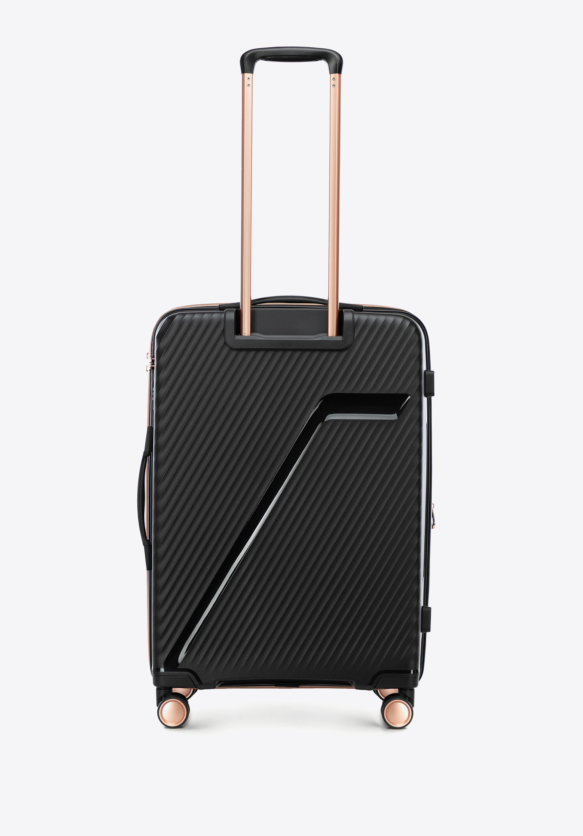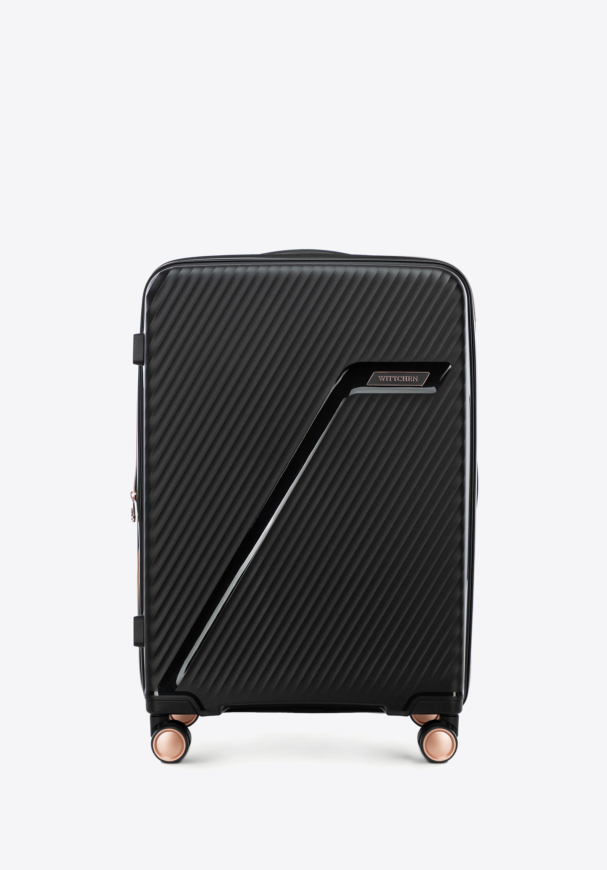 Stredný polypropylénový kufor s diagonálnym vzorom Farba: čierno-zlatá