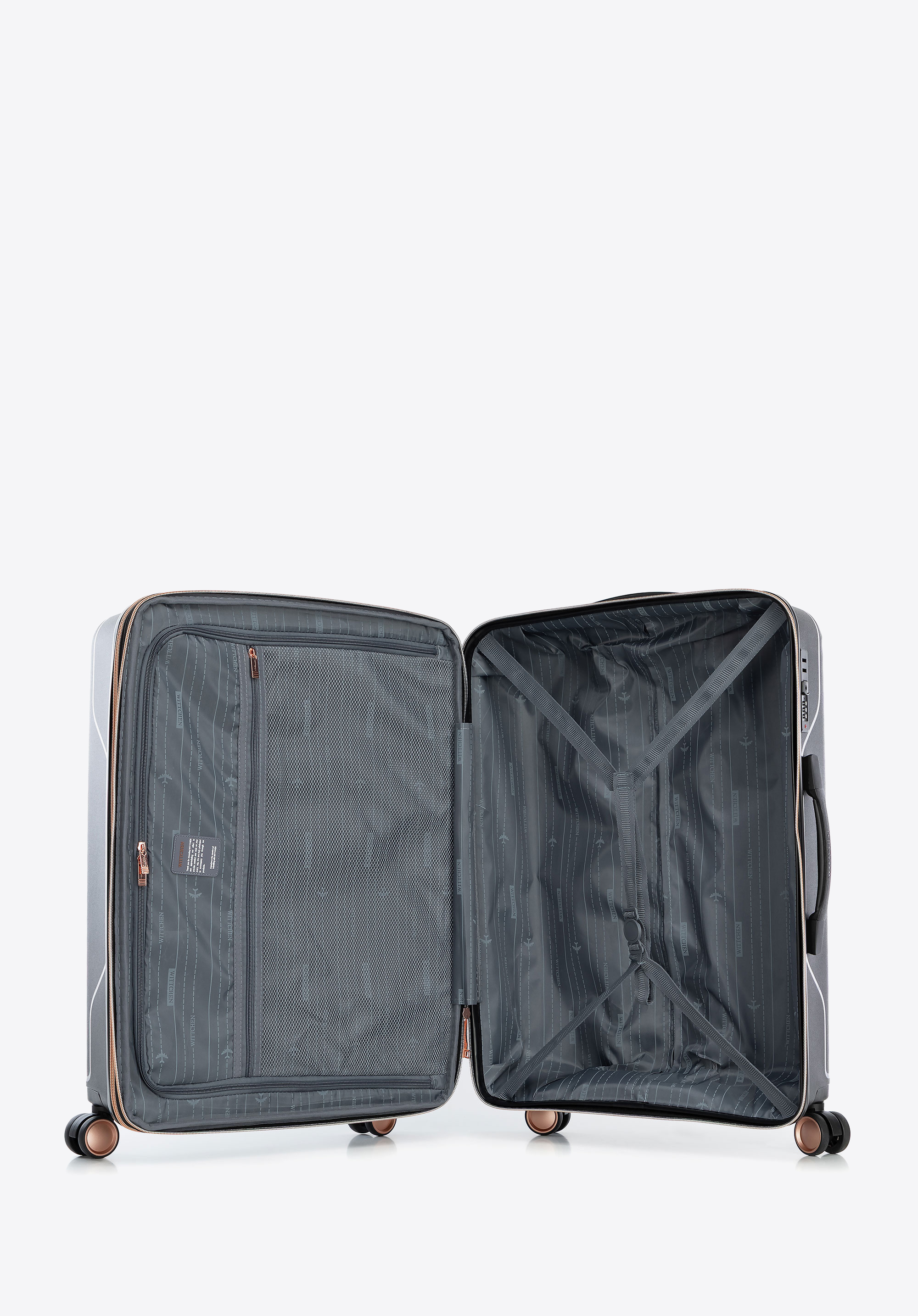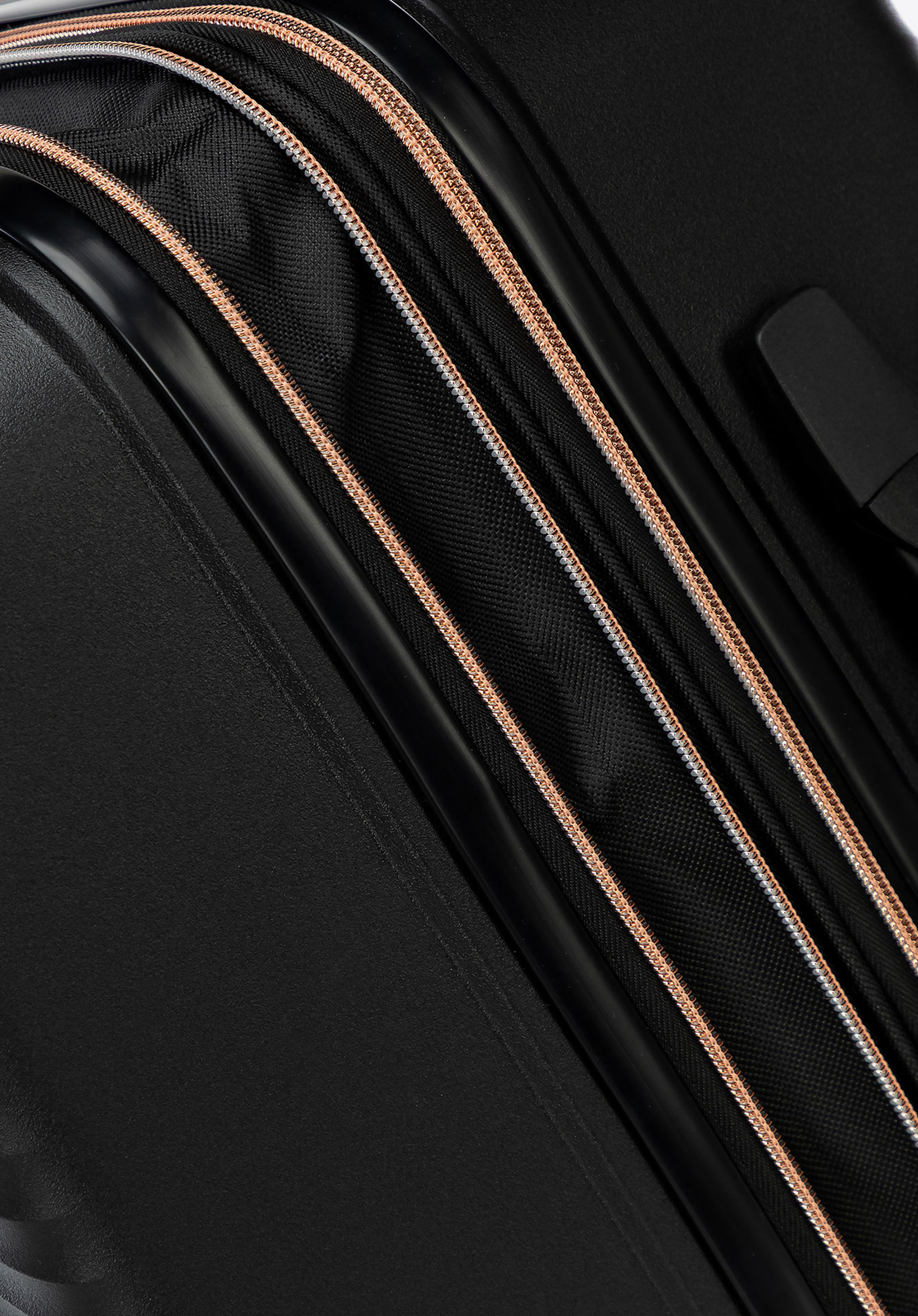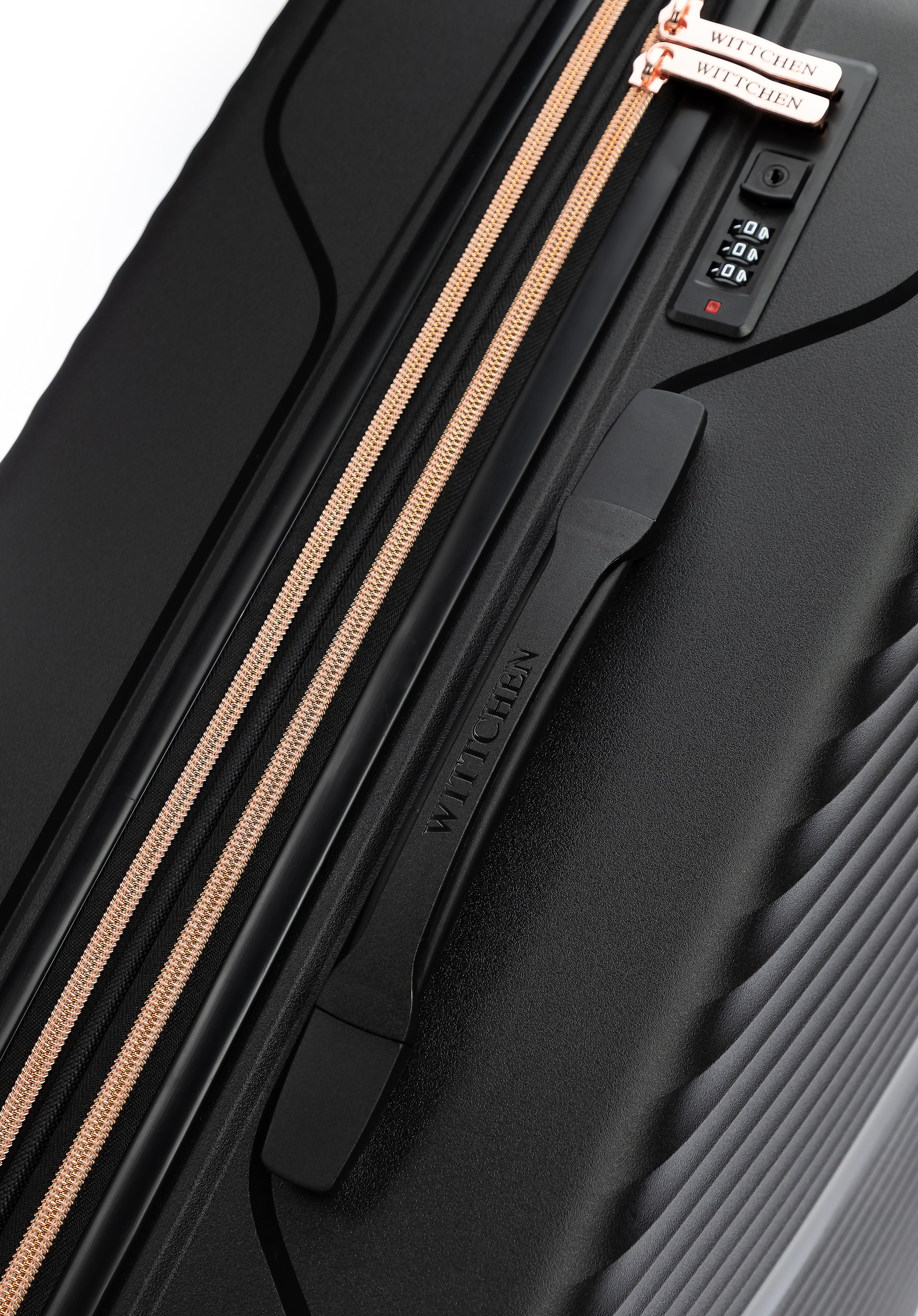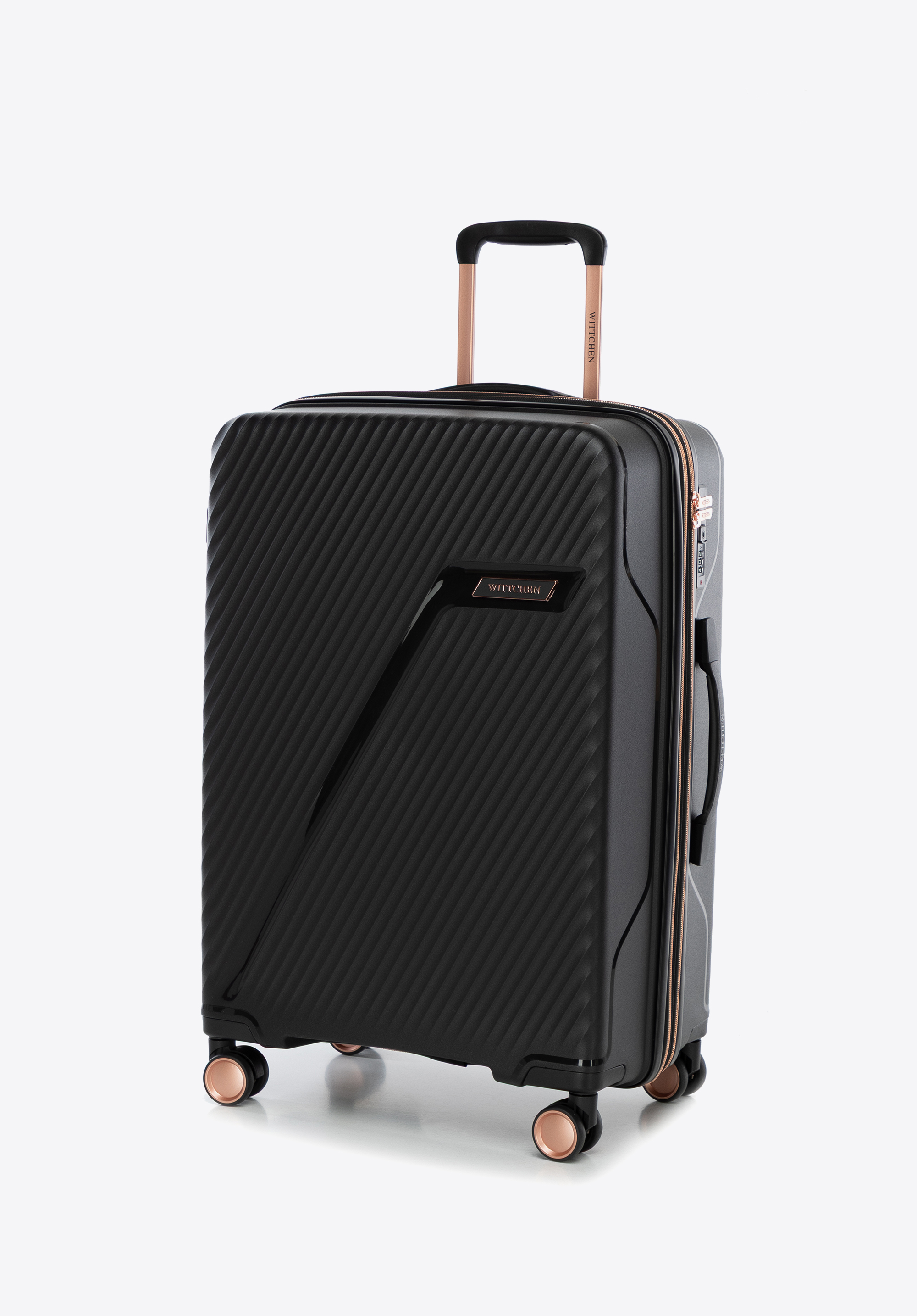 Stredný polypropylénový kufor s diagonálnym vzorom Farba: čierno-zlatá