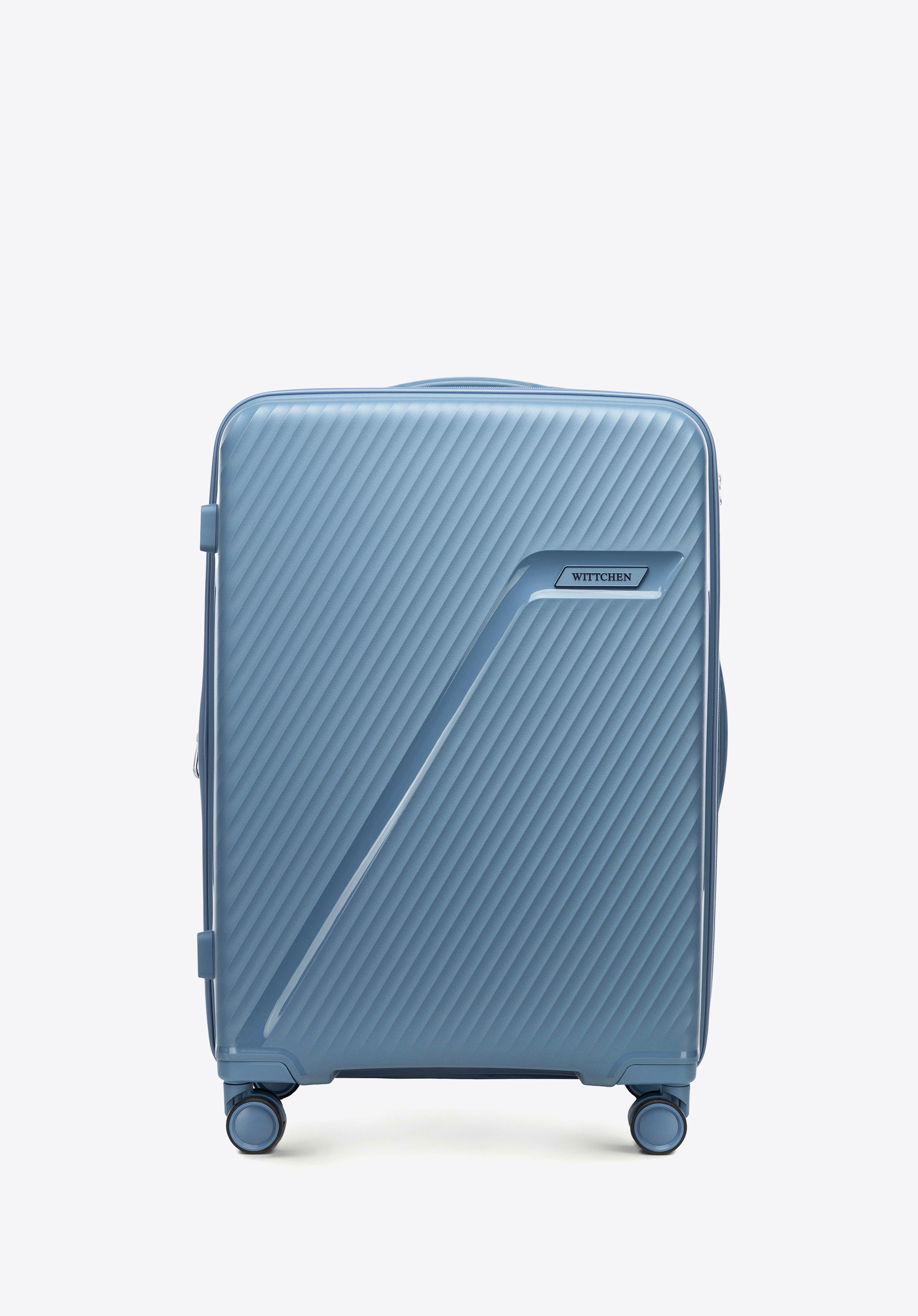 Stredný polypropylénový kufor s diagonálnym vzorom - modrý