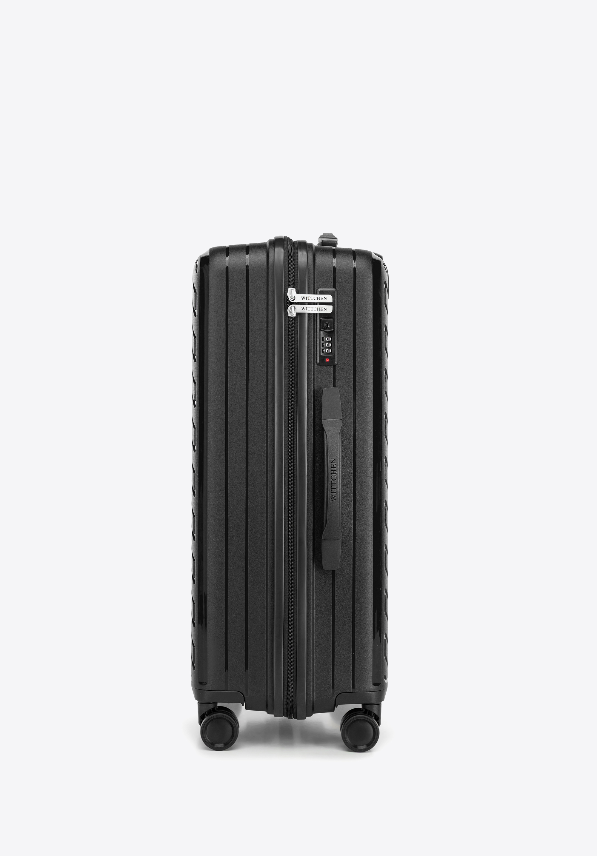 Stredne veľký kufor z kolekcie WITTCHEN RAYA LINE kombinuje elegantný dizajn s vynikajúcou funkčnosťou. Vyrobený z ľahkého polypropylénu poskytuje optimálnu ochranu vašich vecí a jeho moderný vzhľad dodáva každému výletu nádych elegancie. Vybavený 4 dvojitými kolieskami , teleskopickou rukoväťou a praktickými vnútornými prvkami, ako je napríklad kombinovaný zámok , zaisťuje pohodlné a bezpečné cestovanie.