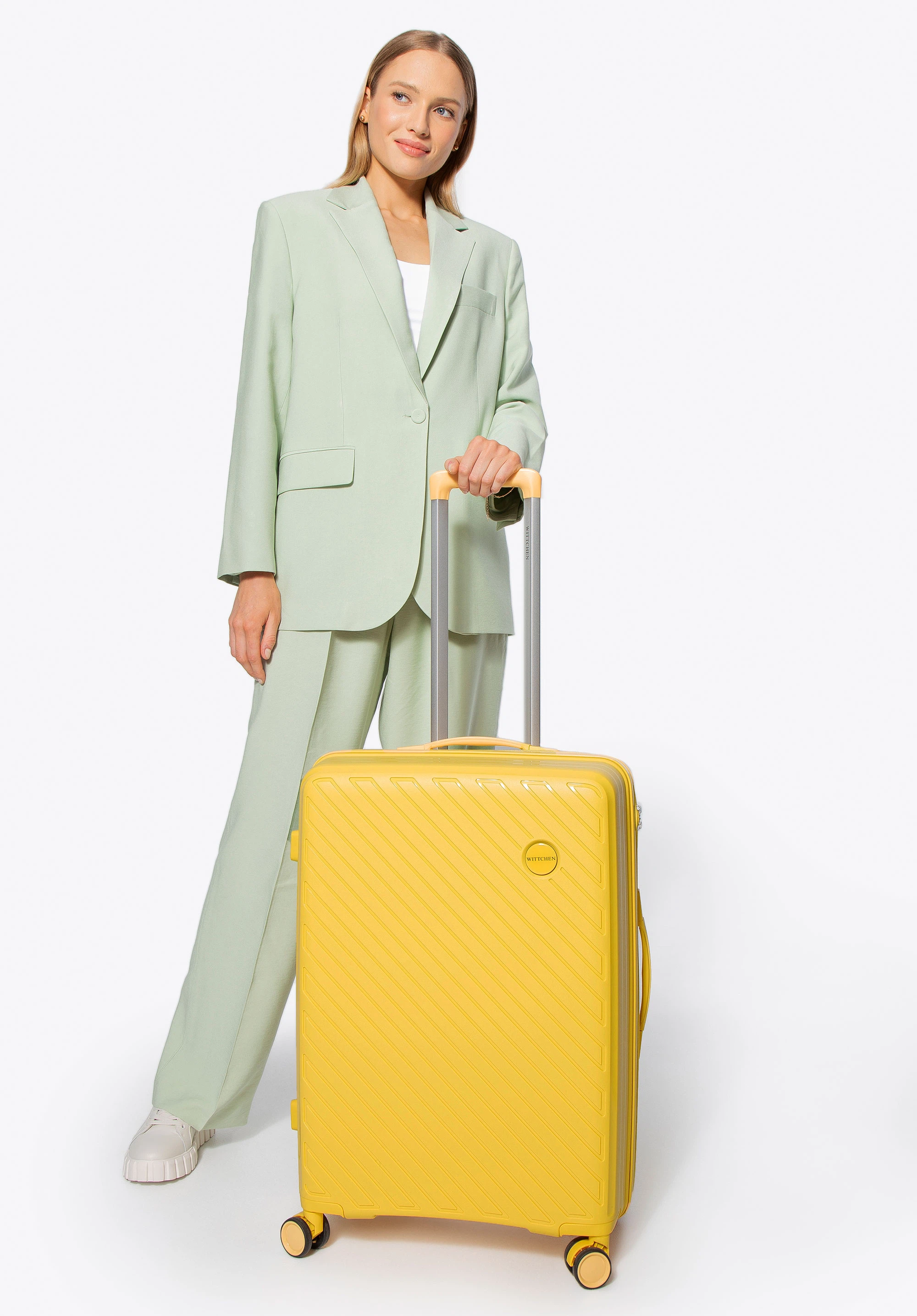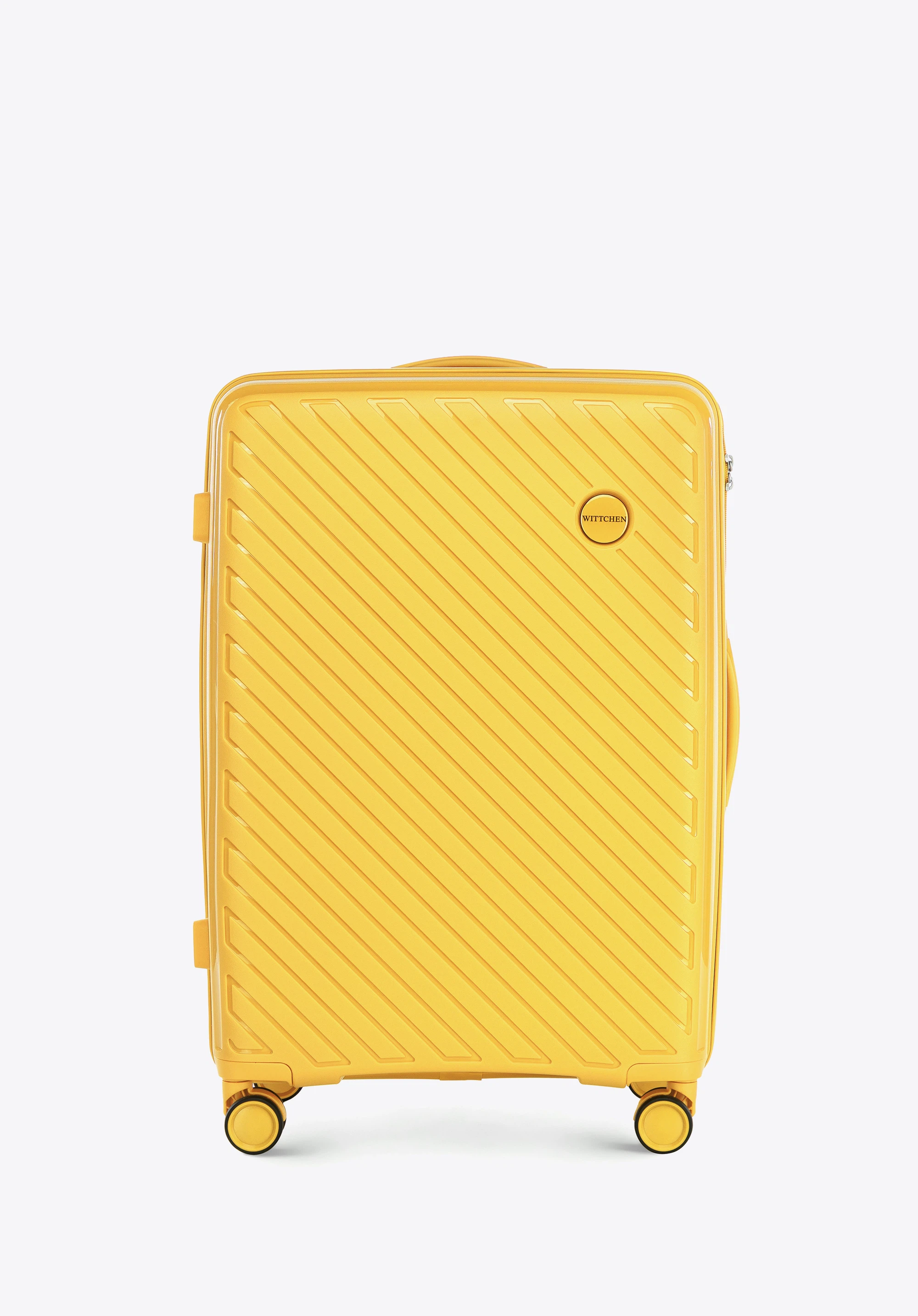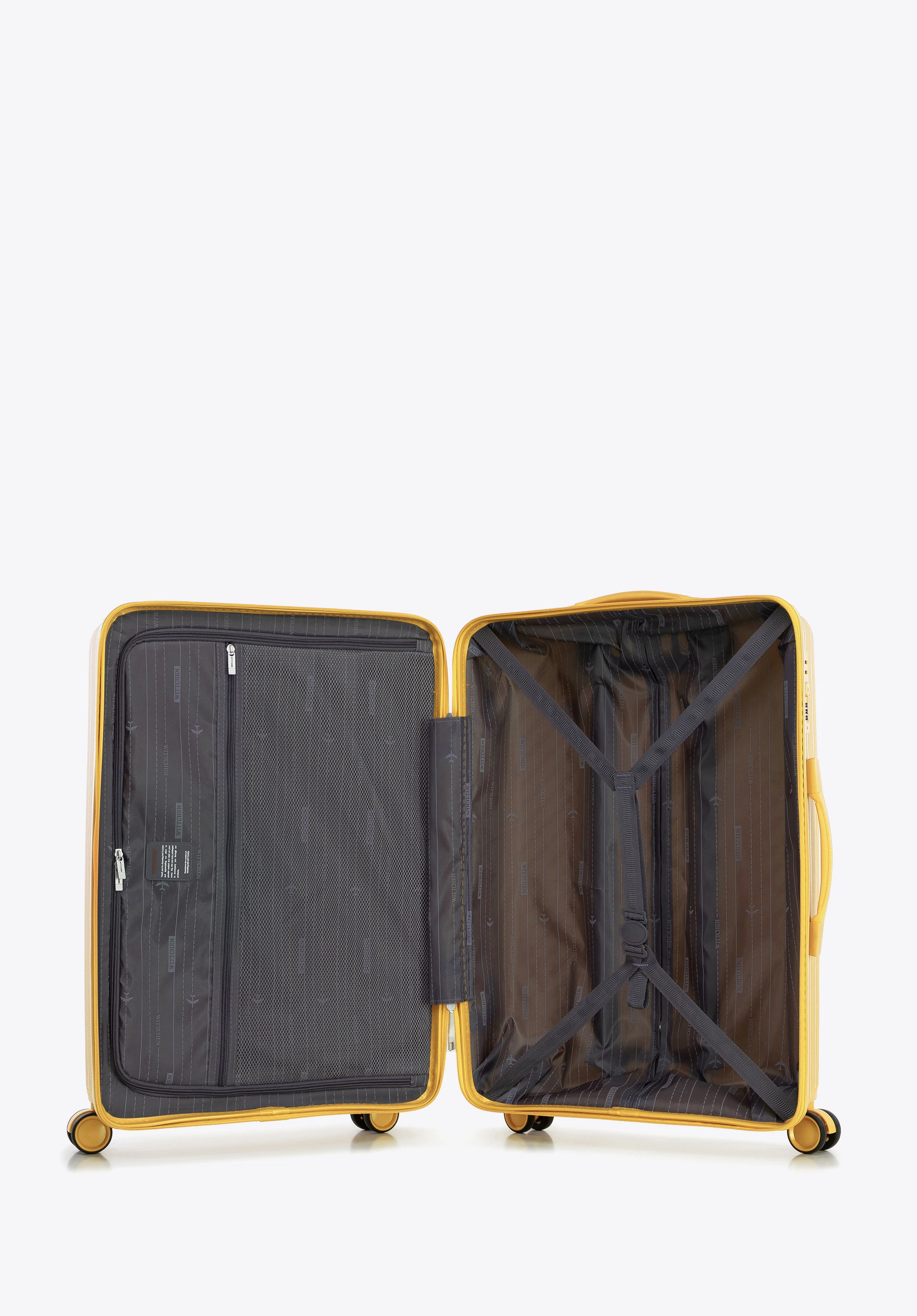 Stredne veľký kufor z kolekcie WITTCHEN RAYA LINE kombinuje elegantný dizajn s vynikajúcou funkčnosťou. Vyrobený z ľahkého polypropylénu poskytuje optimálnu ochranu vašich vecí a jeho moderný vzhľad dodáva každému výletu nádych elegancie. Vybavený 4 dvojitými kolieskami , teleskopickou rukoväťou a praktickými vnútornými prvkami, ako je napríklad kombinovaný zámok , zaisťuje pohodlné a bezpečné cestovanie.