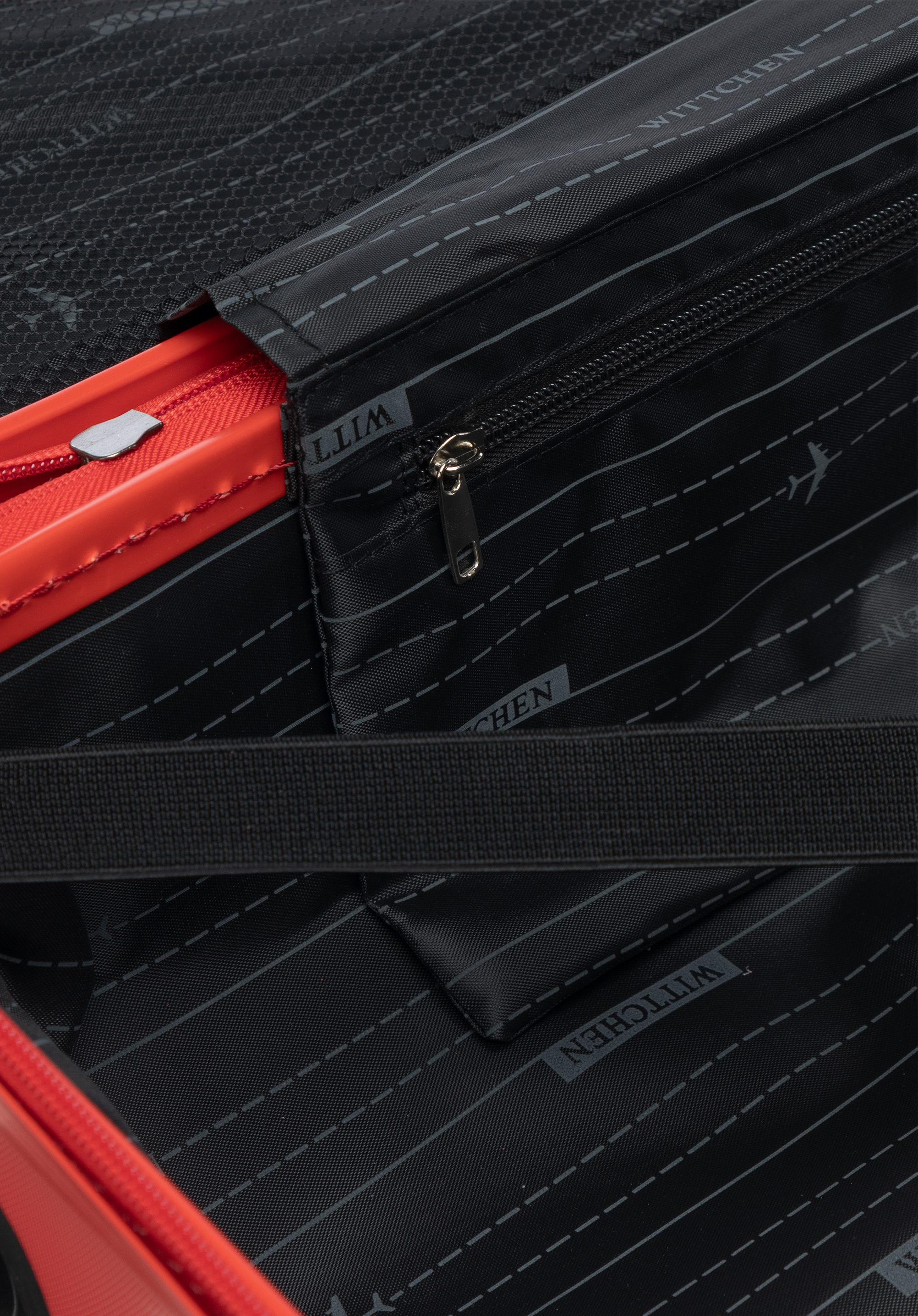 - elastický pás vzadu na upevnenie na rukoväť kufra;