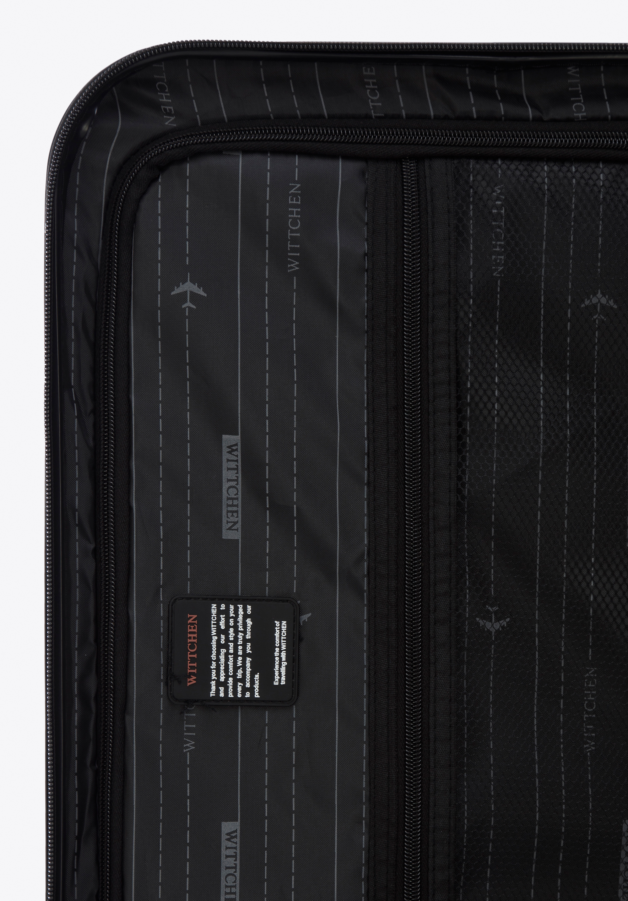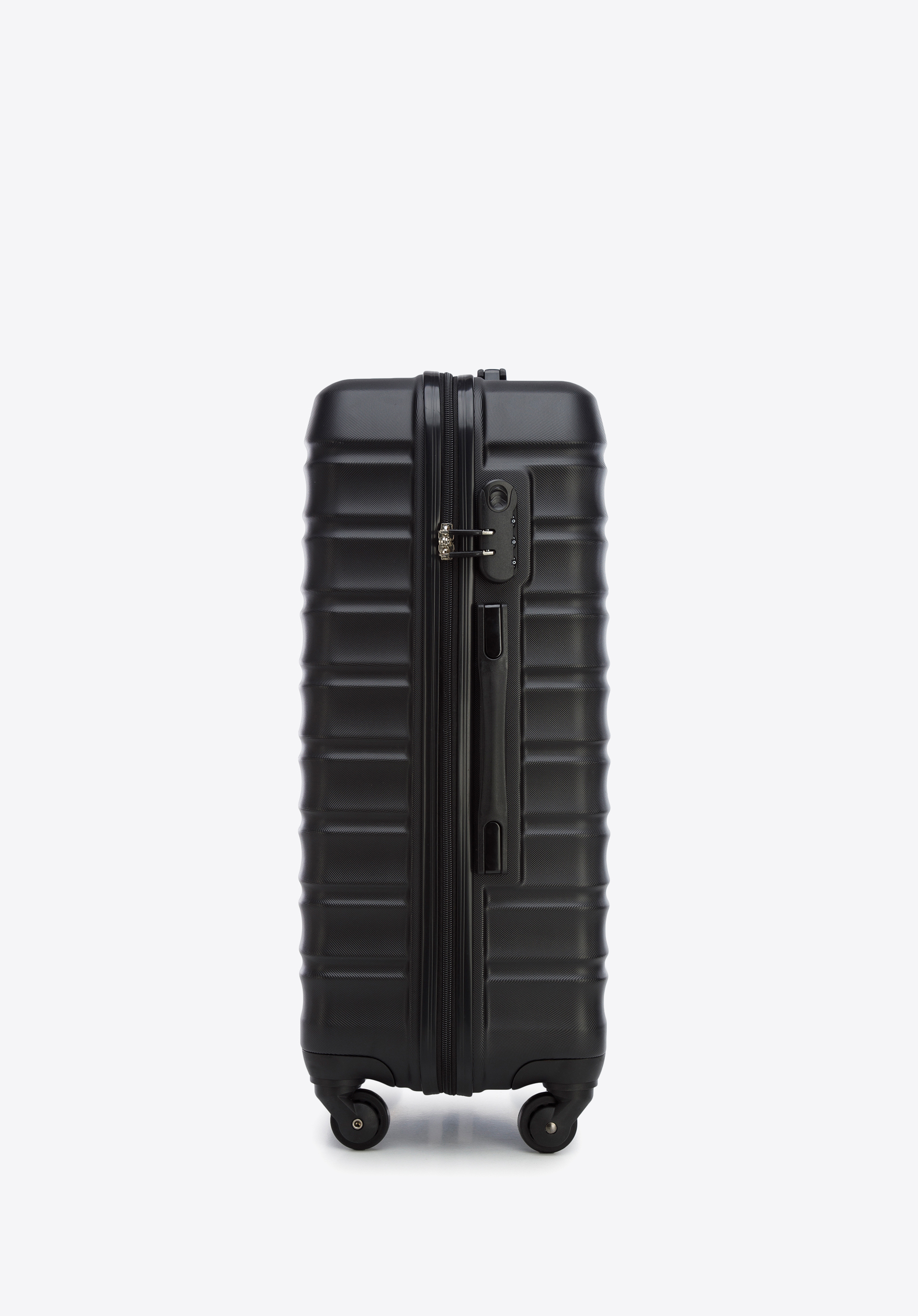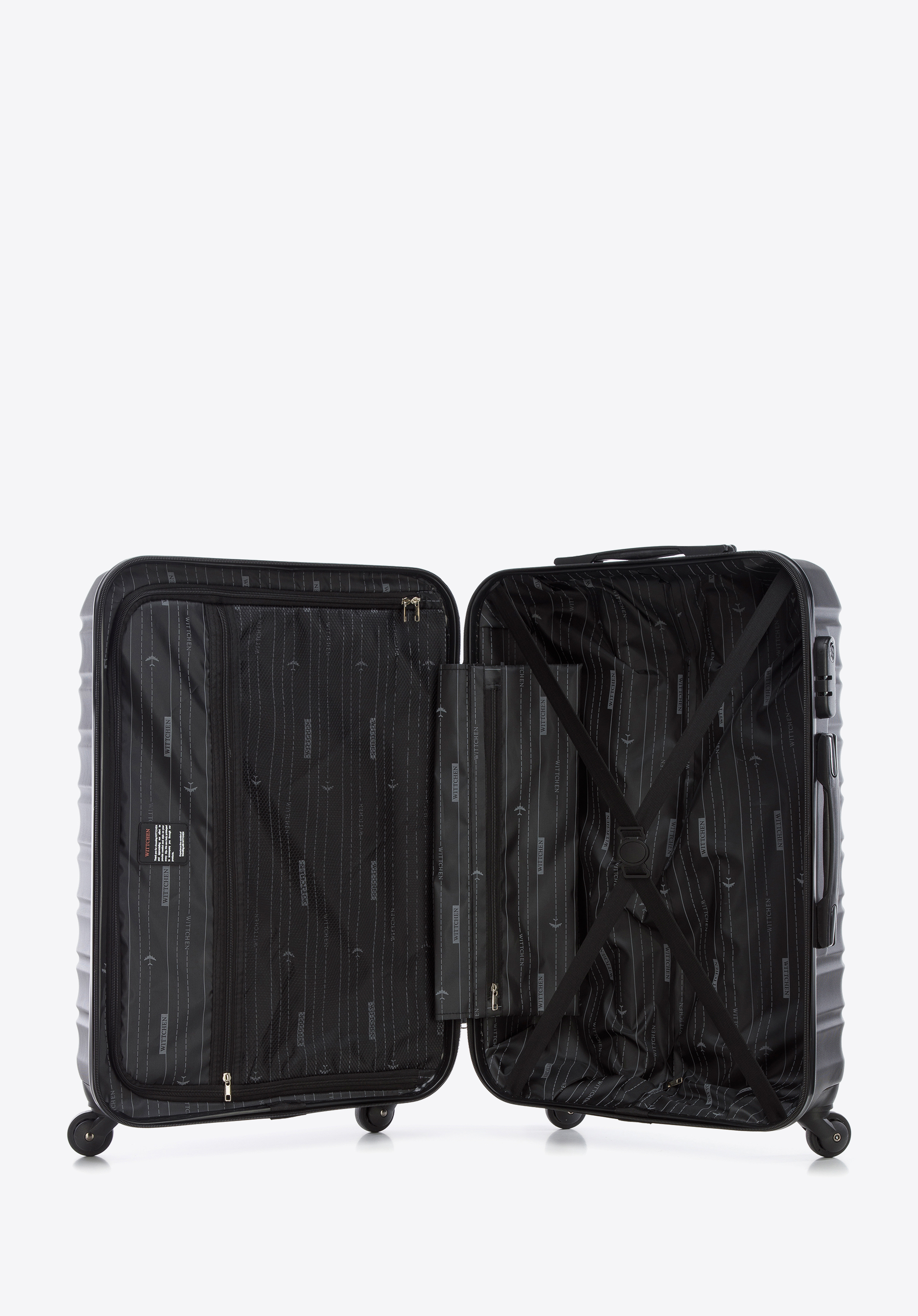 Vyrobené z ABS, ktoré sa vyznačuje zvýšenou odolnosťou voči poškodeniu. Kufor je vybavený