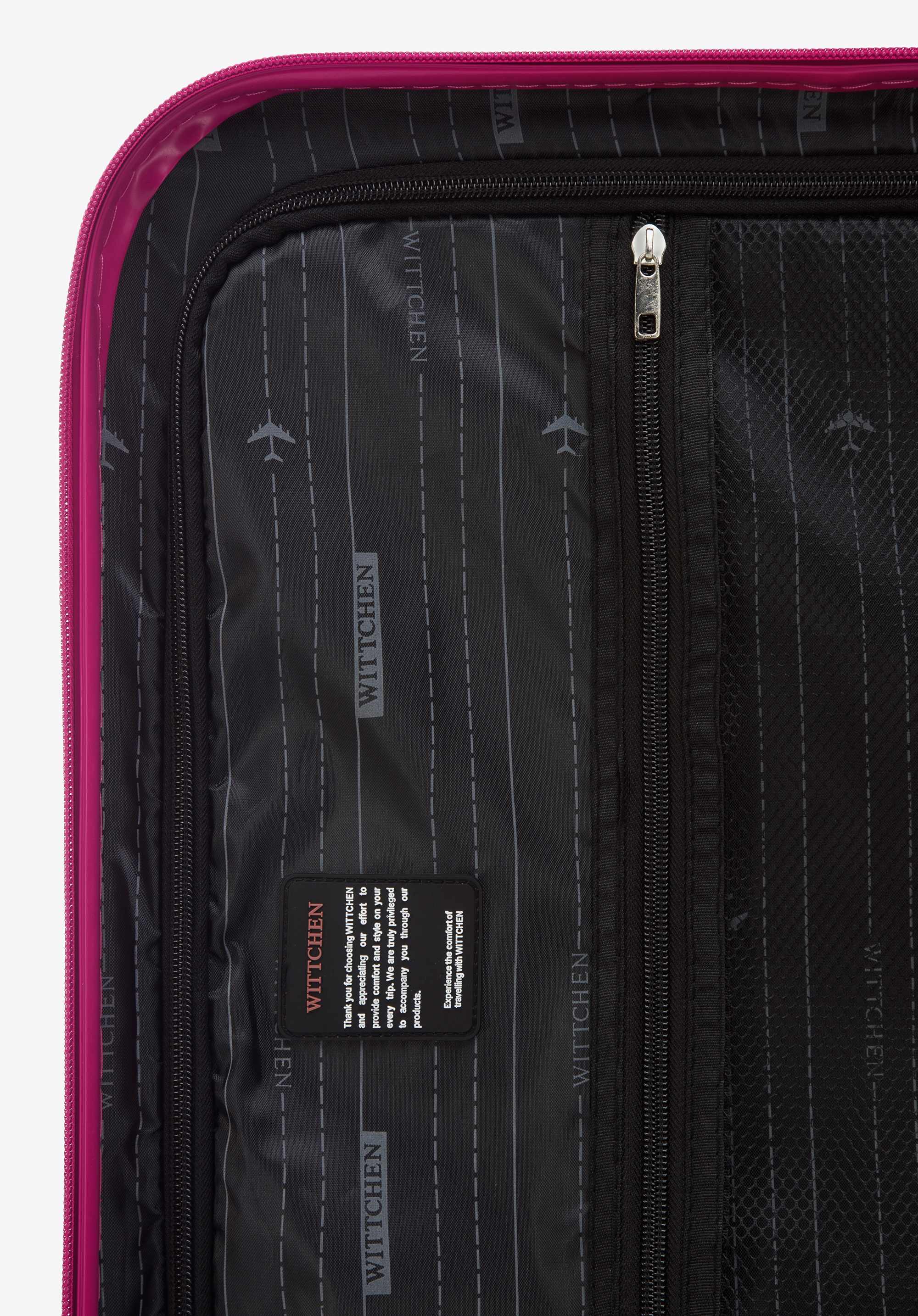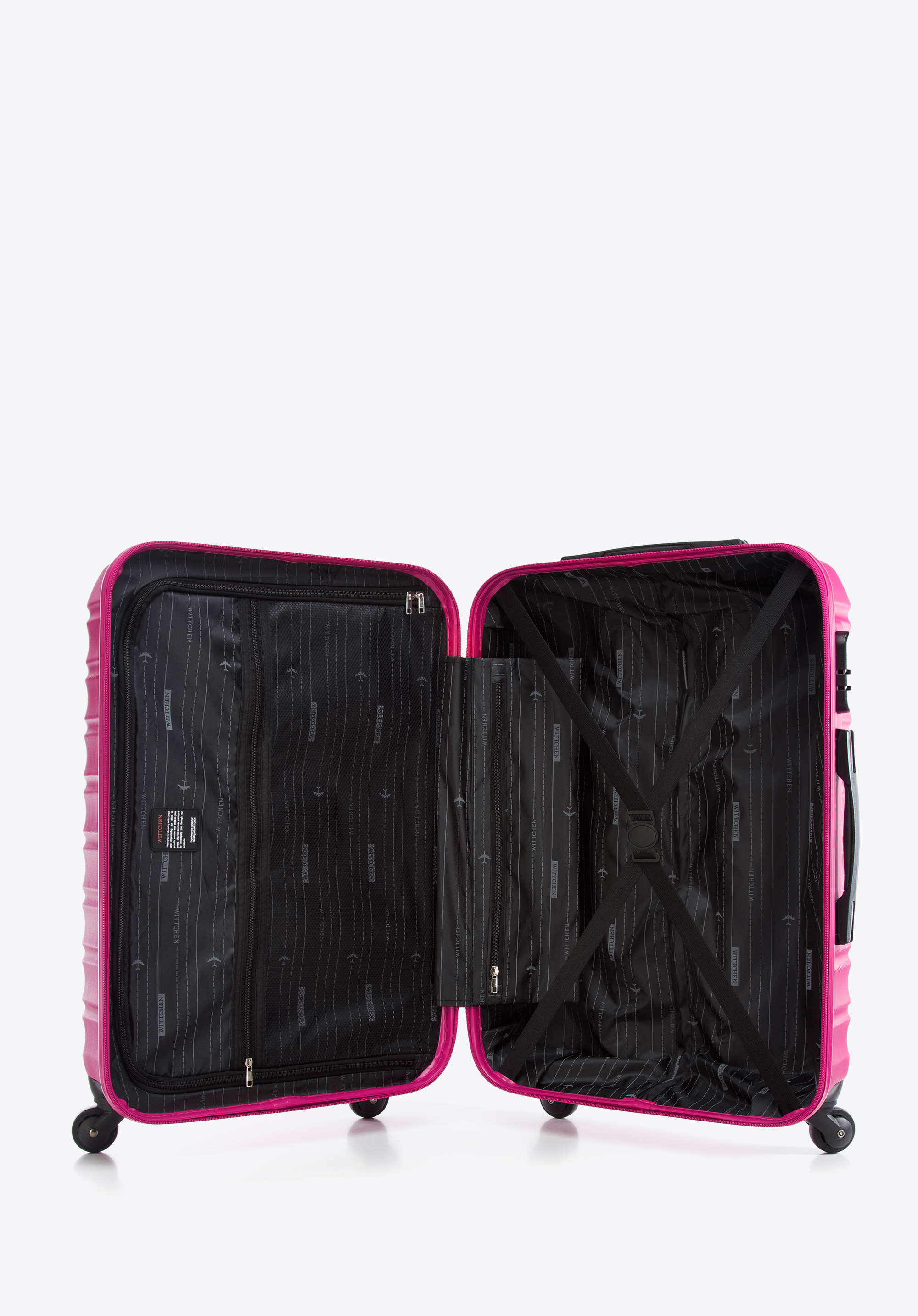 Vyrobené z ABS, ktoré sa vyznačuje zvýšenou odolnosťou voči poškodeniu. Kufor je vybavený