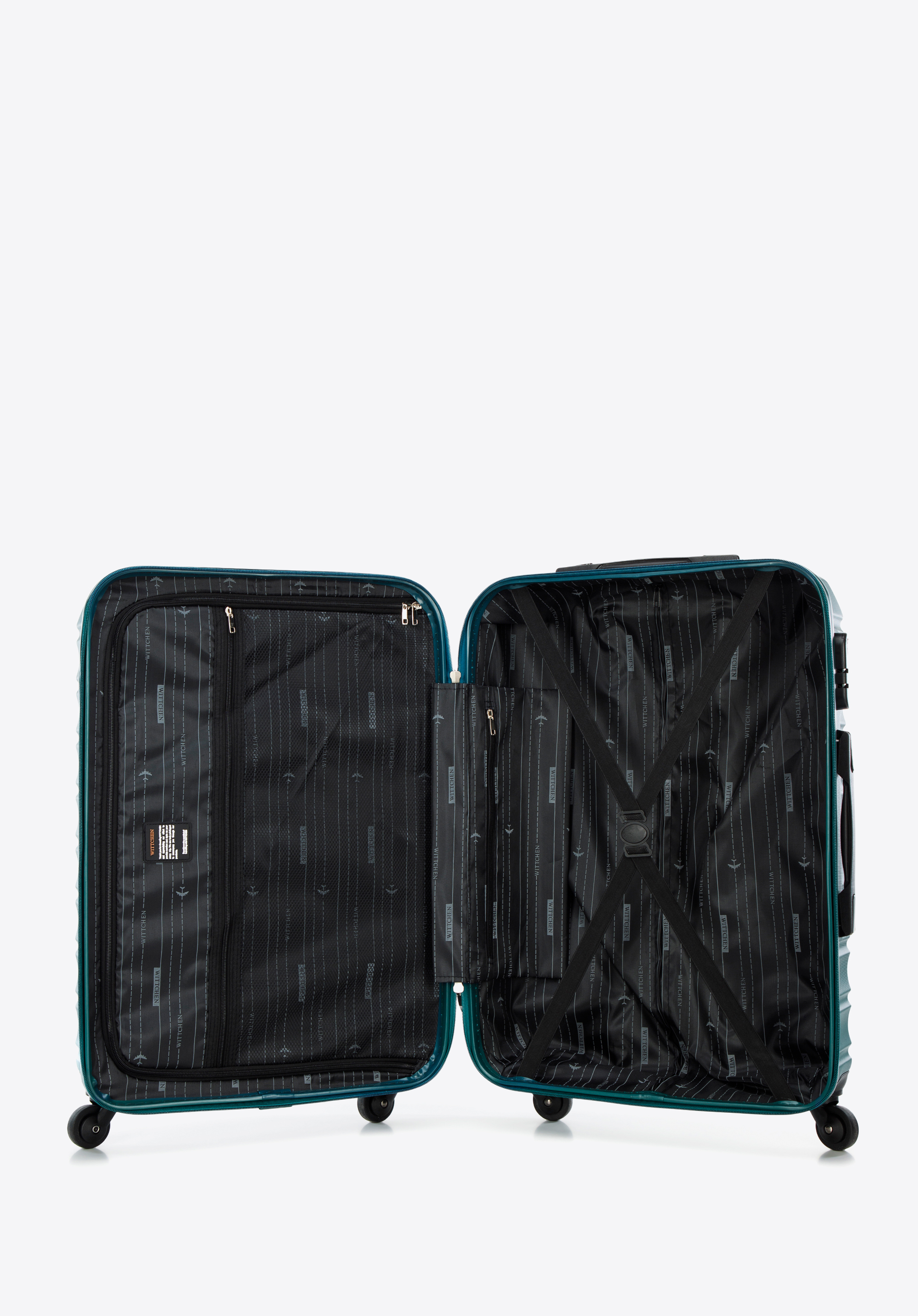 Vyrobené z ABS, ktoré sa vyznačuje zvýšenou odolnosťou voči poškodeniu. Kufor je vybavený