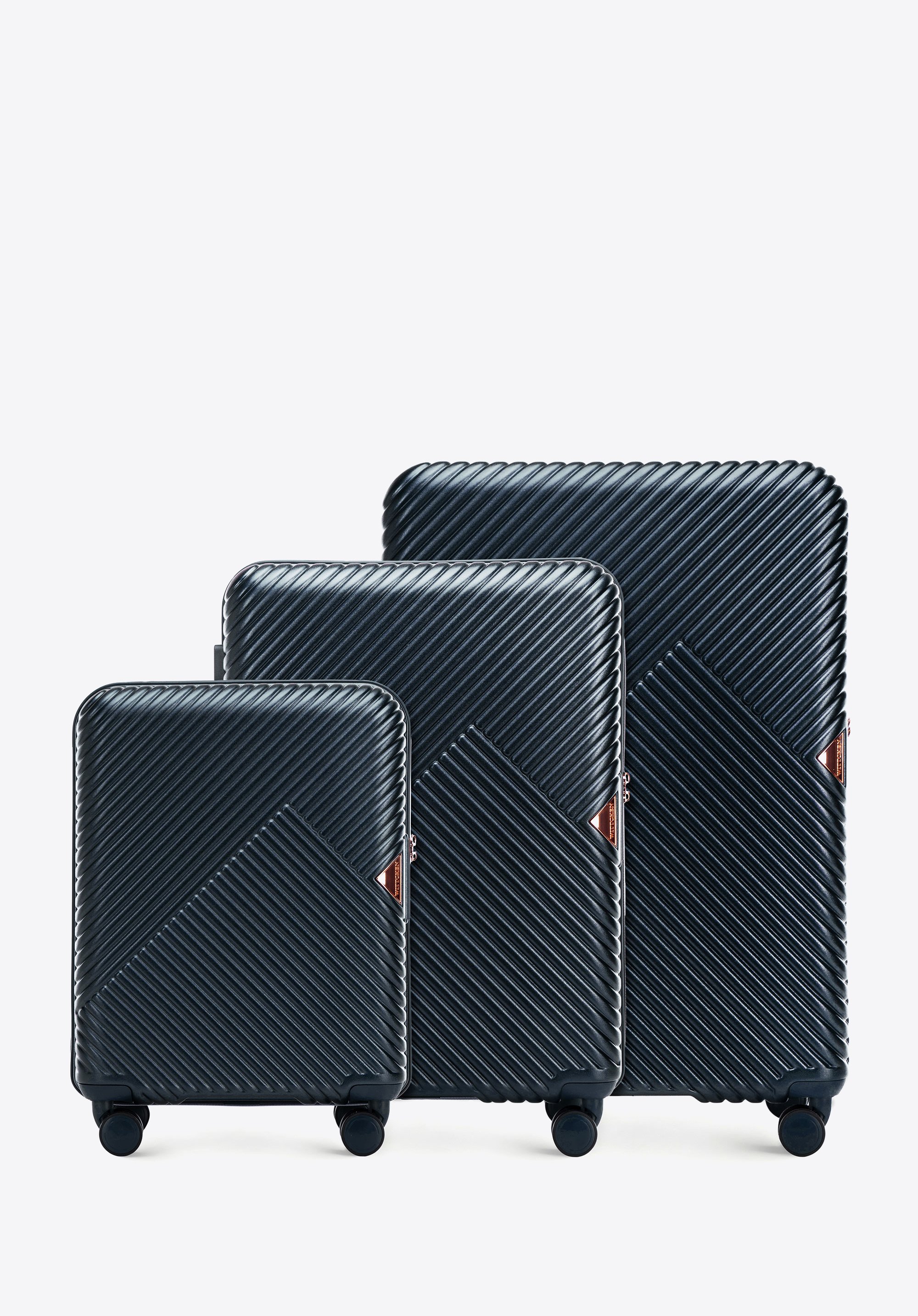 Súprava kufrov z polykarbonátu s prúžkovým vzorom tmavomodrá