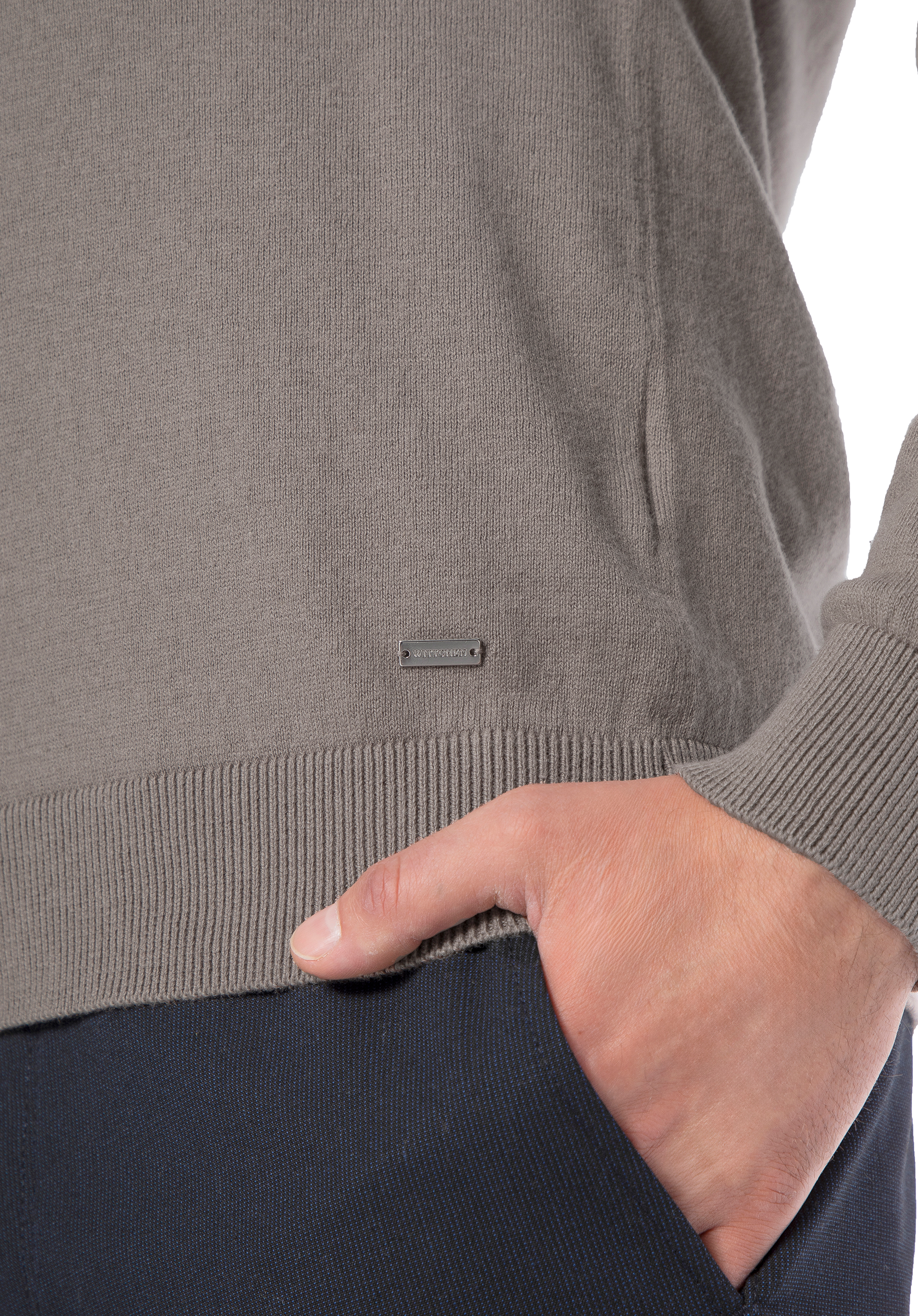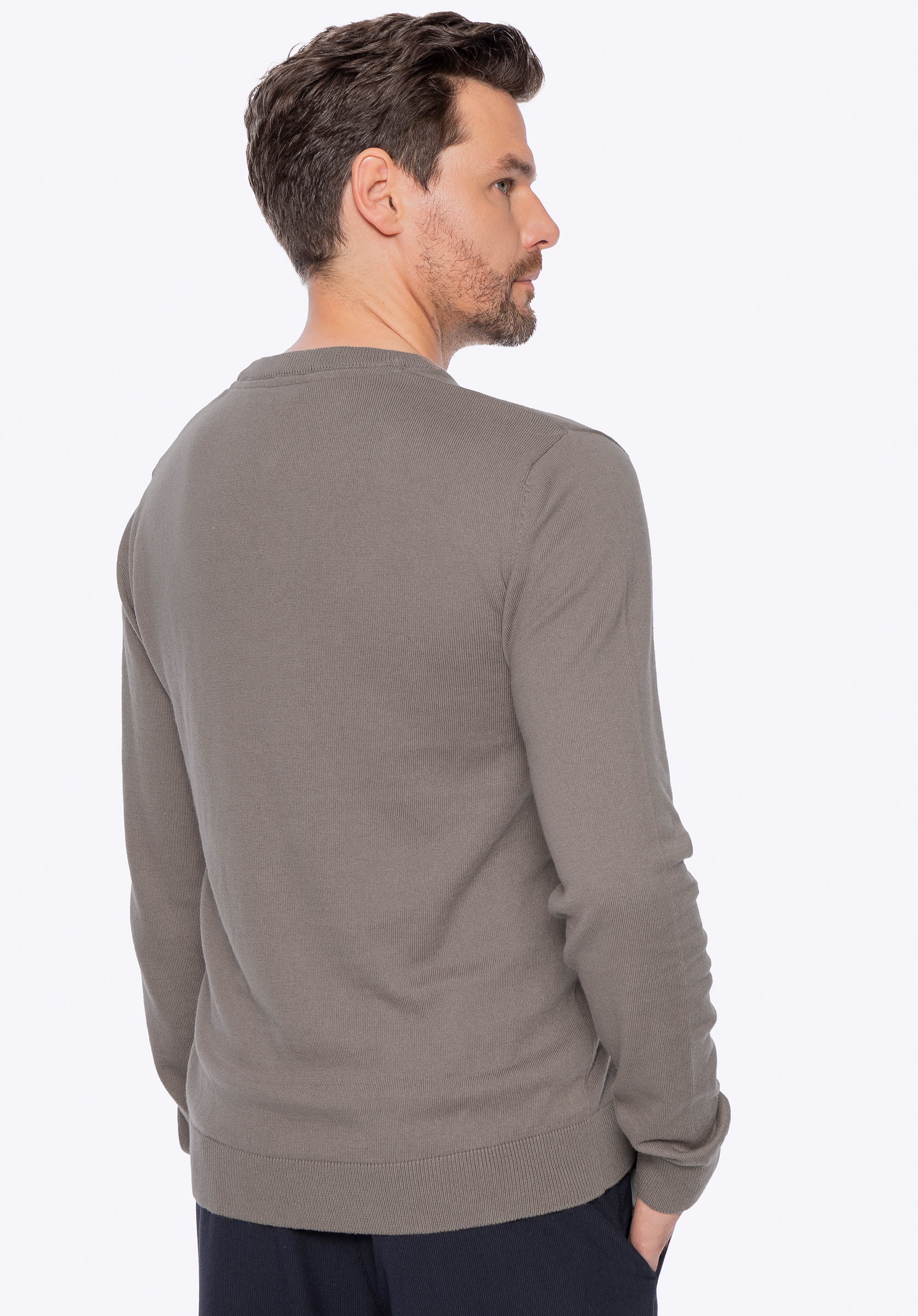 Tento sveter je perfektnou voľbou pre mužov, ktorí oceňujú jednoduchosť a nadčasový štýl. Vyrobený zo zmesi bavlny a kašmíru ponúka mäkkosť, tepelný komfort a prirodzenú priedušnosť. Klasický, mierne priliehavý strih s okrúhlym výstrihom a jemným rebrovaním na leme vytvára harmonický vzhľad, ktorý sa hodí rovnako na každodenné nosenie ako aj na elegantnejšie outfity. Malé kovové logo na spodnom okraji je decentným, no zároveň rafinovaným doplnkom, ktorý zdôrazňuje dôraz na detail.