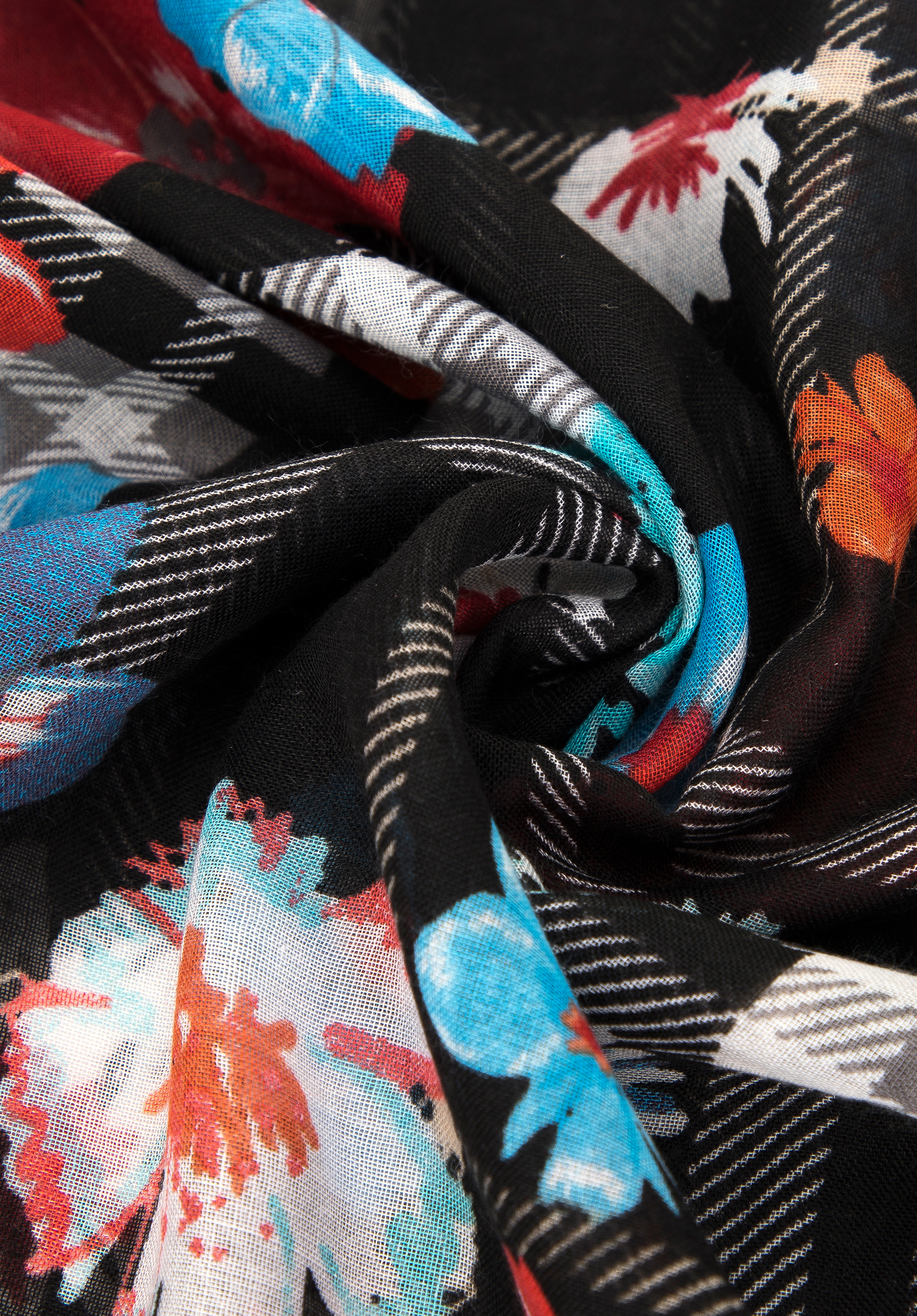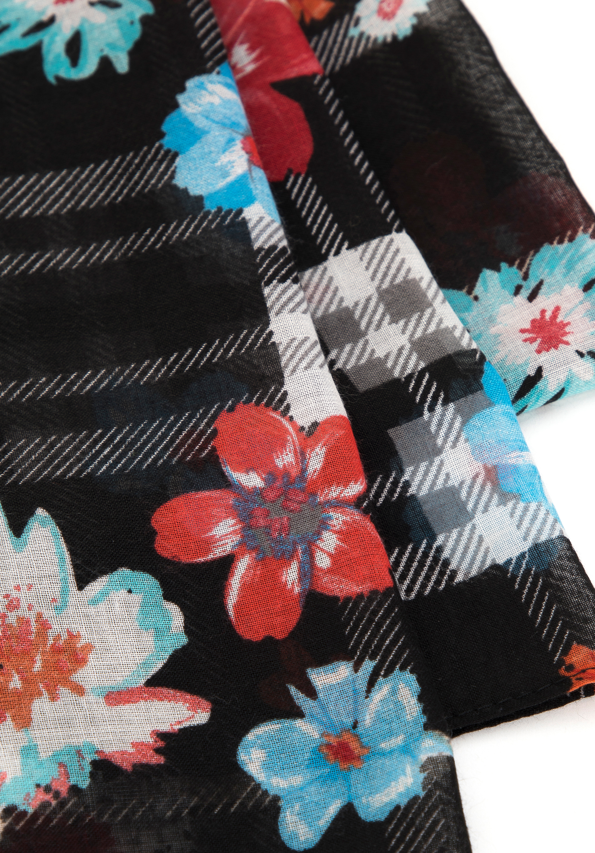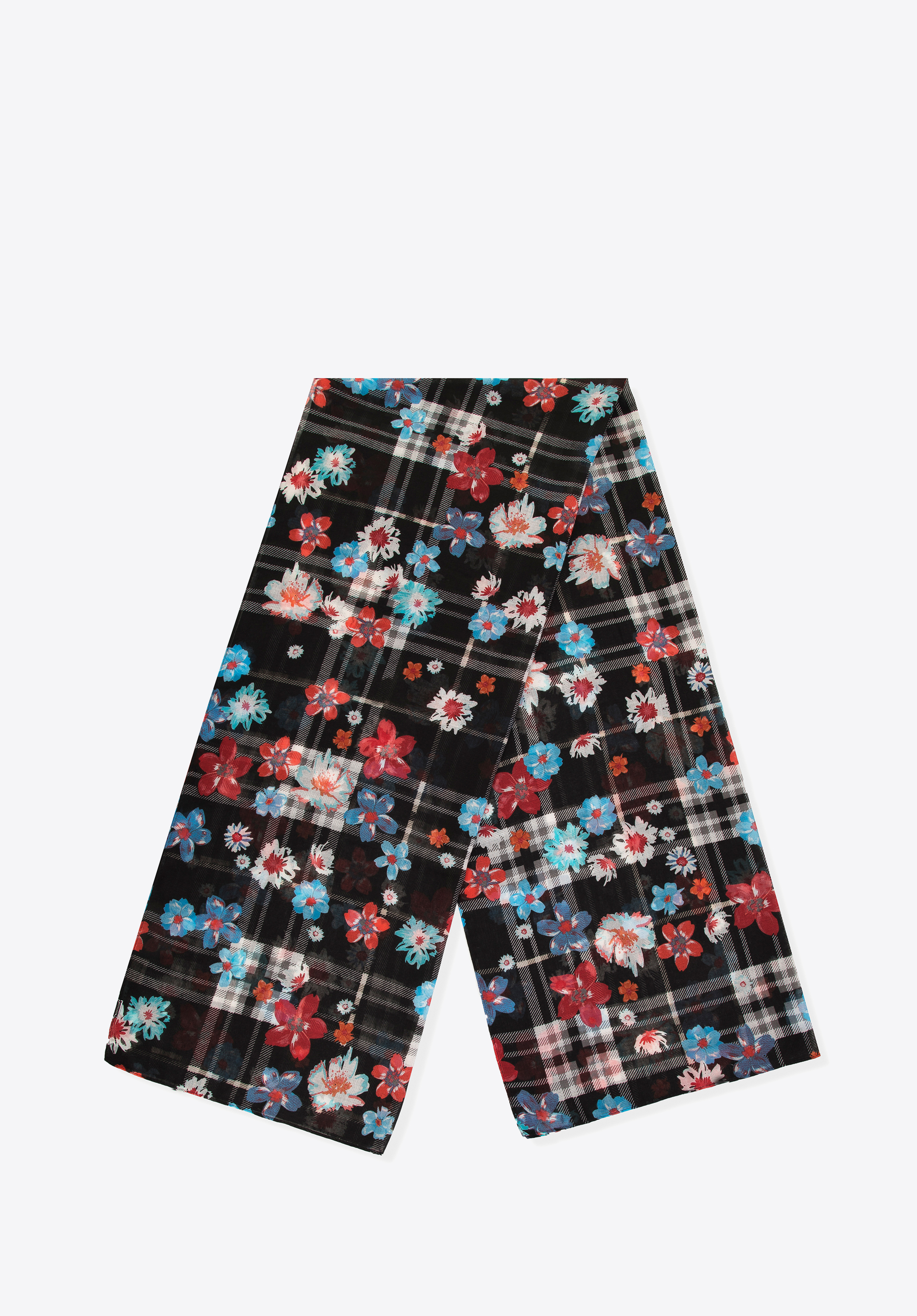 Tento mimoriadne príjemný na dotyk a ľahký šál je požadovanou ozdobou v šatníku každej modernej ženy, ktorá prejavuje záujem o módne experimenty. Šál kombinuje dva trendové vzory: štýlový károvaný a kvetinový, čím vytvára jeden pôsobivý celok.
