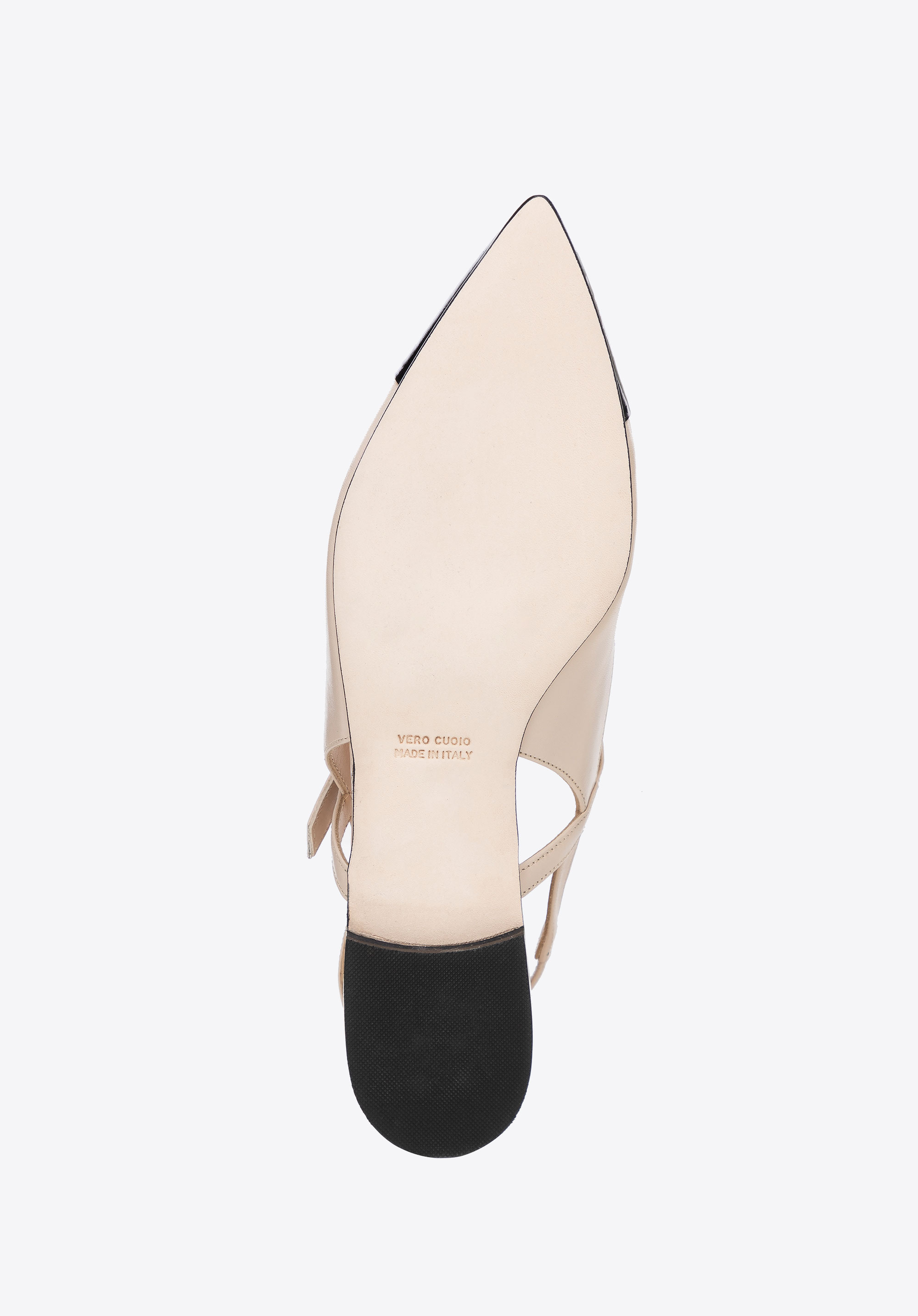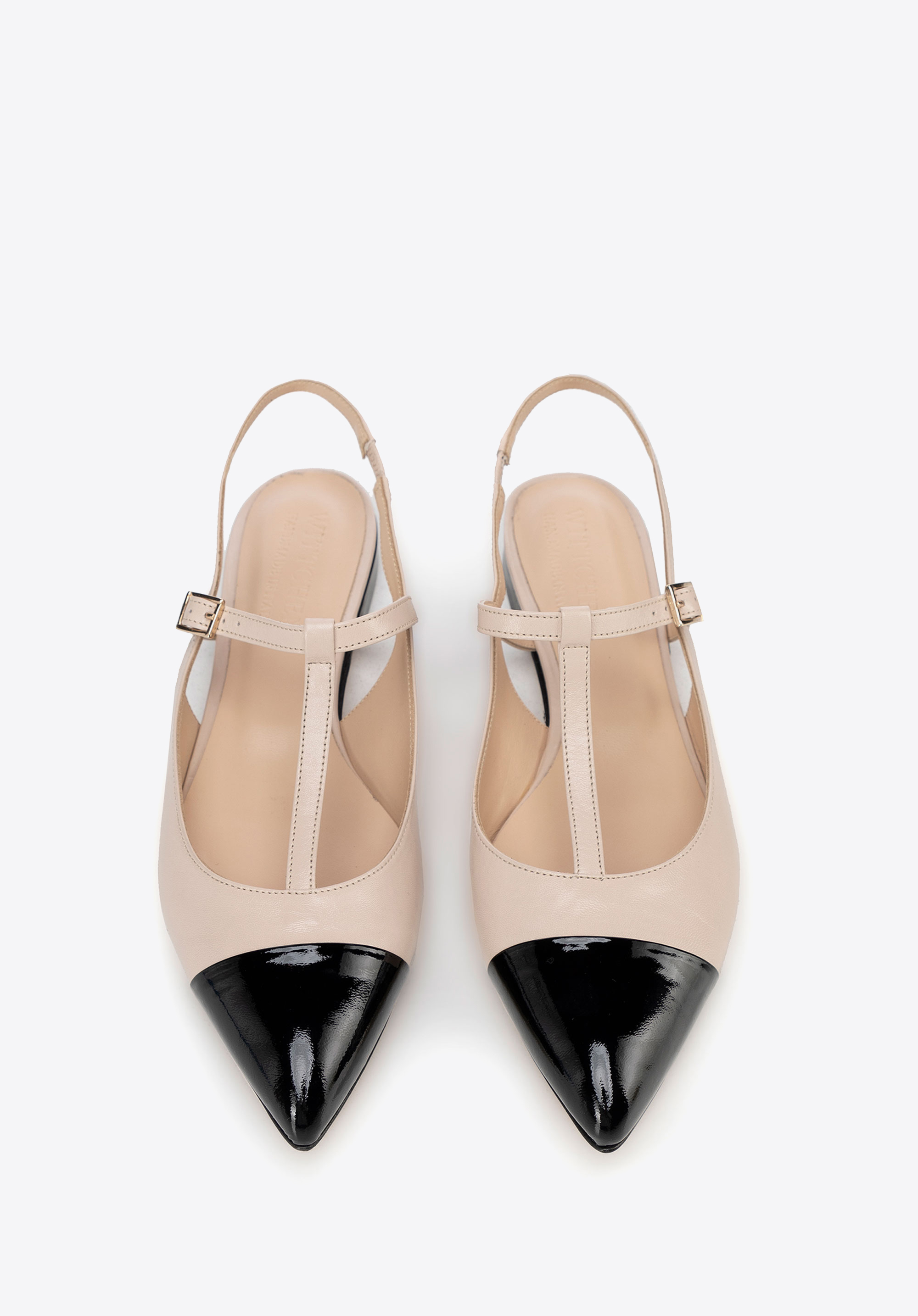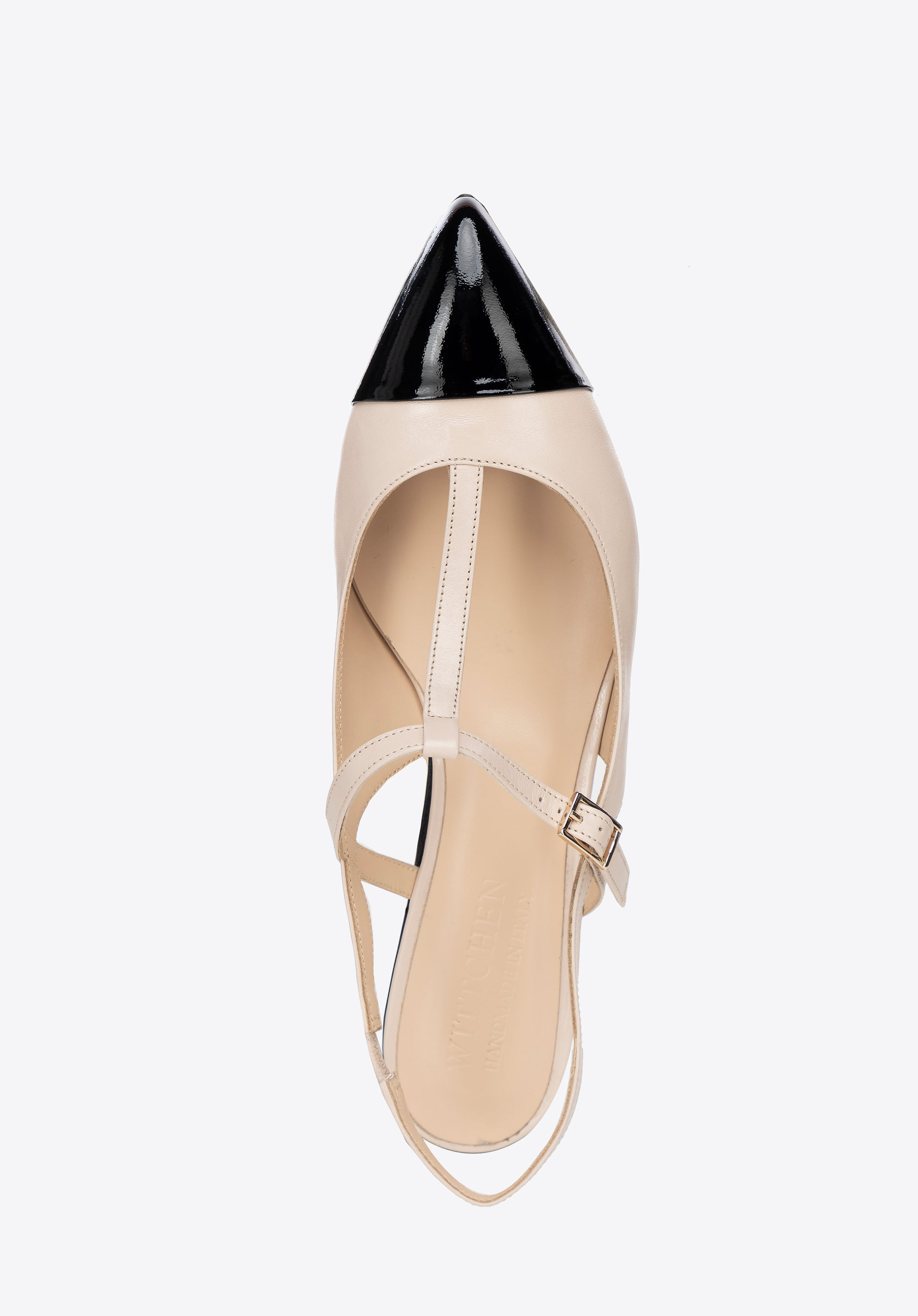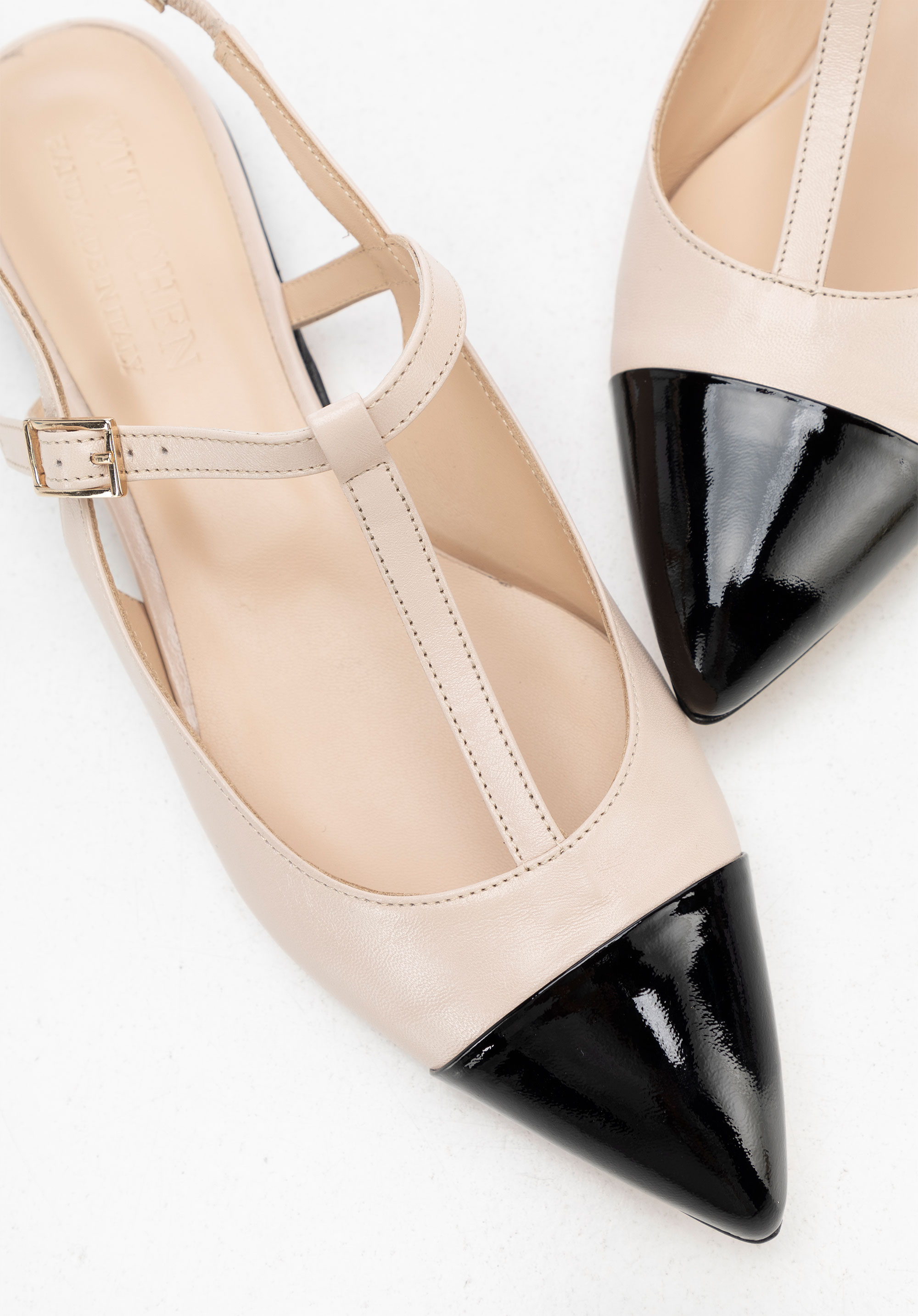 Tieto jedinečné balerínky ina spájajú klasický štýl s moderným nádychom. Vyrobené výhradne z prírodnej kože , ponúkajú vynikajúce pohodlie pri nosení. Kontrast medzi matnou a lakovanou kožou dodáva nádych sofistikovanosti. Špicatá špička vytvára ilúziu dlhších nôh, zatiaľ čo jemné remienky so zapínaním na pracky zaisťujú dokonalé uchytenie. S otvorenou pätou a plochou podrážkou kombinujú eleganciu a pohodlie, ideálne na každodenné nosenie aj špeciálne príležitosti.