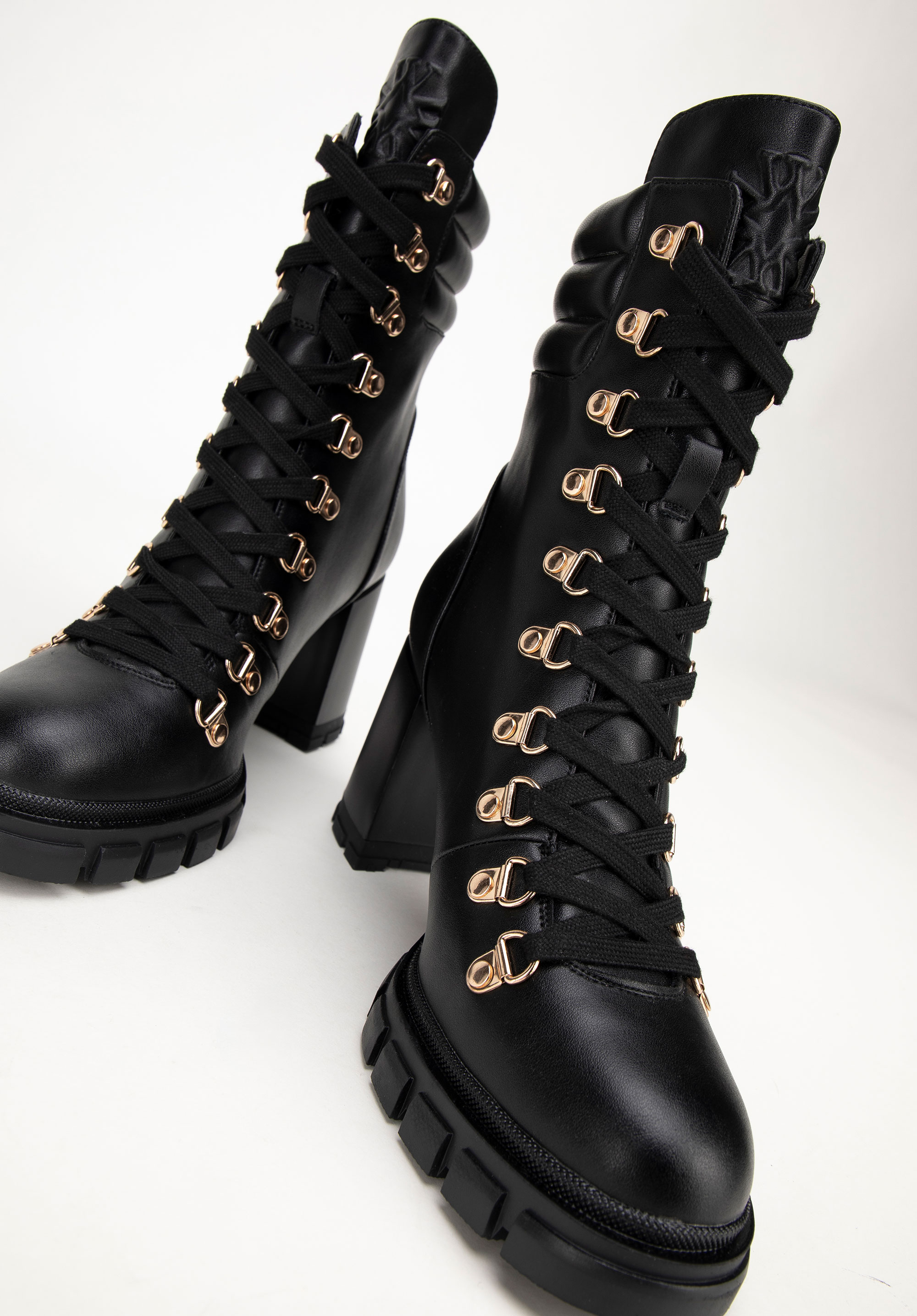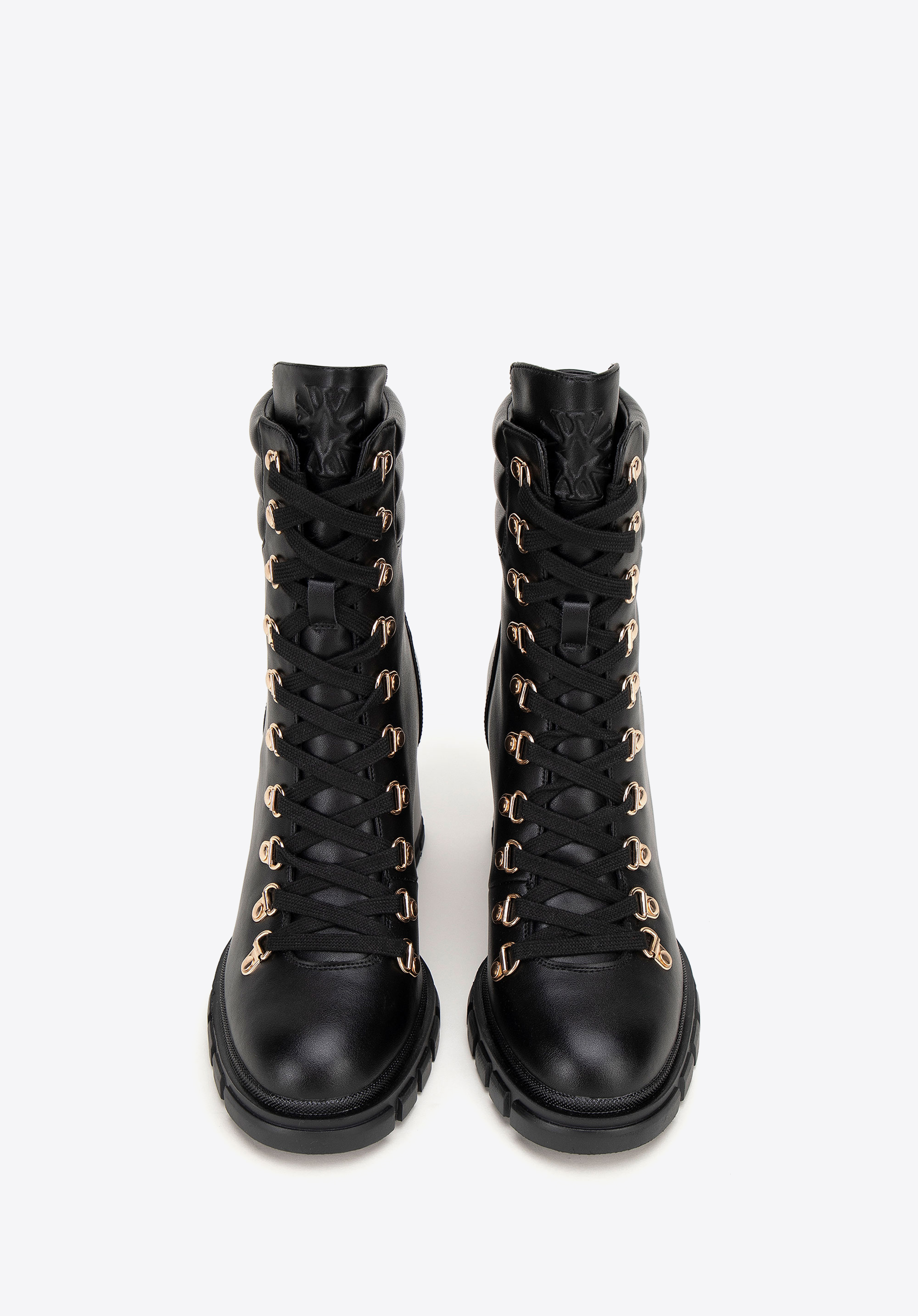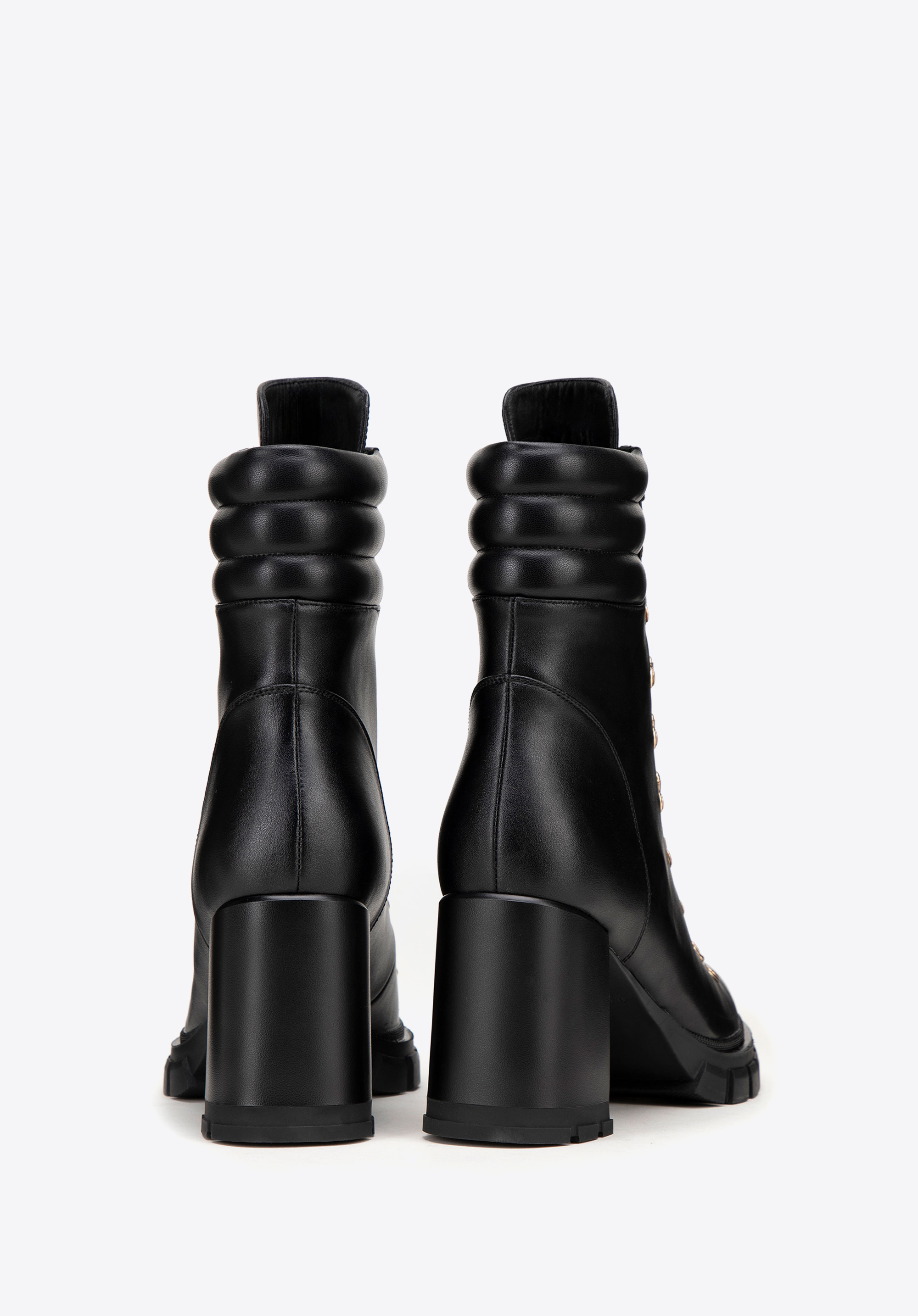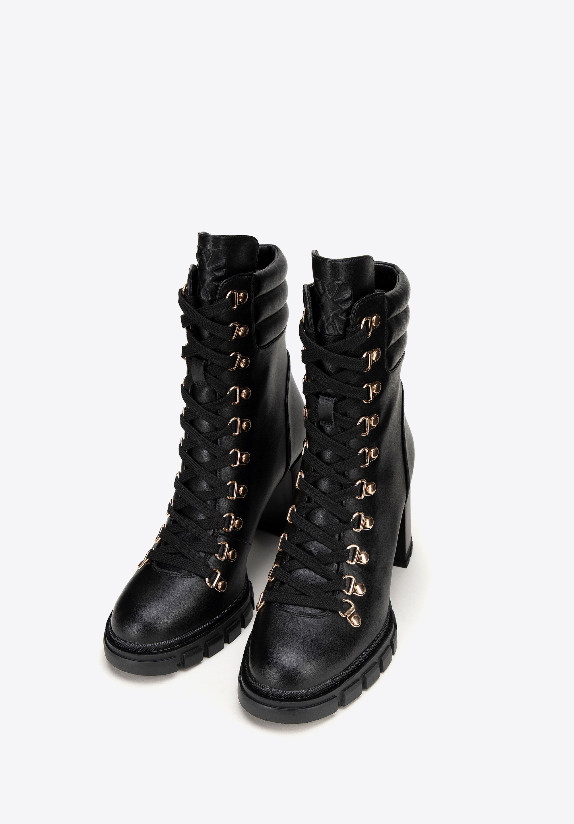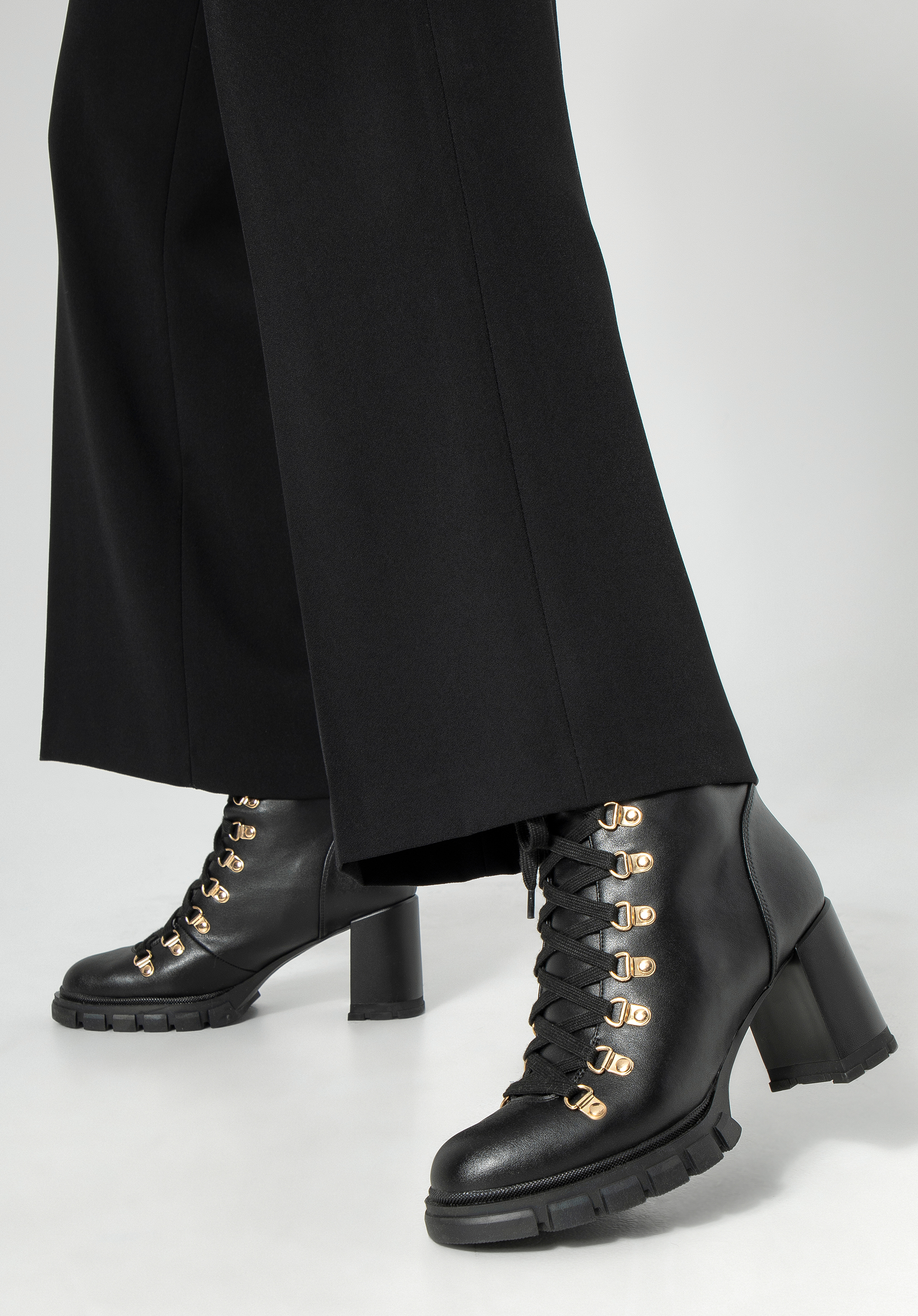 Dámske šnurovacie členkové čižmy s blokovým podpätkom