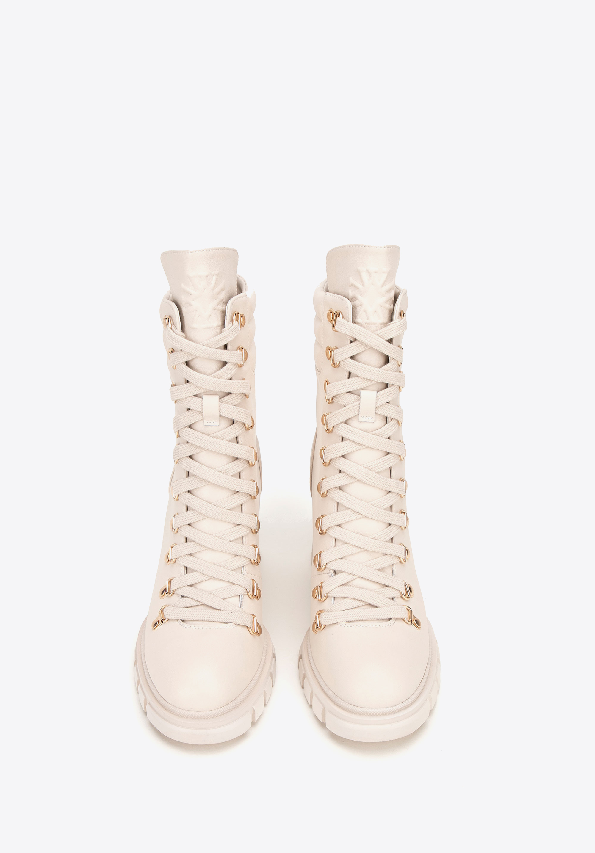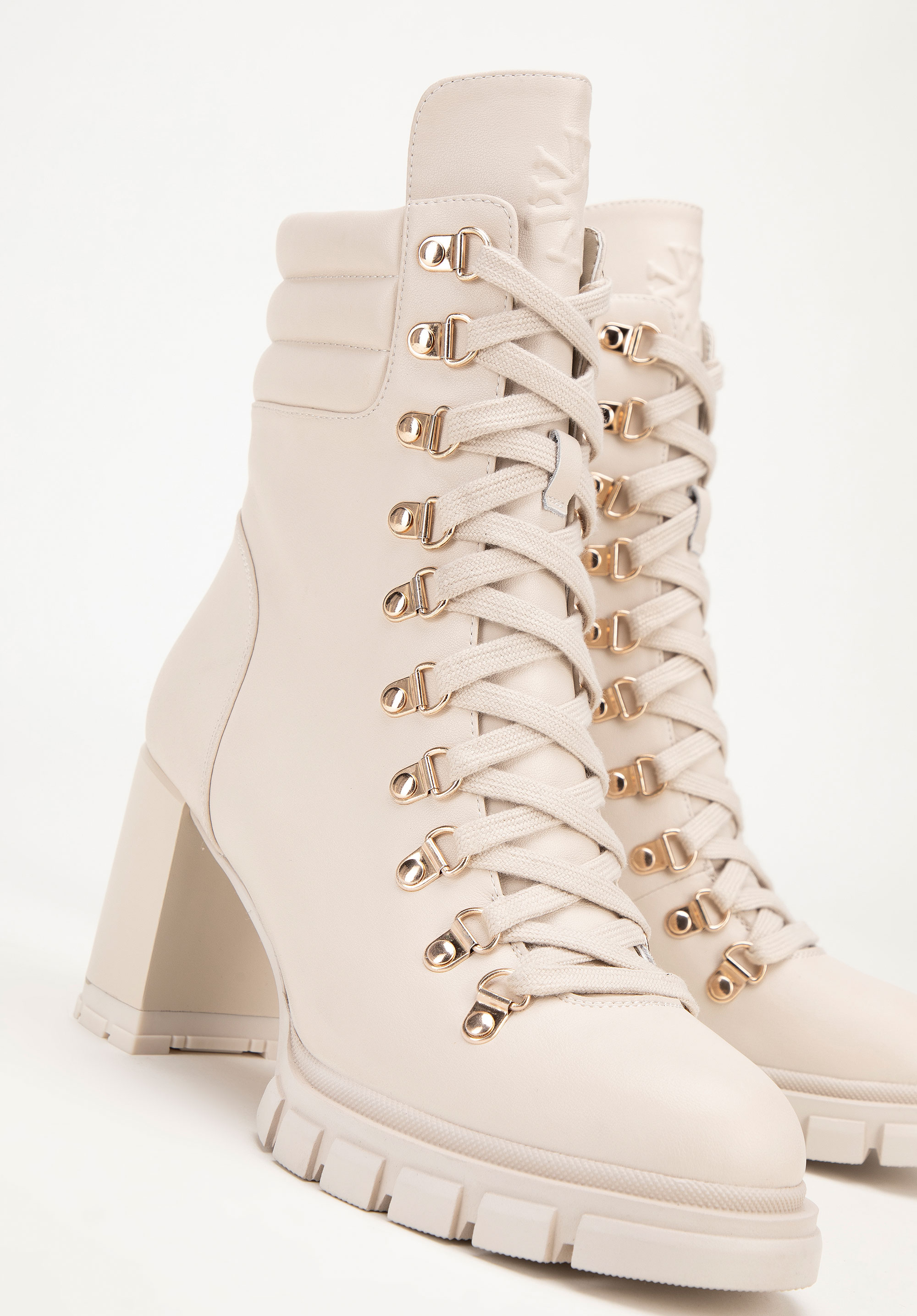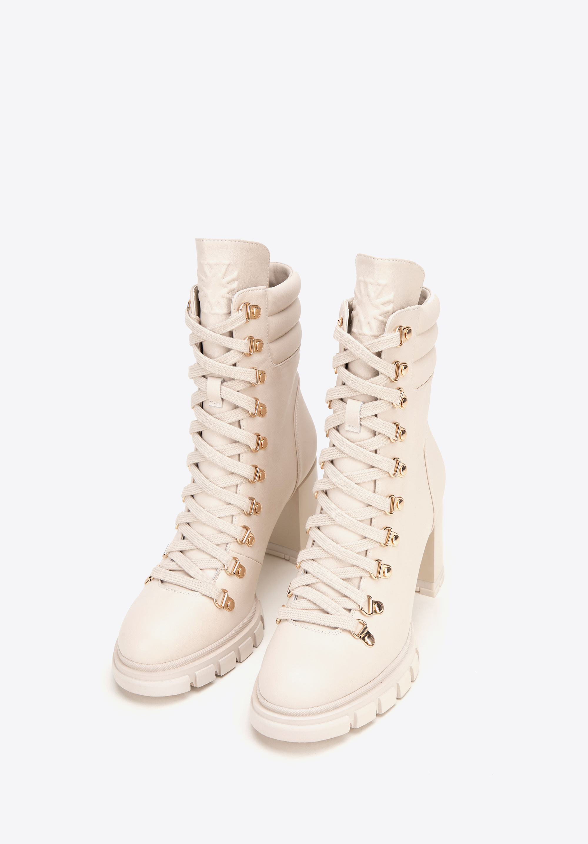 Dámske šnurovacie členkové čižmy s blokovým podpätkom