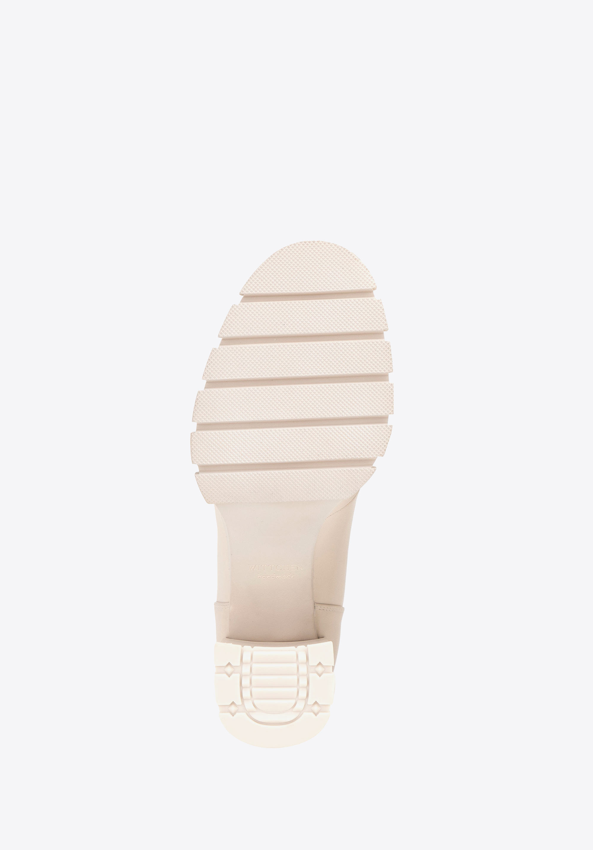 - Podpätok : Vysoký blokový podpätok zaisťuje pohodlie aj pri dlhšom nosení.