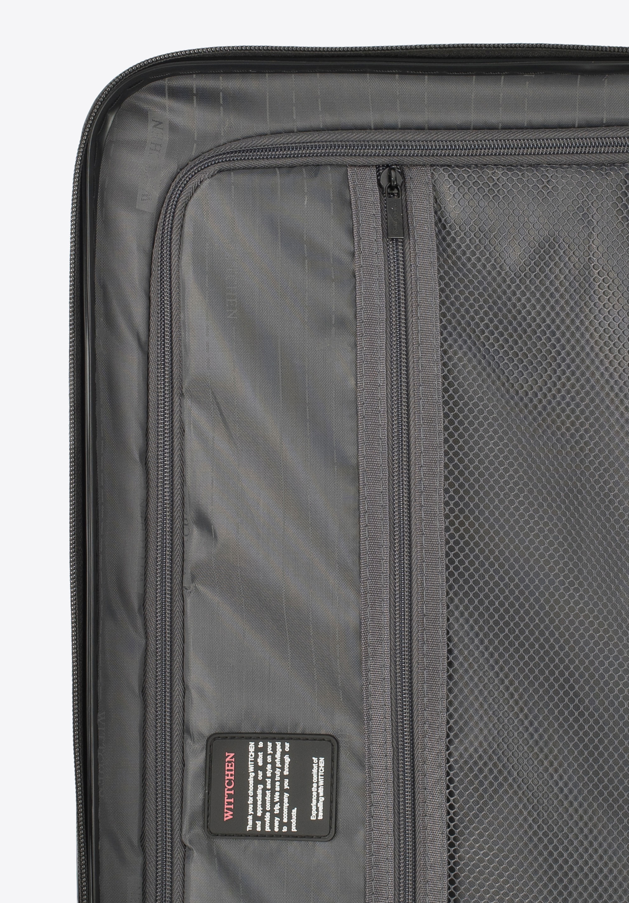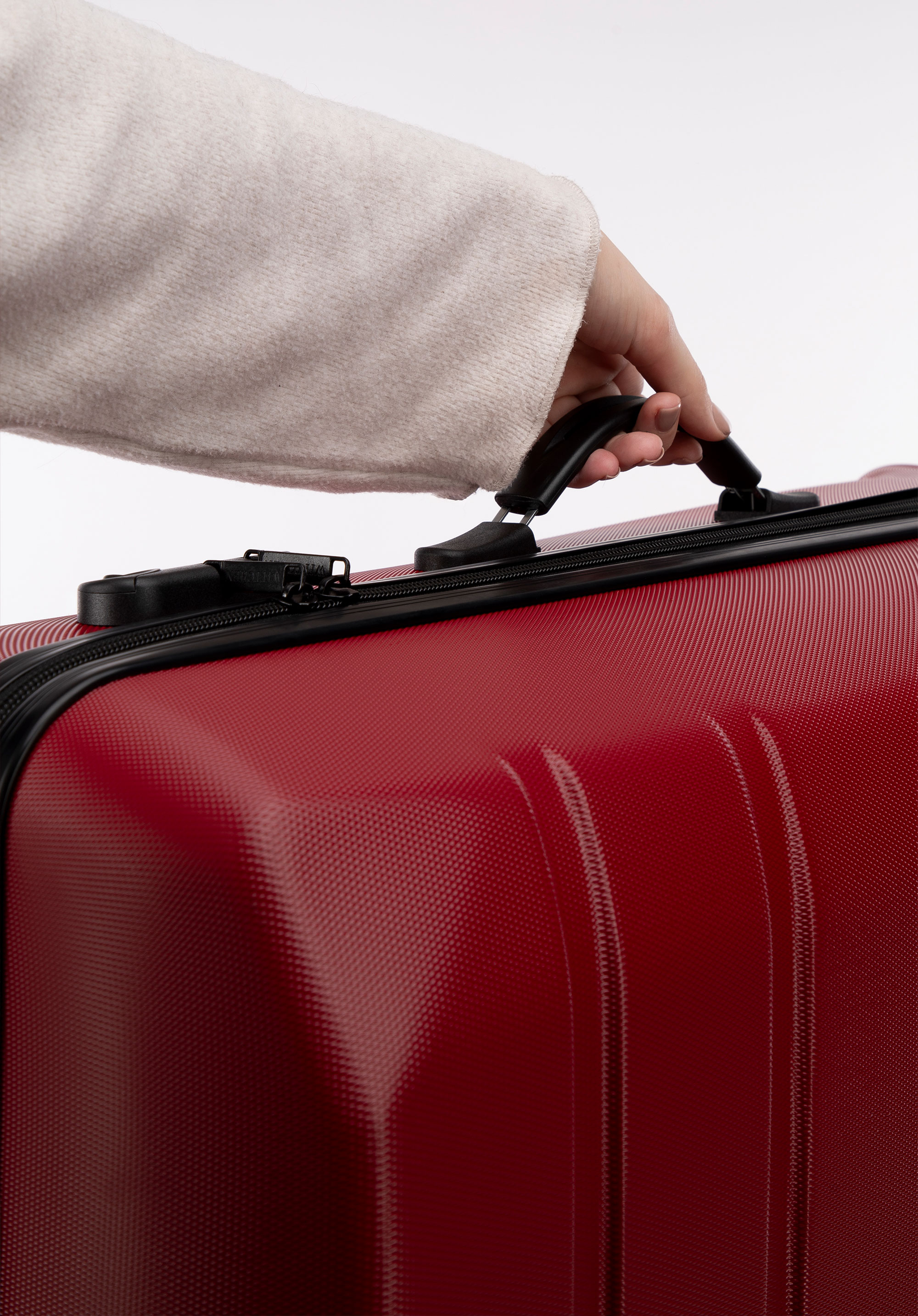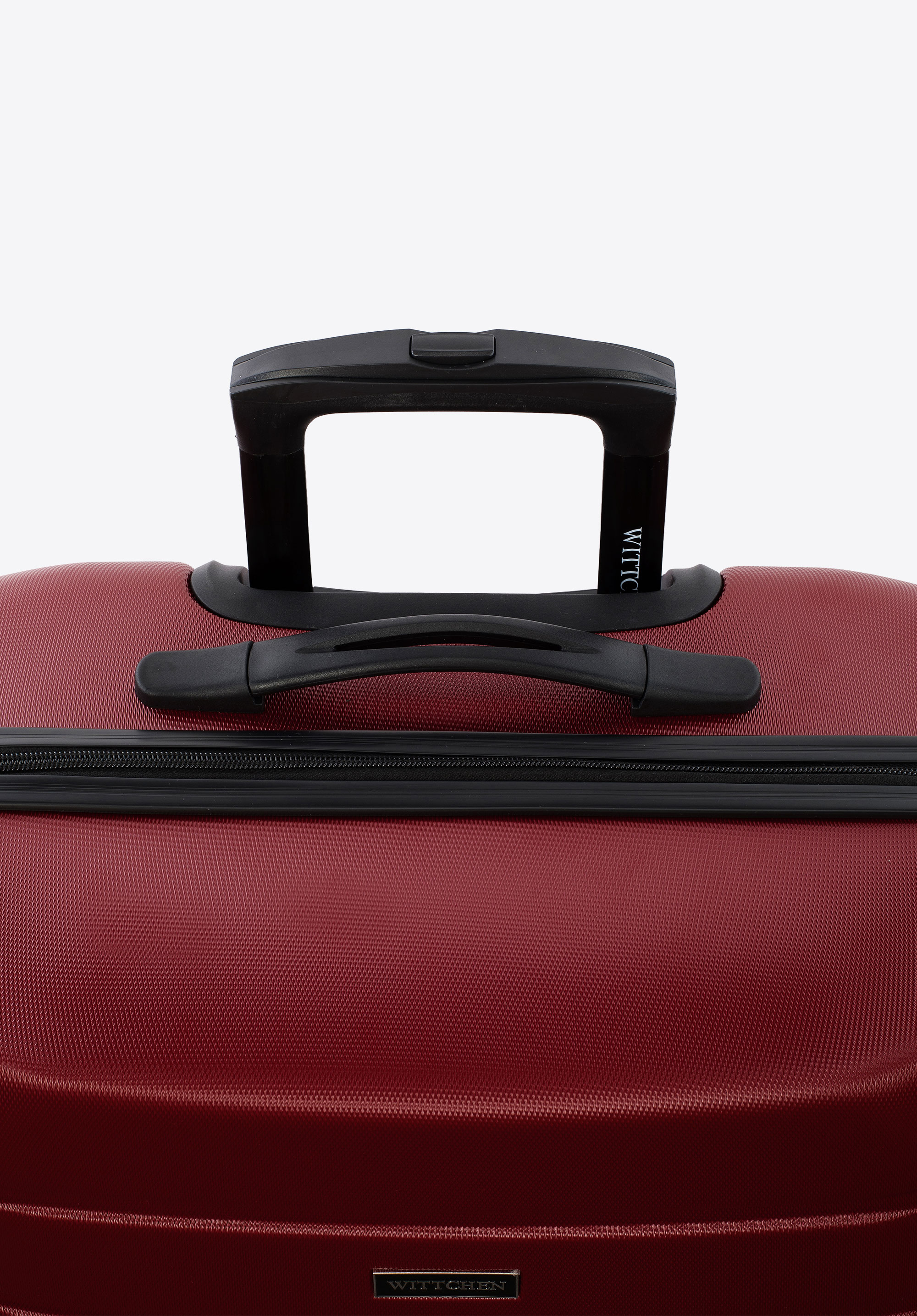 Hliníková teleskopická výsuvná rukoväť a dve gumené rukoväte uľahčujú prenášanie kufra. Vertikálne reliéfy dodávajú kufru zaujímavý vzhľad.