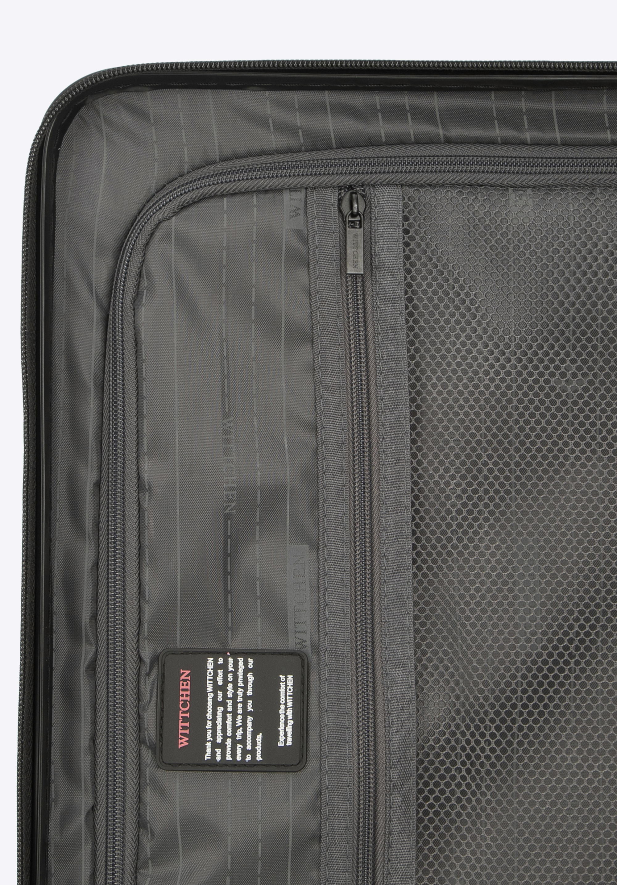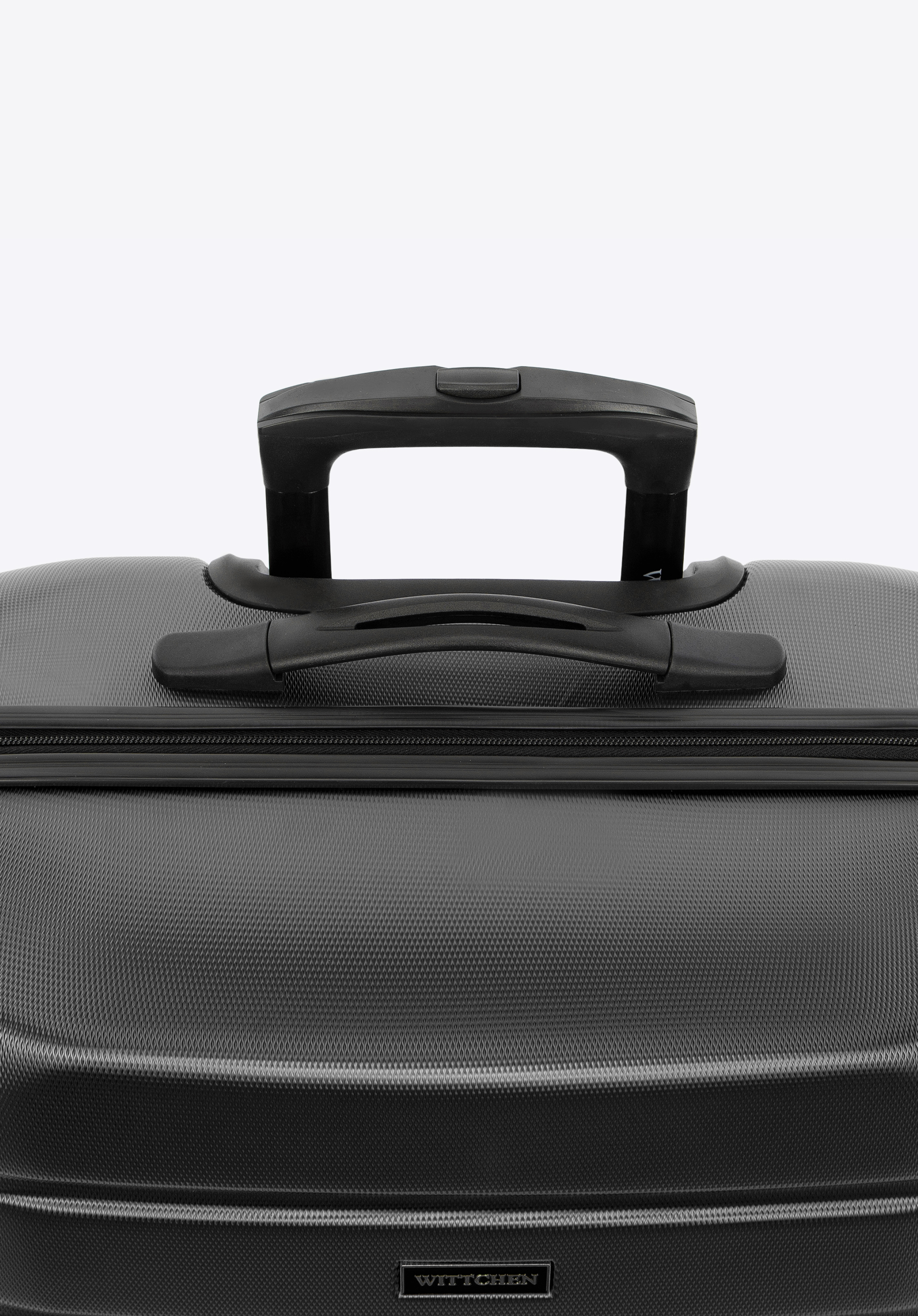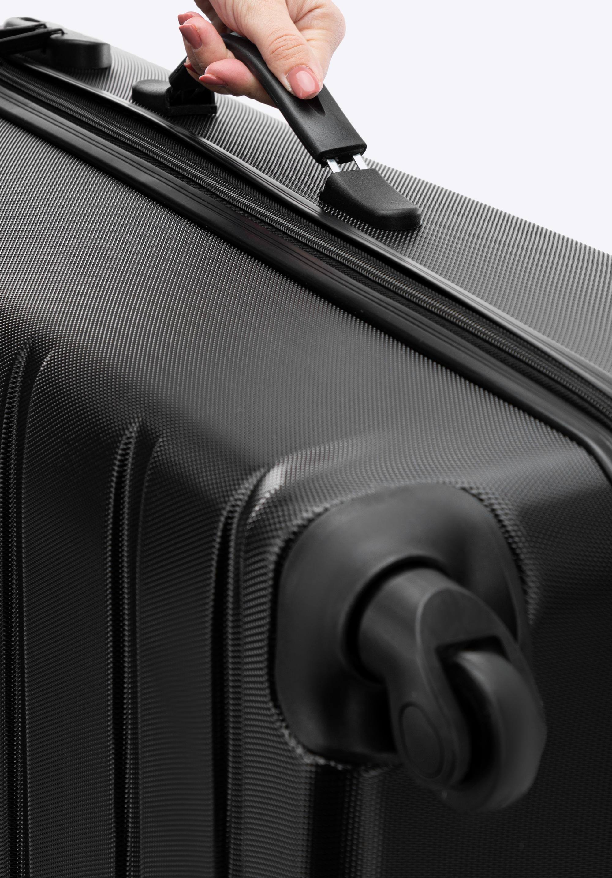 Hliníková teleskopická výsuvná rukoväť a dve gumené rukoväte uľahčujú prenášanie kufra. Vertikálne reliéfy dodávajú kufru zaujímavý vzhľad.