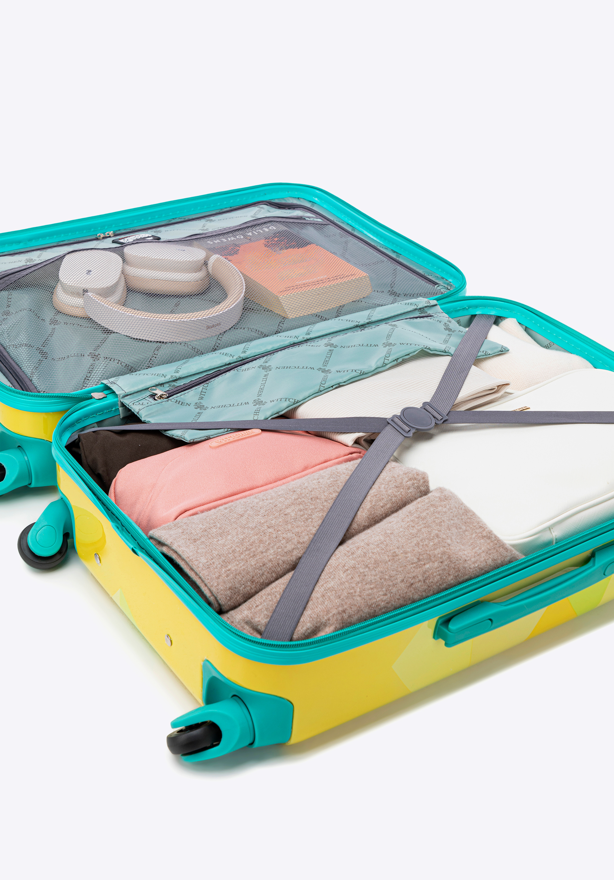 Veľký kufor ABS s potlačou žltý