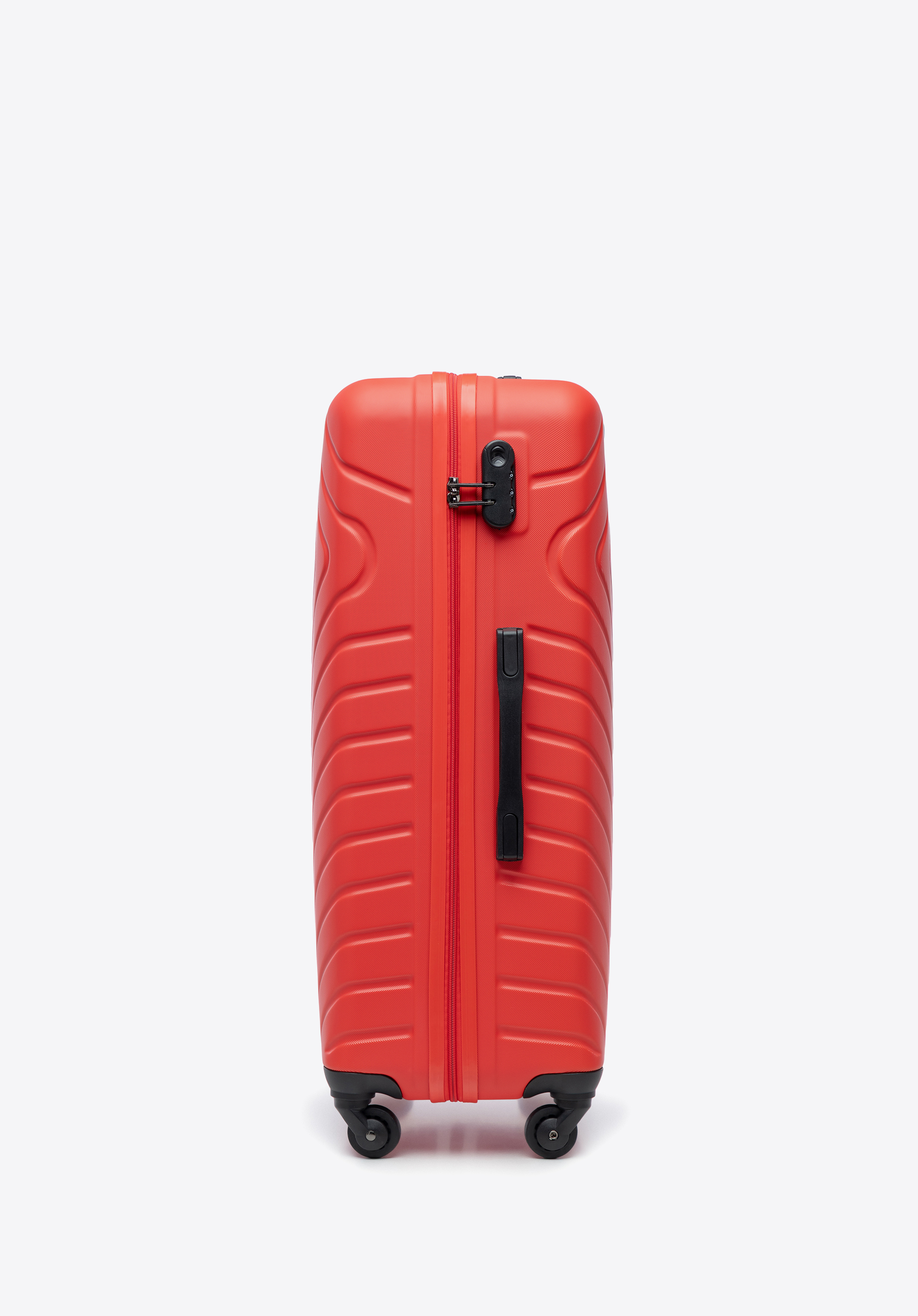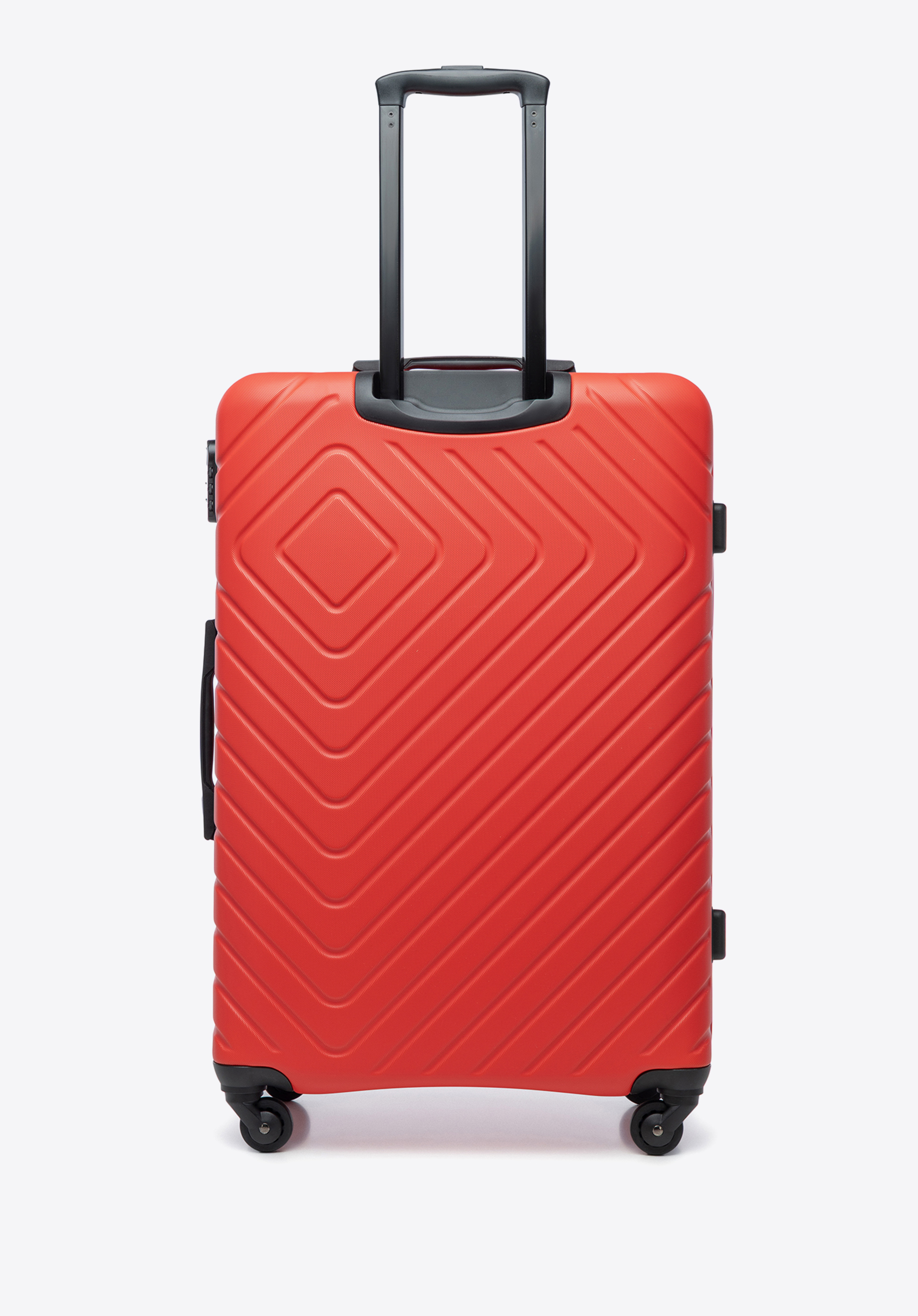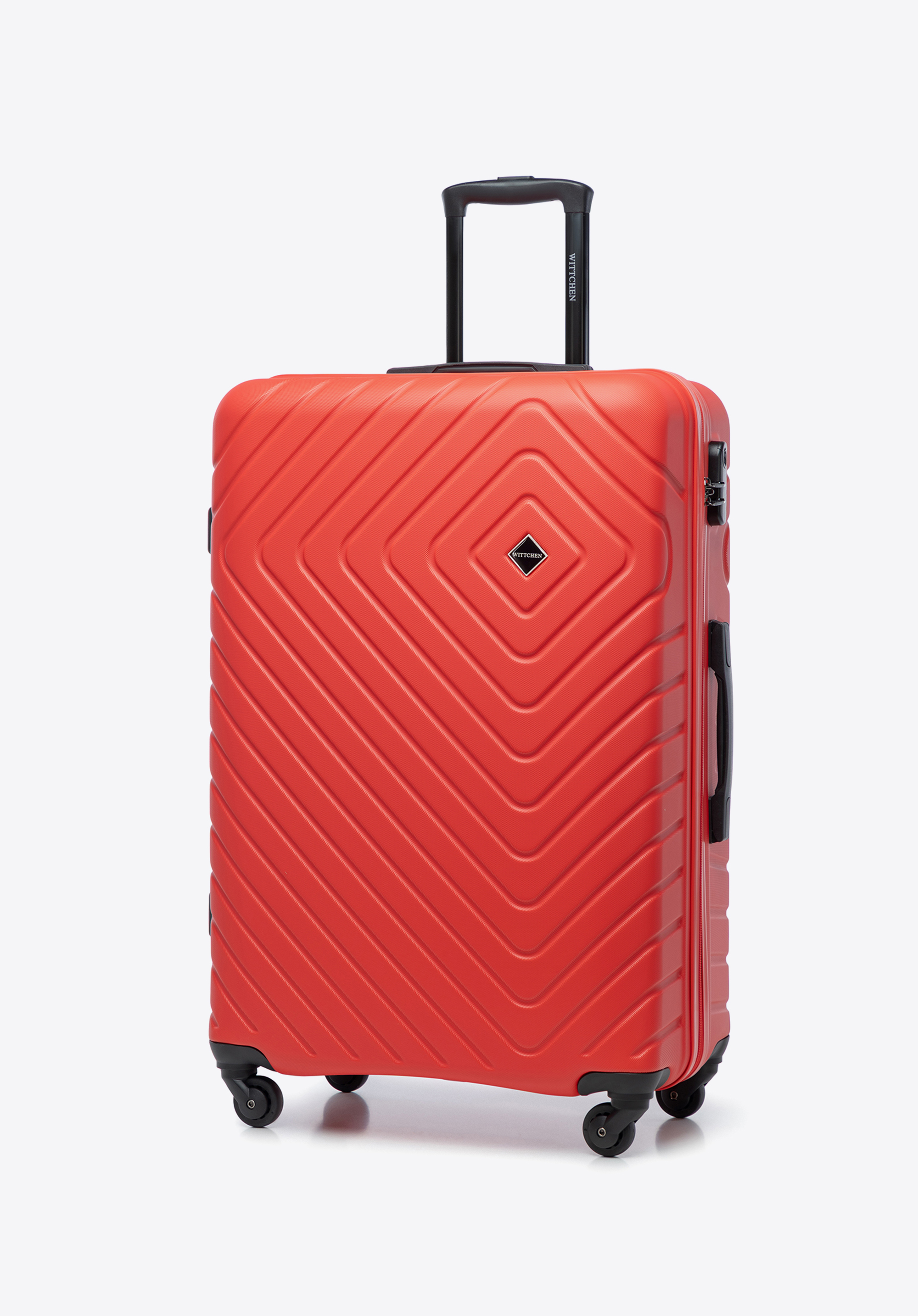 Veľký kuforz ABS s geometrickým reliéfom je skvelou voľbou pre nejednu dlhú cestu na dovolenku.