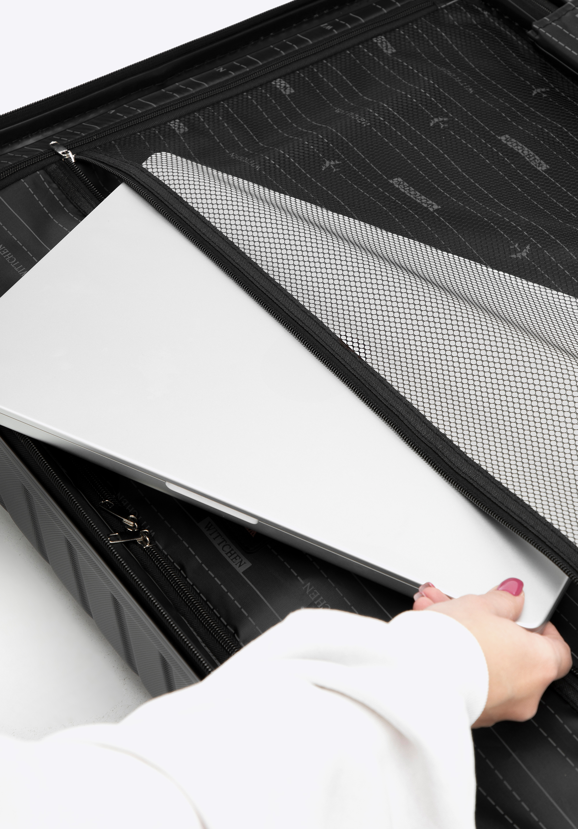 - hlavný priestor s elastickými popruhmi so zapínaním na patentku ktoré zabraňujú premiestňovaniu oblečenia;