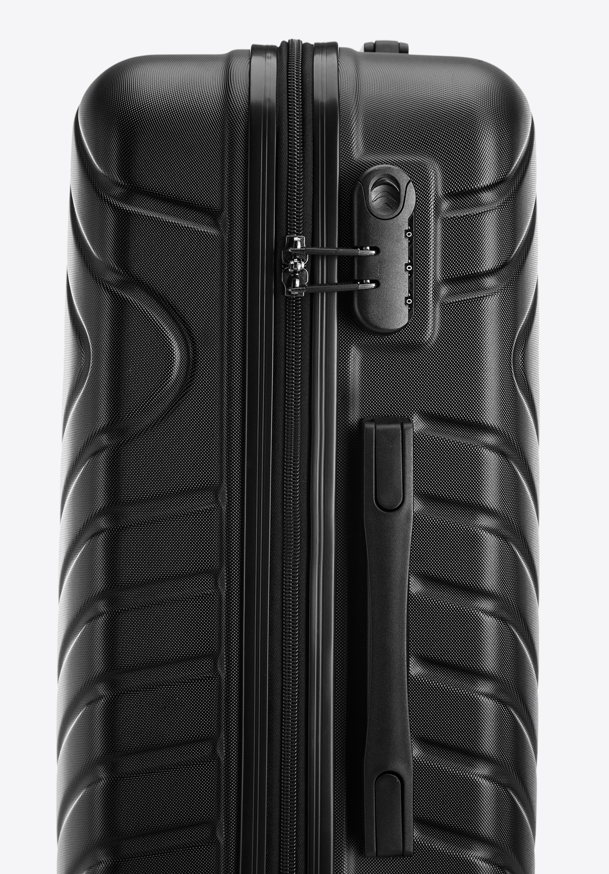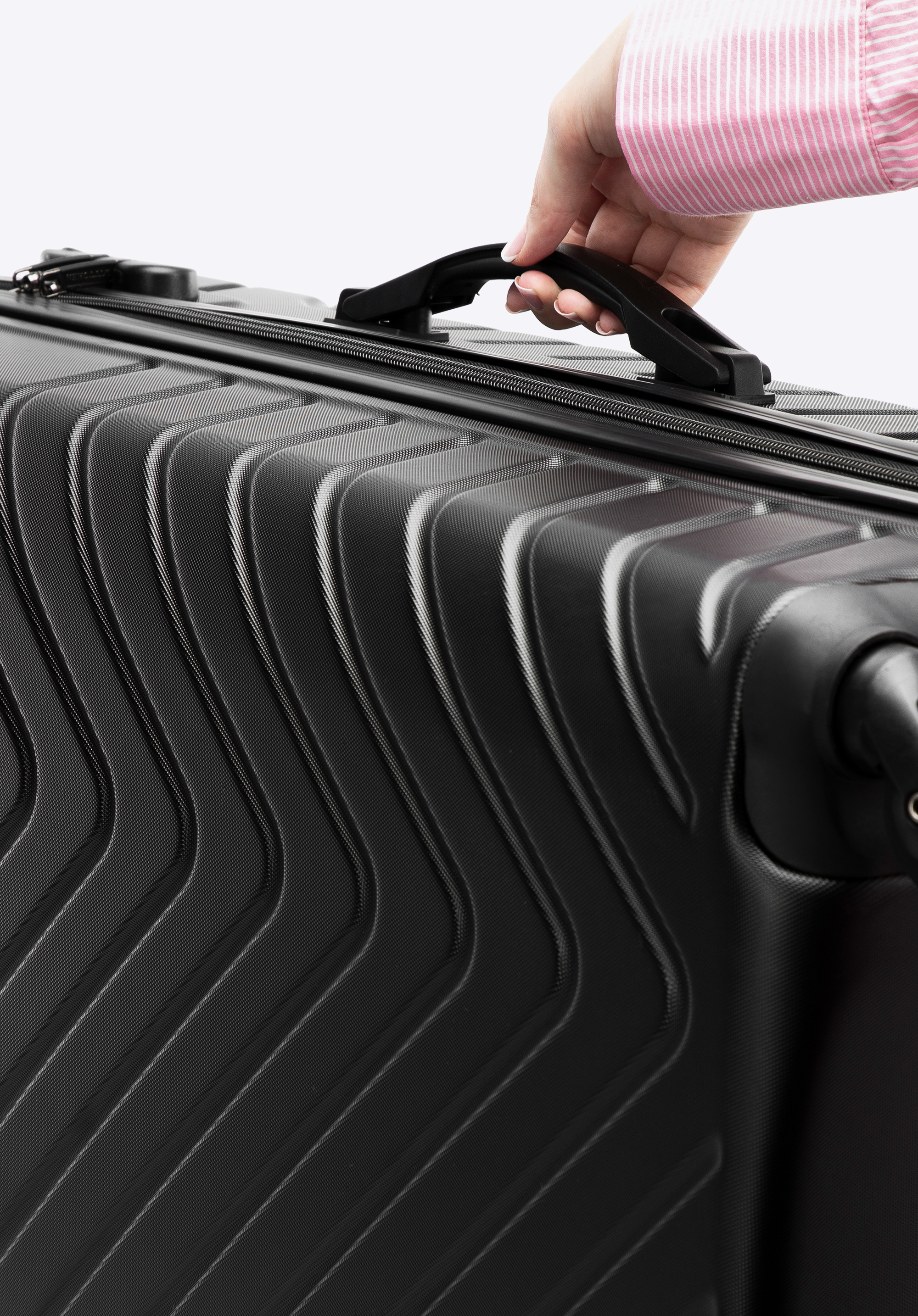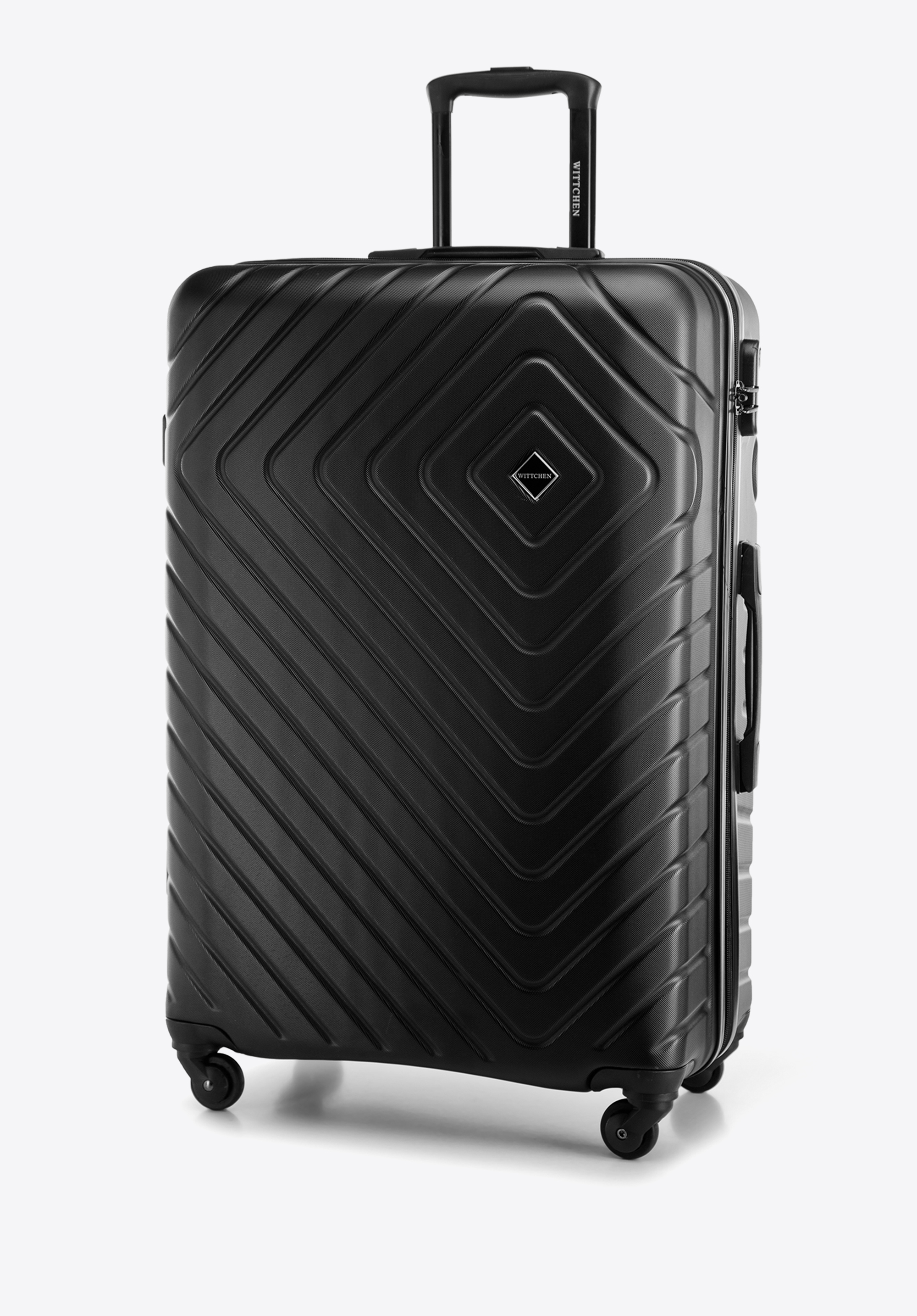 Veľký kuforz ABS s geometrickým reliéfom je skvelou voľbou pre nejednu dlhú cestu na dovolenku.