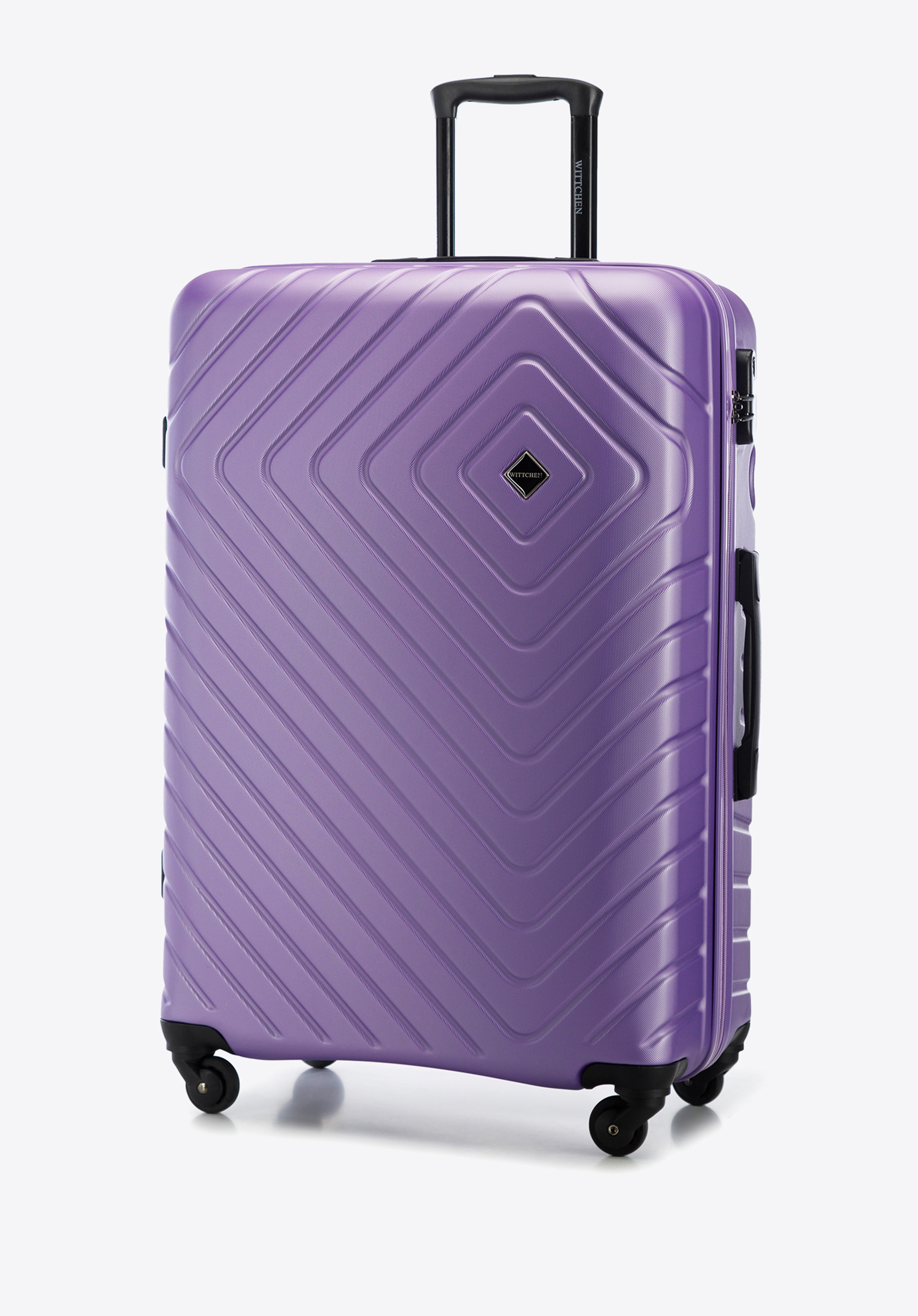 Veľký kuforz ABS s geometrickým reliéfom je skvelou voľbou pre nejednu dlhú cestu na dovolenku.
