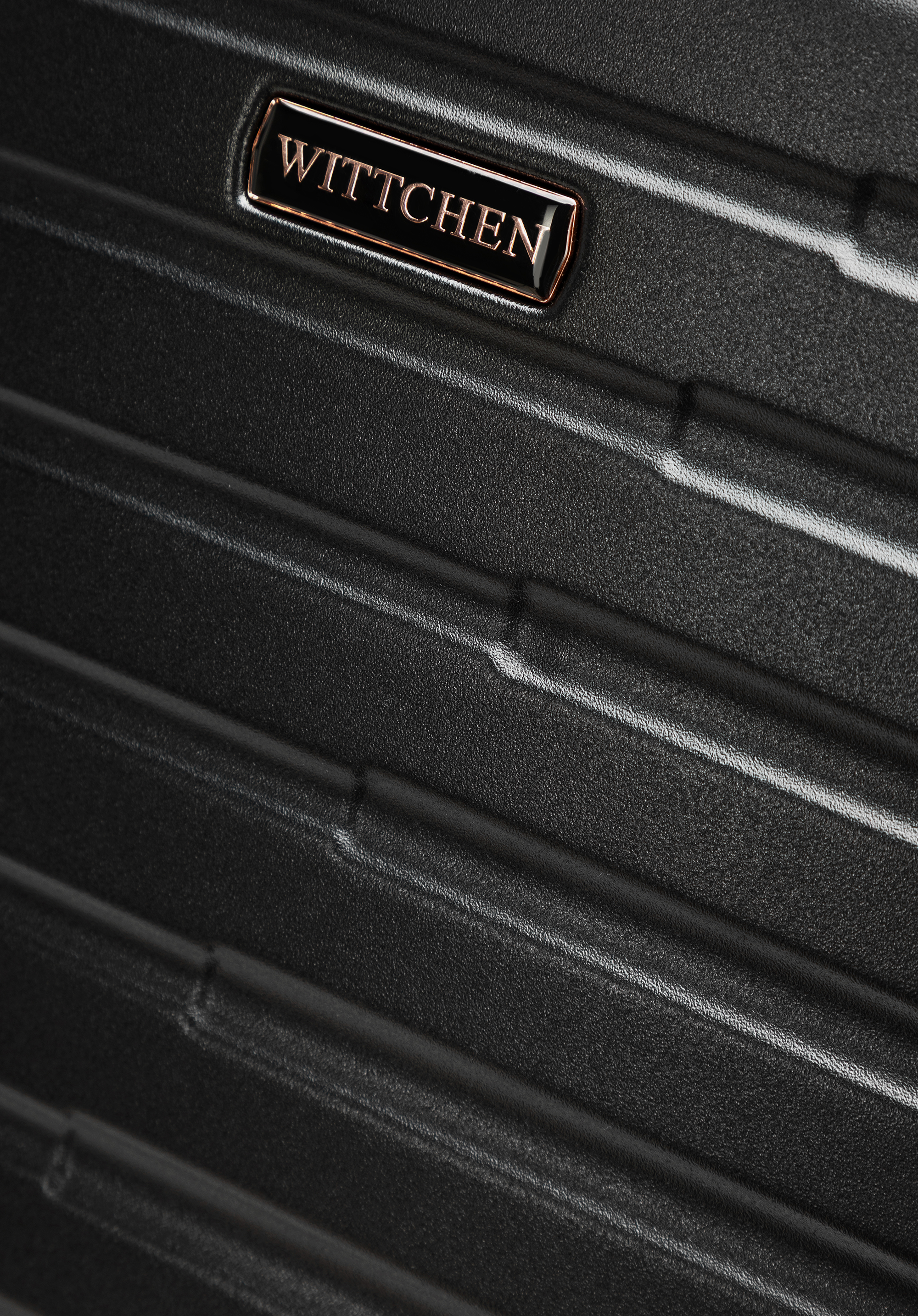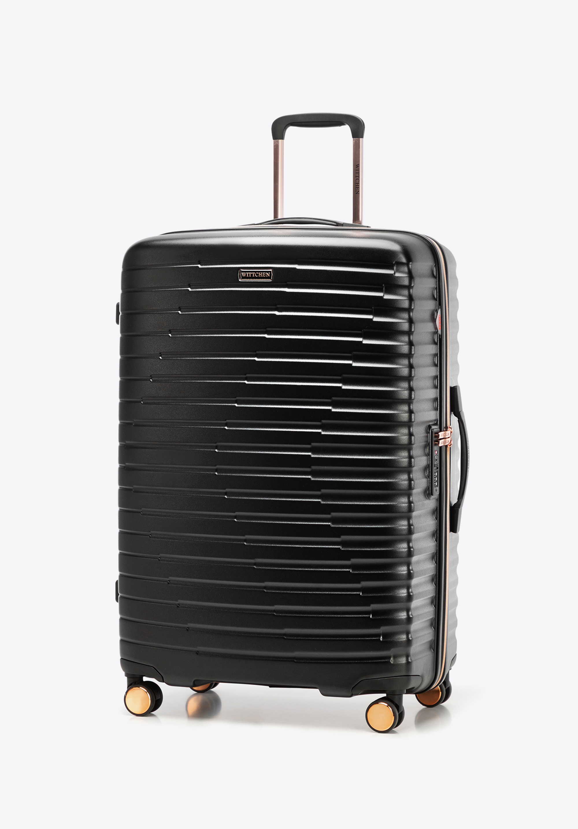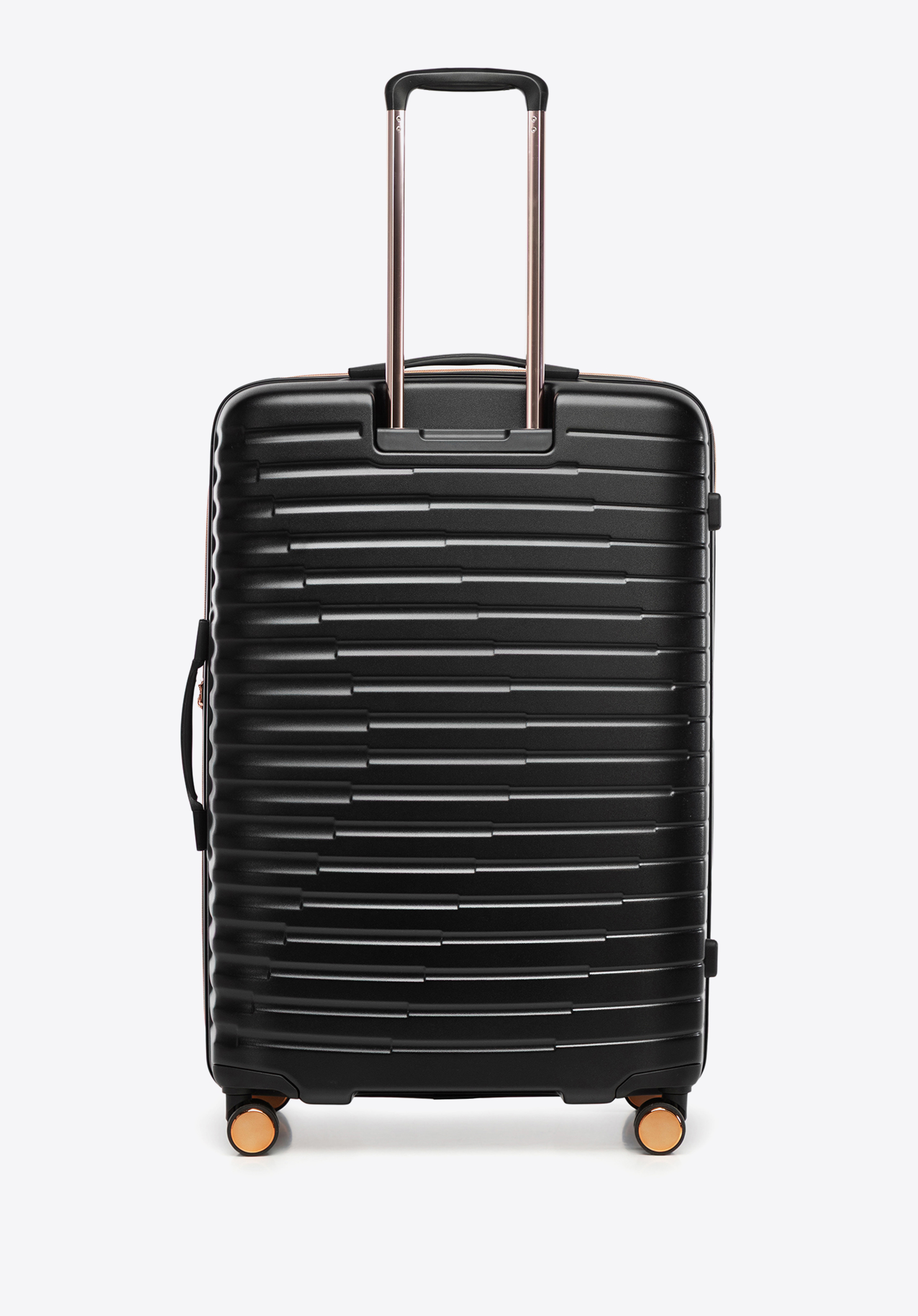 Veľký kufor z polykarbonátu s vodorovným rebrovaním Farba: čierno-zlatá