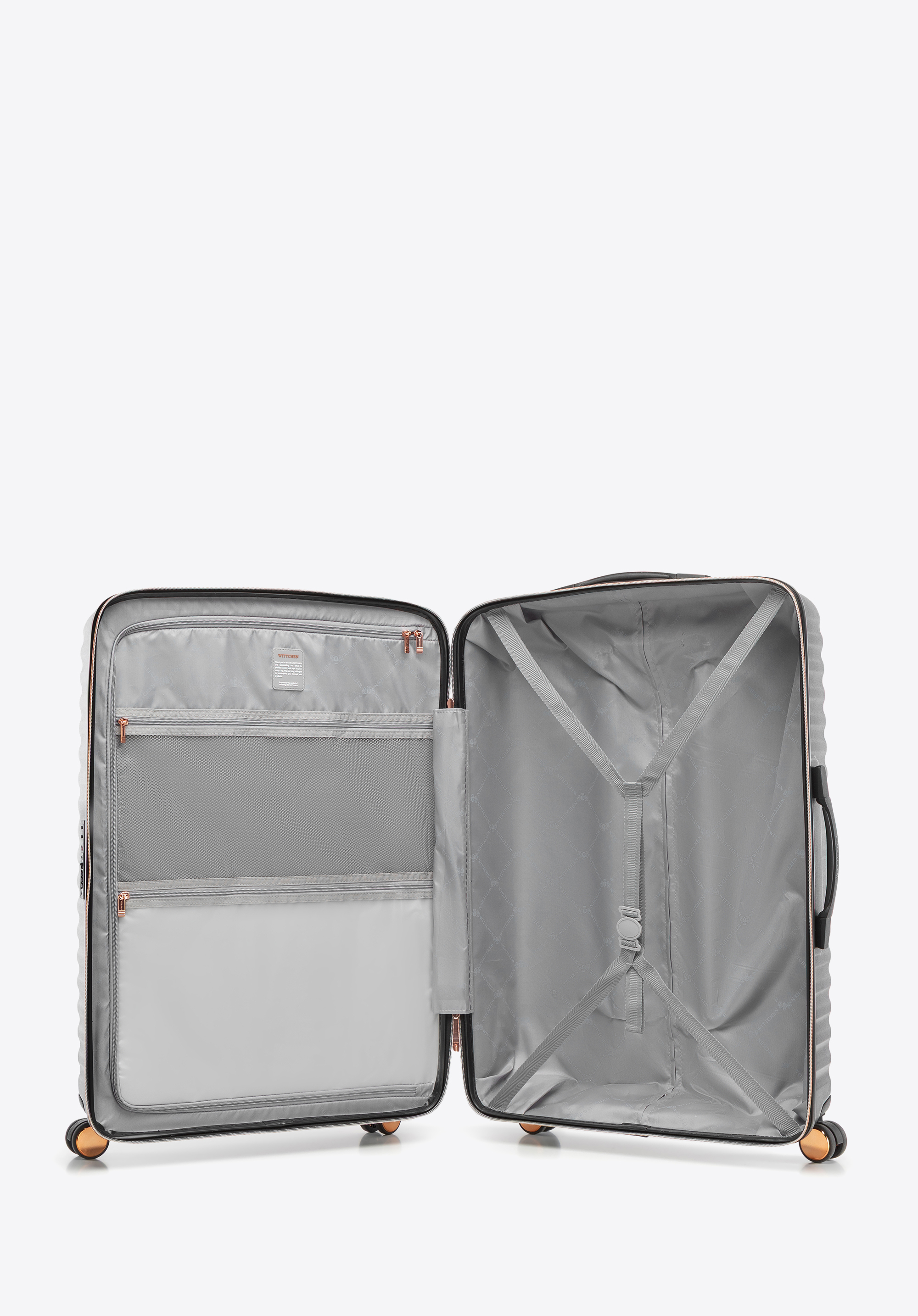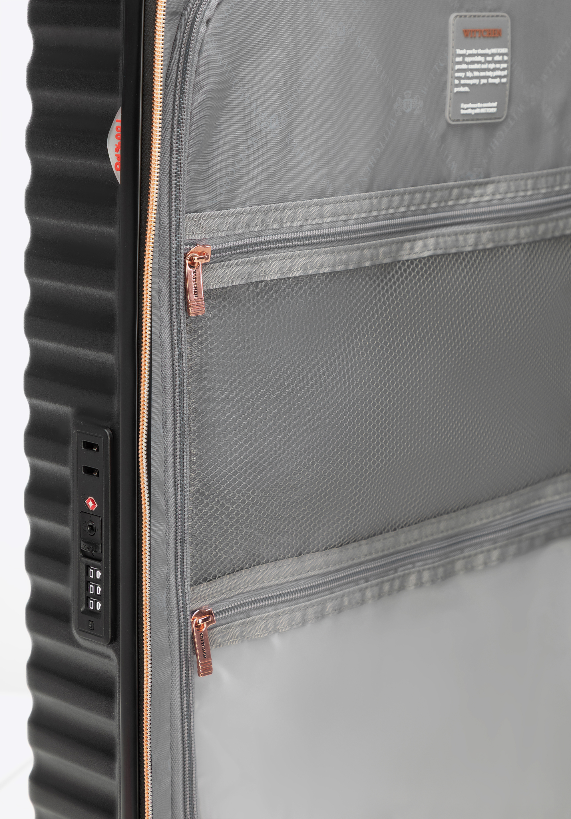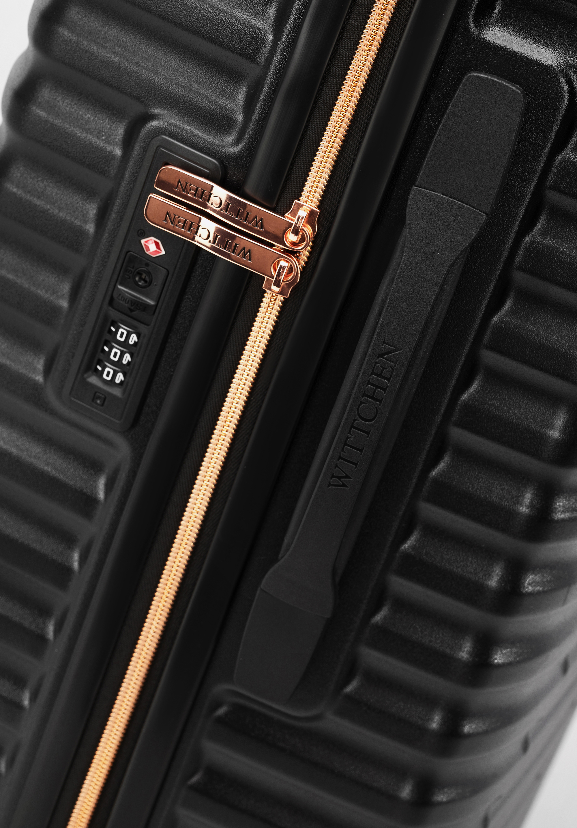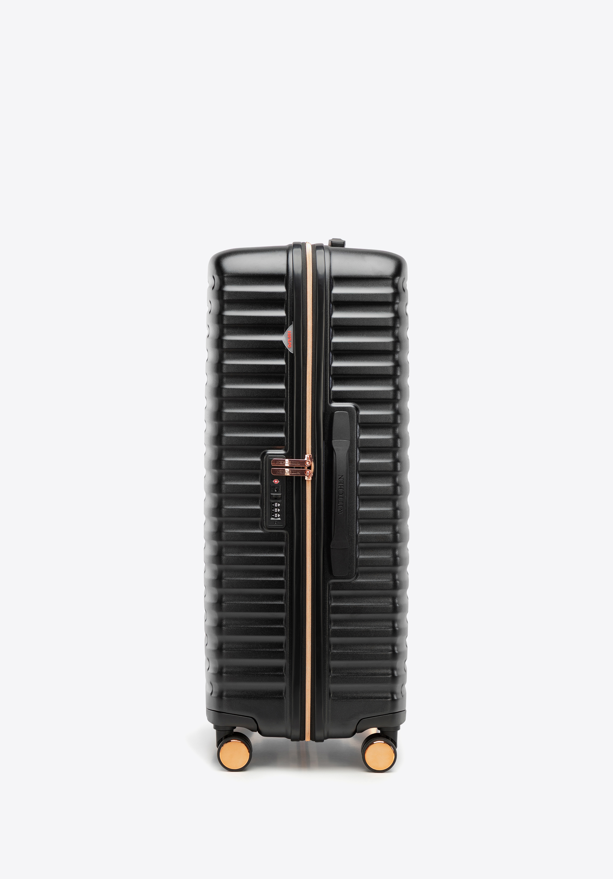 Veľký kufor z polykarbonátu s vodorovným rebrovaním Farba: čierno-zlatá
