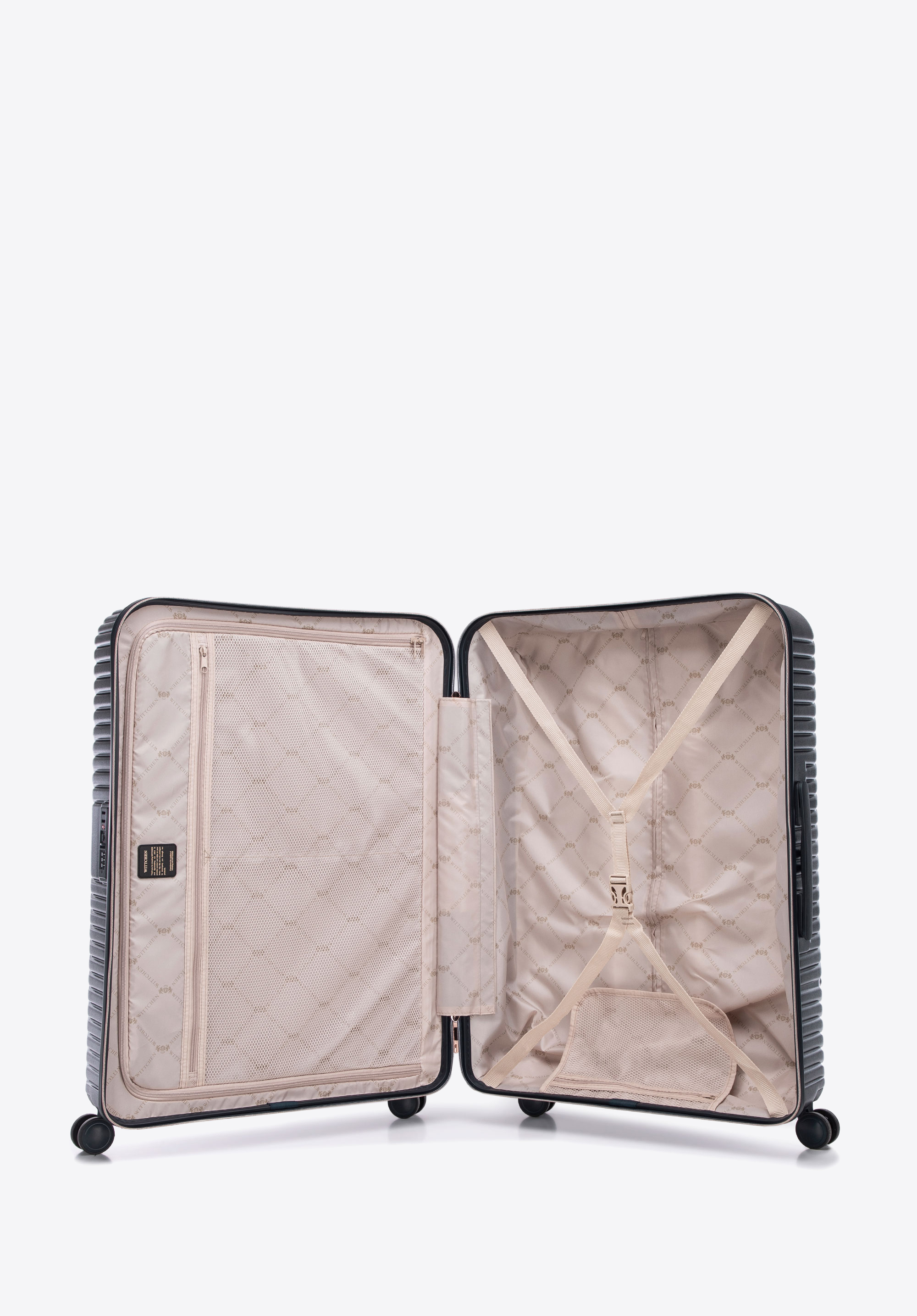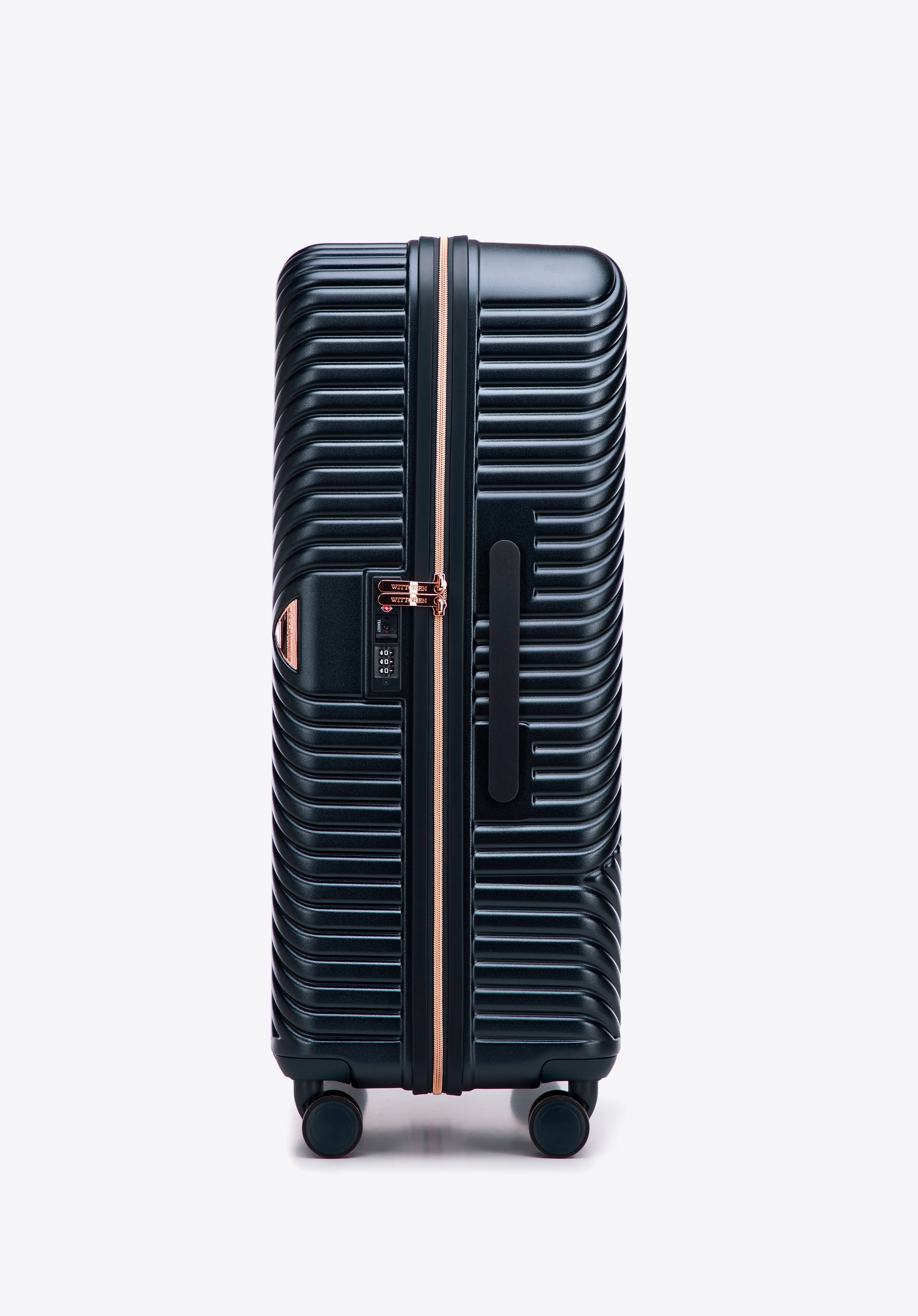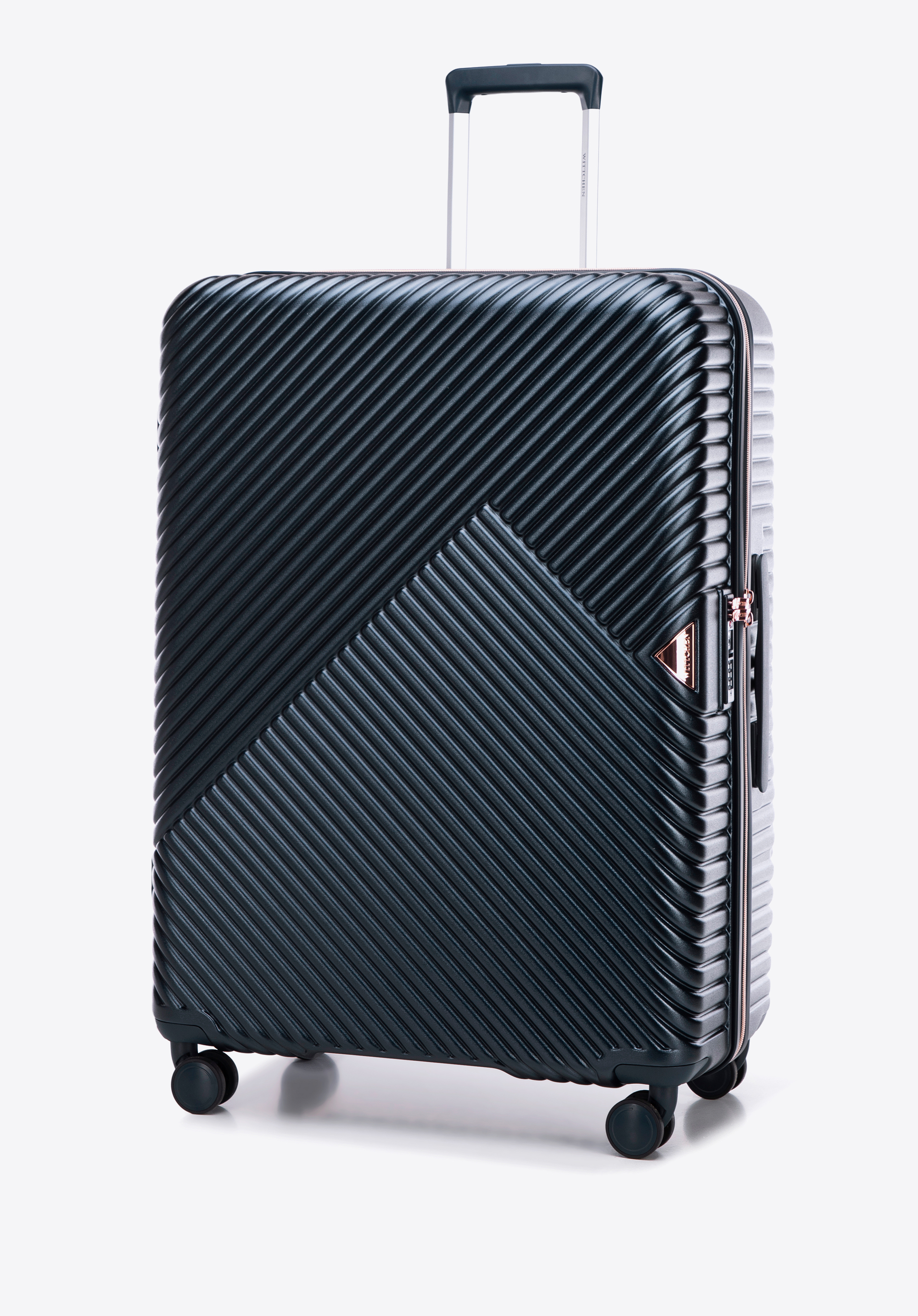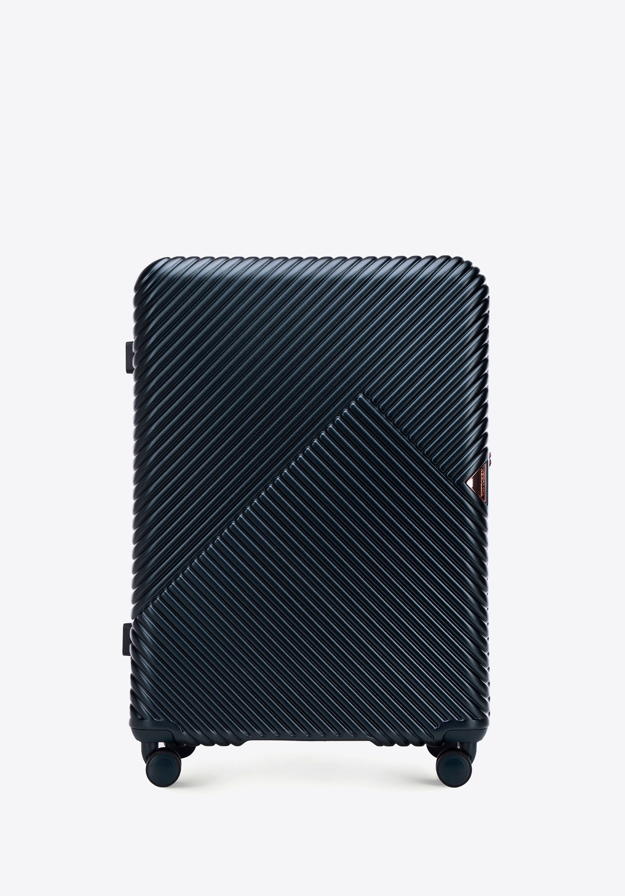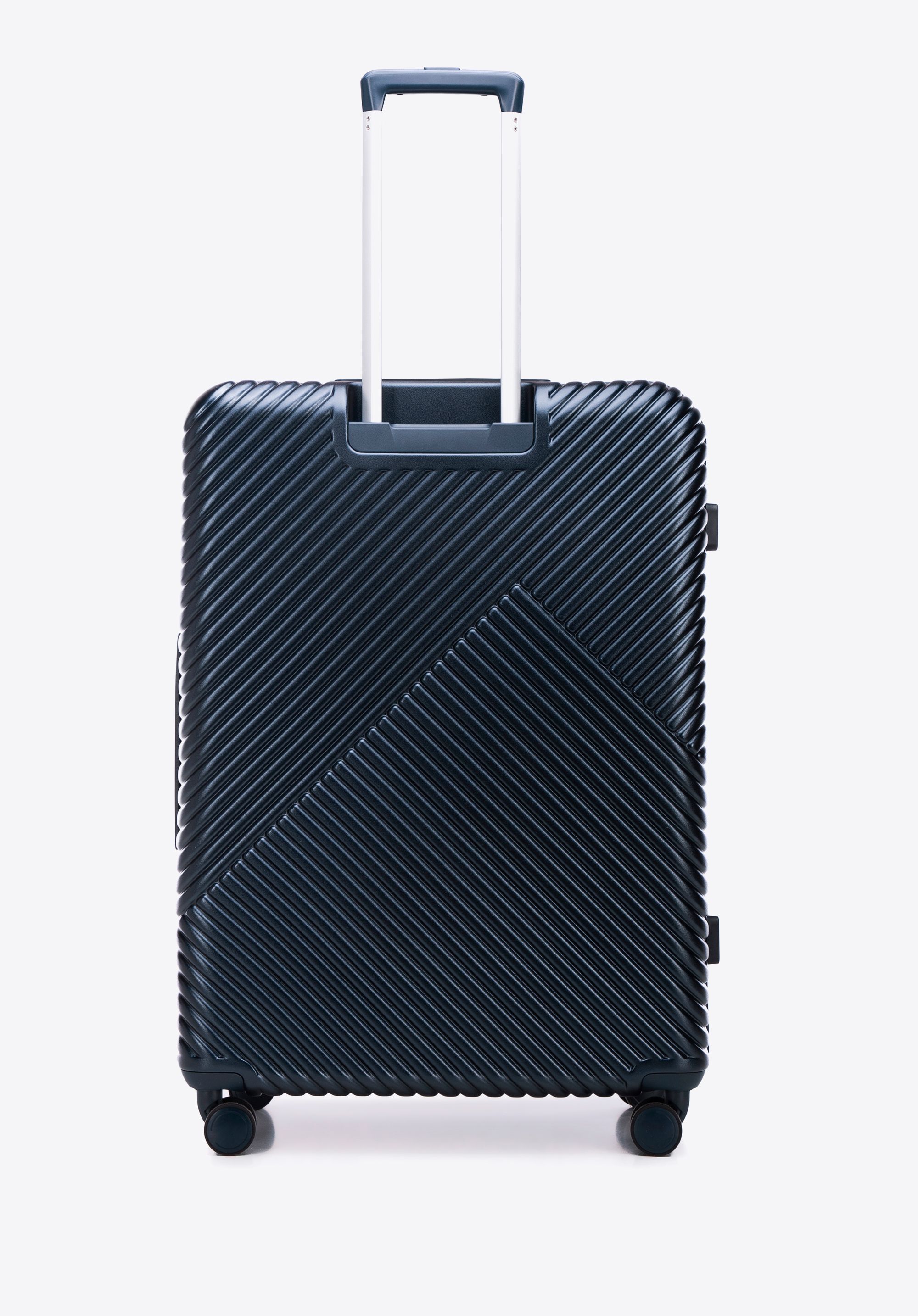 Veľký polykarbonátový kufor s prúžkami tmavomodrý