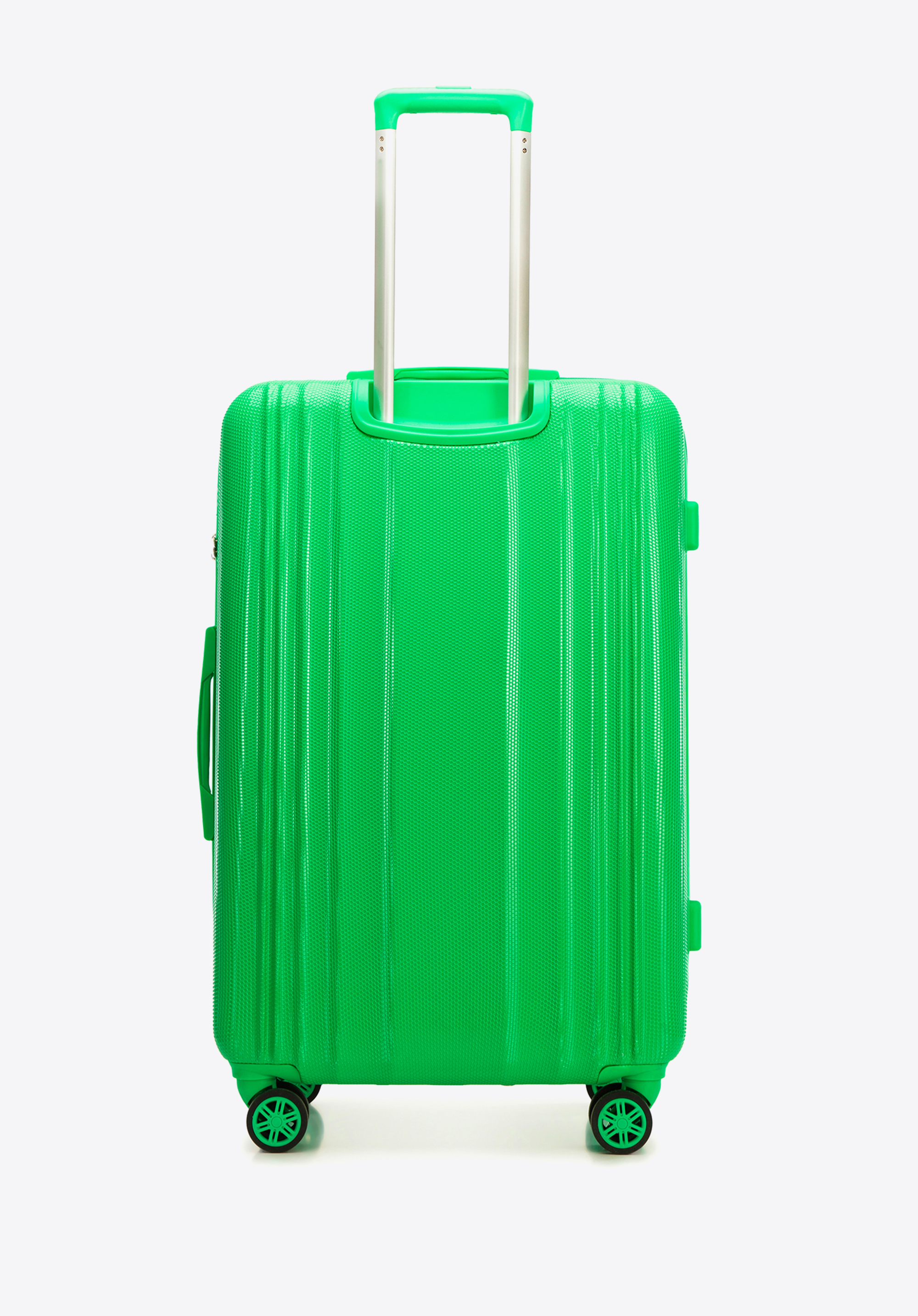 - Estetika: Vďaka vertikálnemu reliéfu a textúre kufor vynikne v dave. Zipsová páska zodpovedá farbe škrupiny kufra.