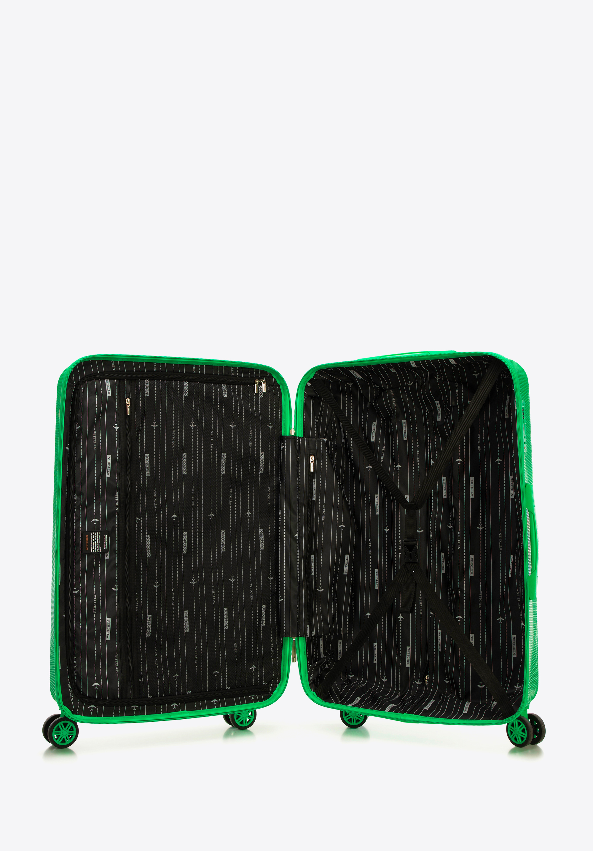 - Trvanlivosť: Polykarbonát, z ktorého je kufor vyrobený, poskytuje odolnosť voči poškriabaniu a nárazom, čo zaručuje, že vaša batožina zostane vo vynikajúcom stave.
