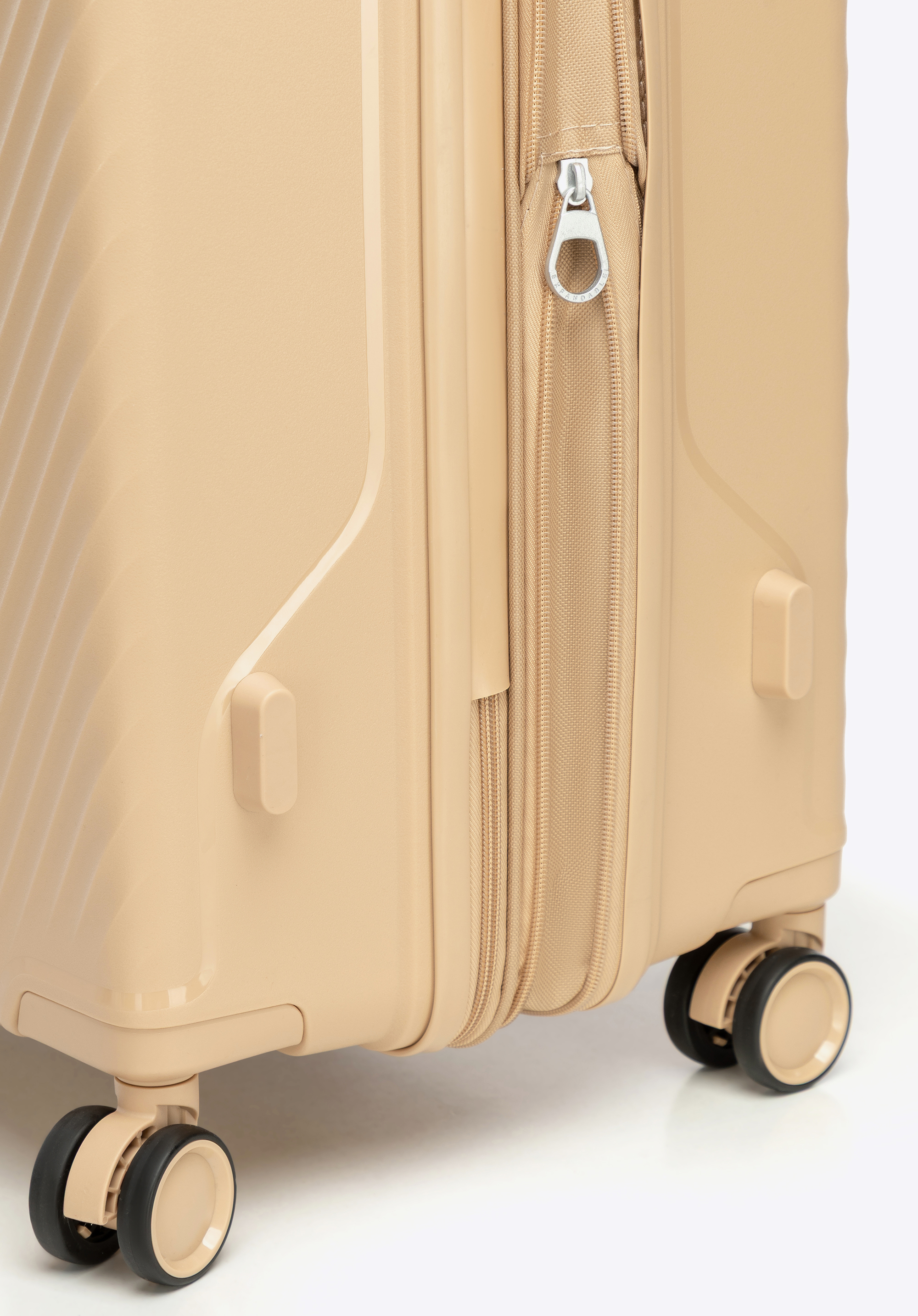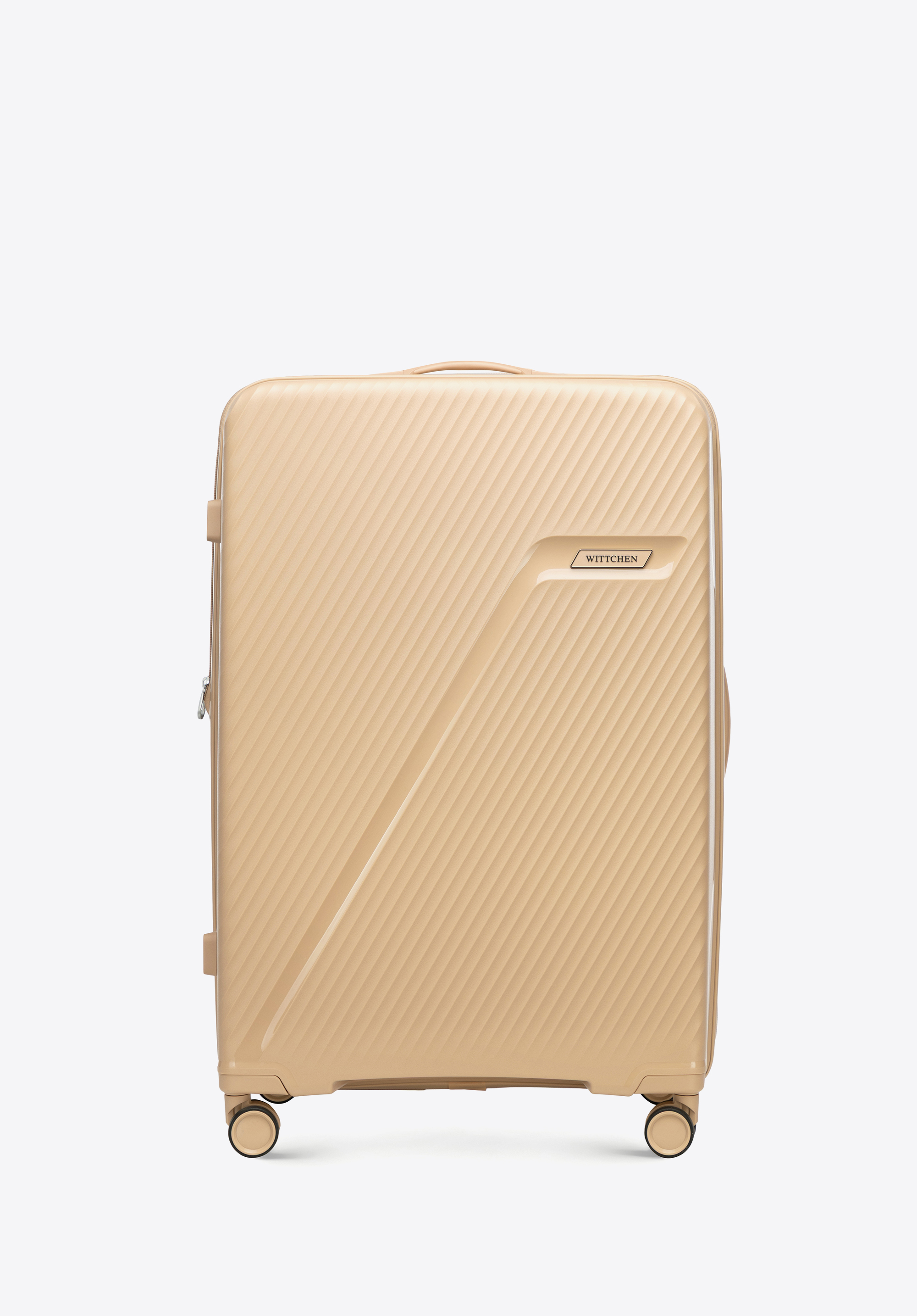 Veľký polypropylénový kufor s diagonálnym vzorom - béžový