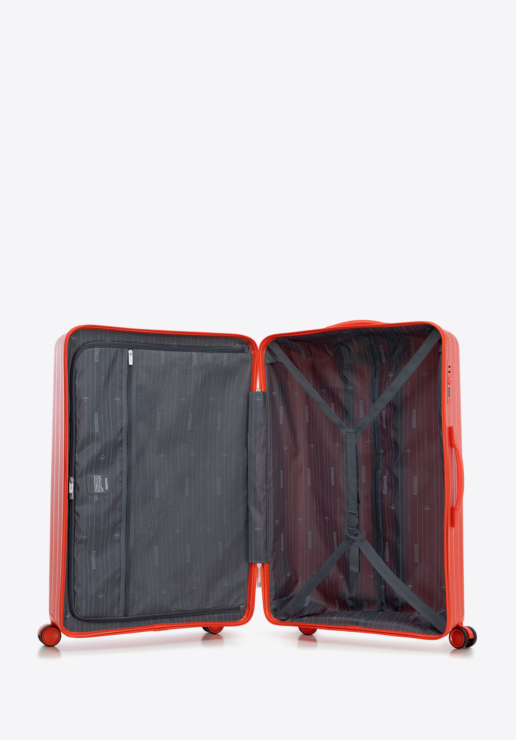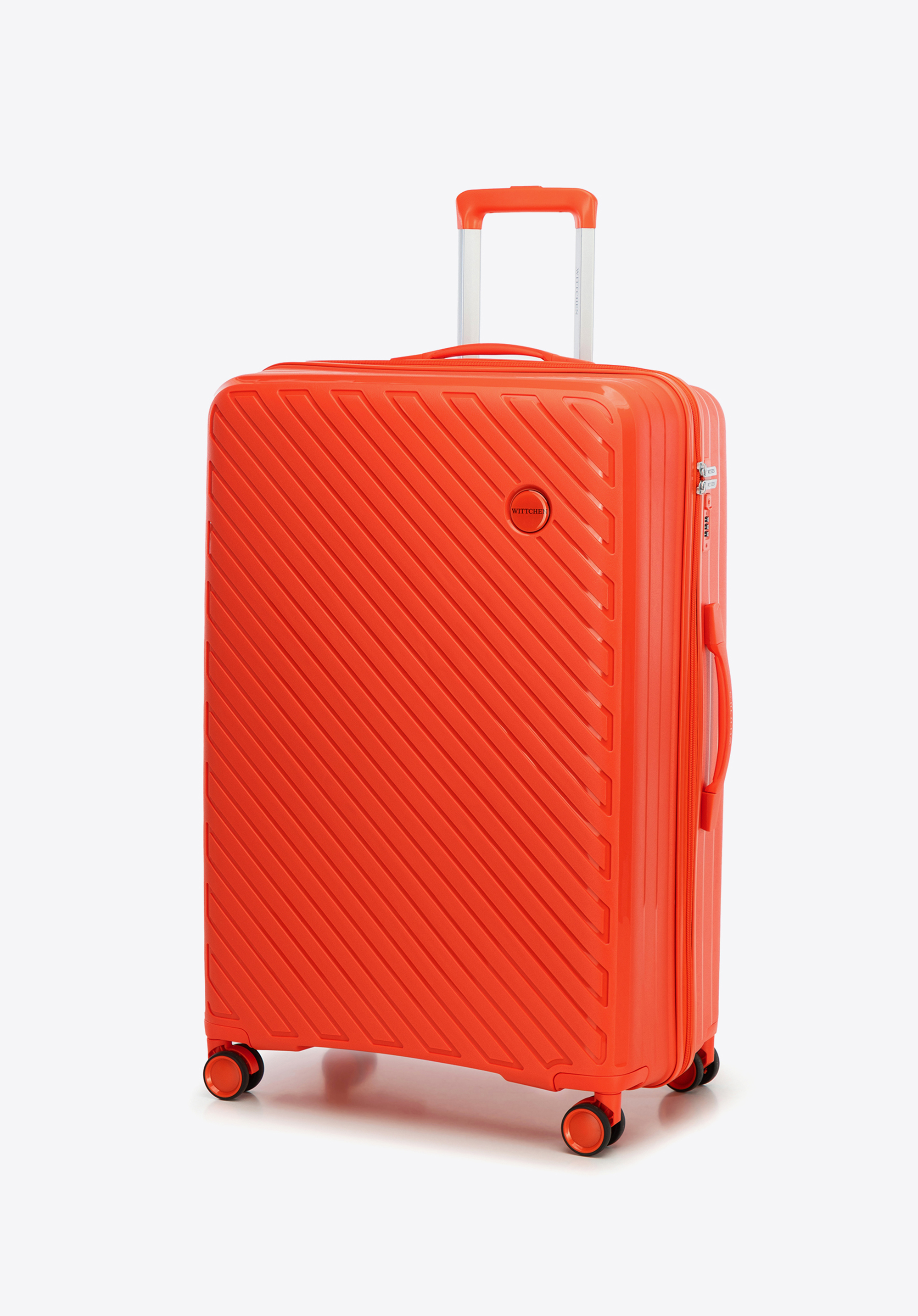 Veľký polypropylénový kufor s reliéfnymi pruhmi - oranžový